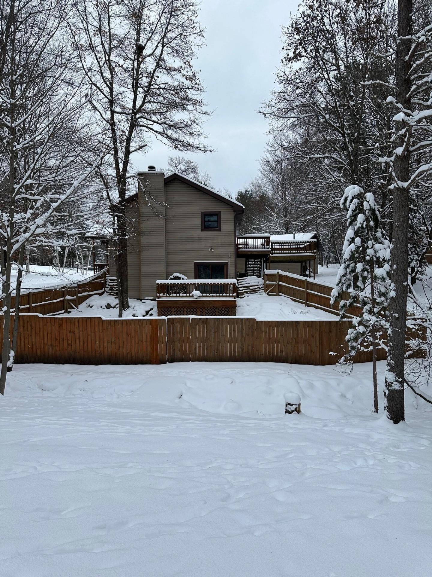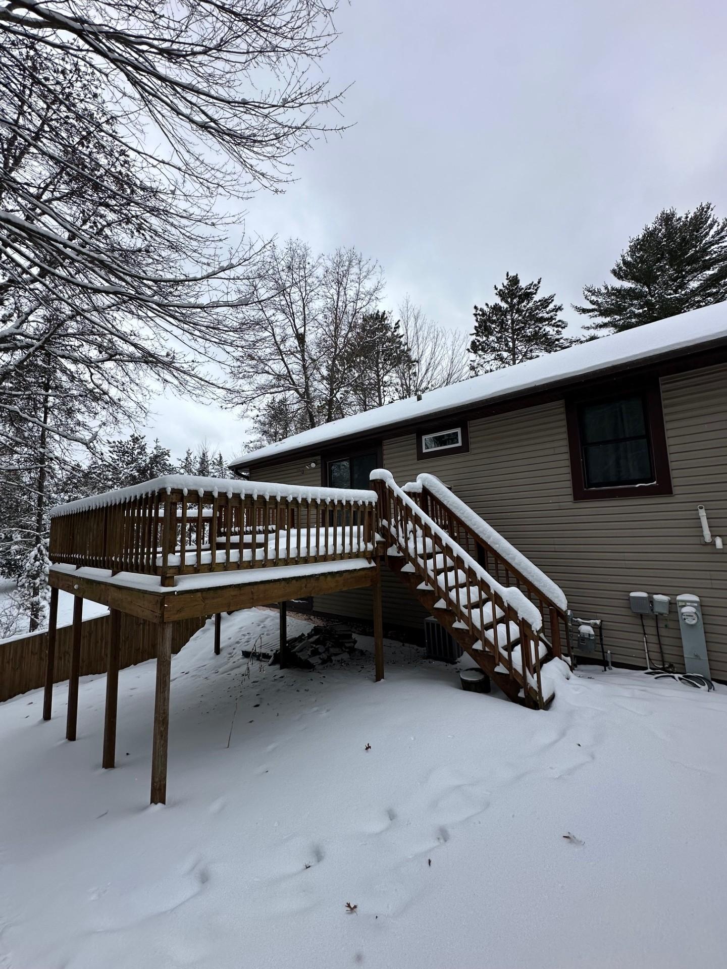 Welcome to Northwoods living! Great location for this split level home with recent updates! Entering into the tile foyer you'll head up stairs to an open concept kitchen and living room. The kitchen features a large island with bar seating, a dining table, vinyl plank flooring and a patio door leading off to the deck. Two bedrooms & a full bath complete the main level. Head downstairs to the lower level and enjoy the large living area with your personal bar and magnificent fieldstone wood burning fireplace. Find the 3rd bedroom & full bath with custom tile shower. Outside this property features a double lot for extra privacy (2 tax parcels), a 2 car heated detached garage with new epoxy flooring, and the large multi-level deck to enjoy the summer nights. Bonuses - this property has a small personal dock, a well-crafted fire pit as well as deeded access to Arrowhead Lake! Close to schools, shopping, restaurants, and all that the Minocqua area has to offer! What are you waiting for?