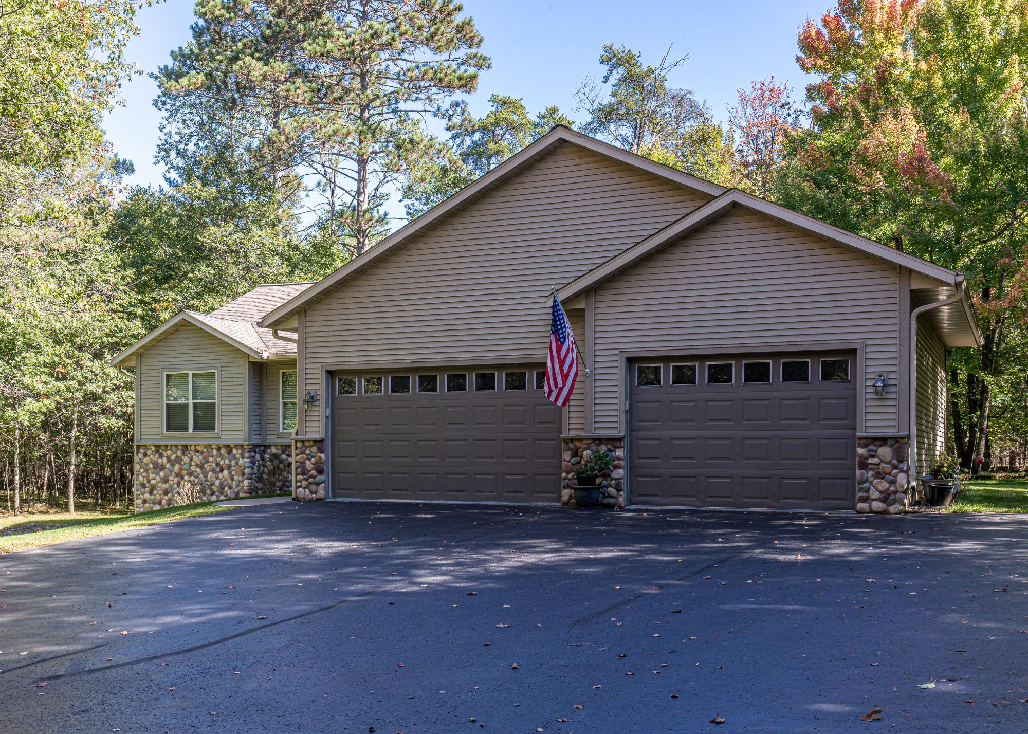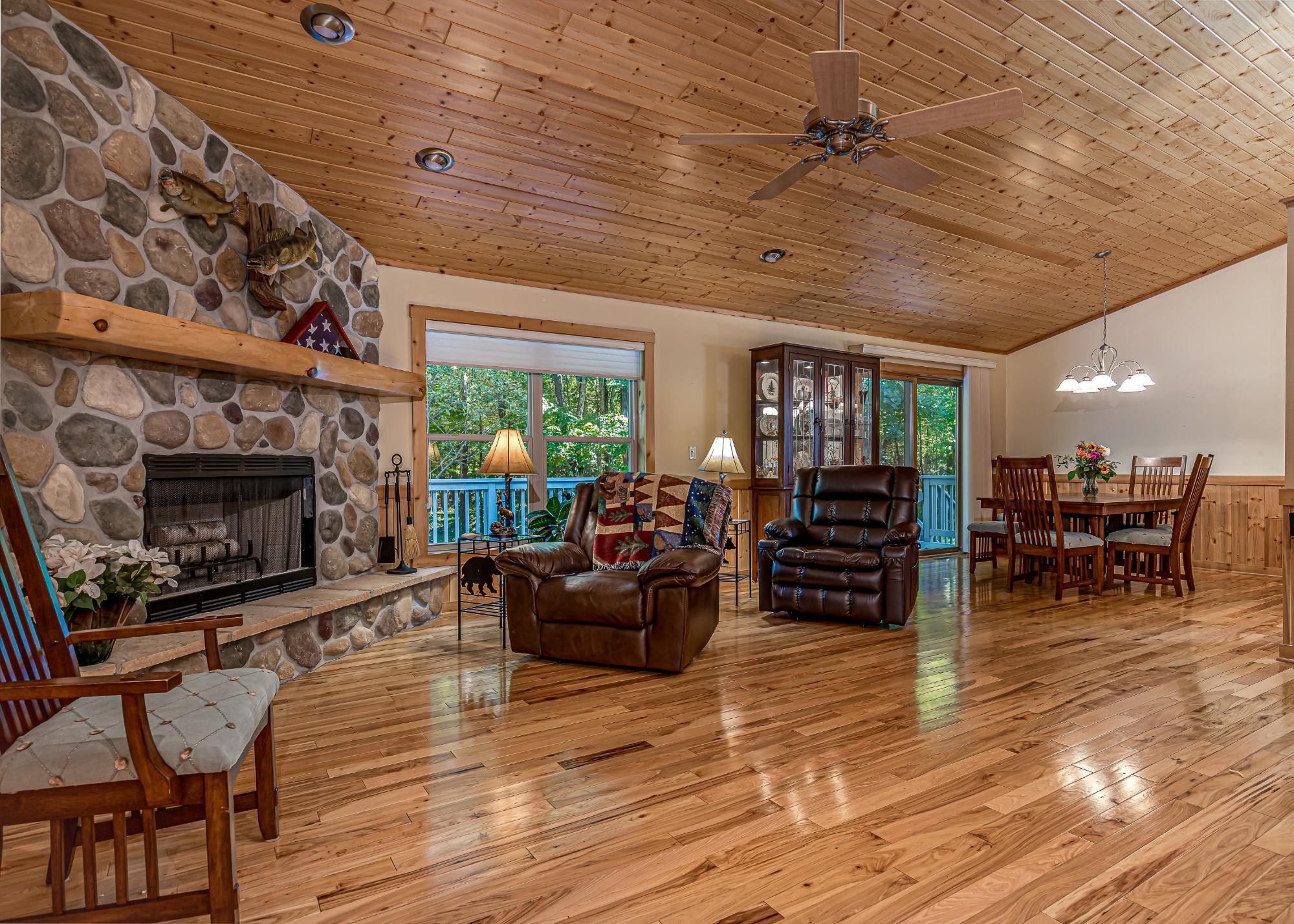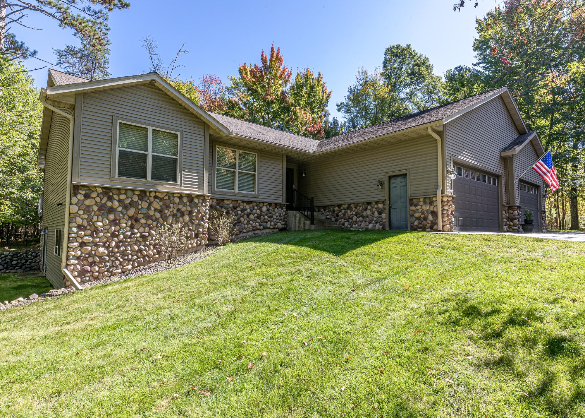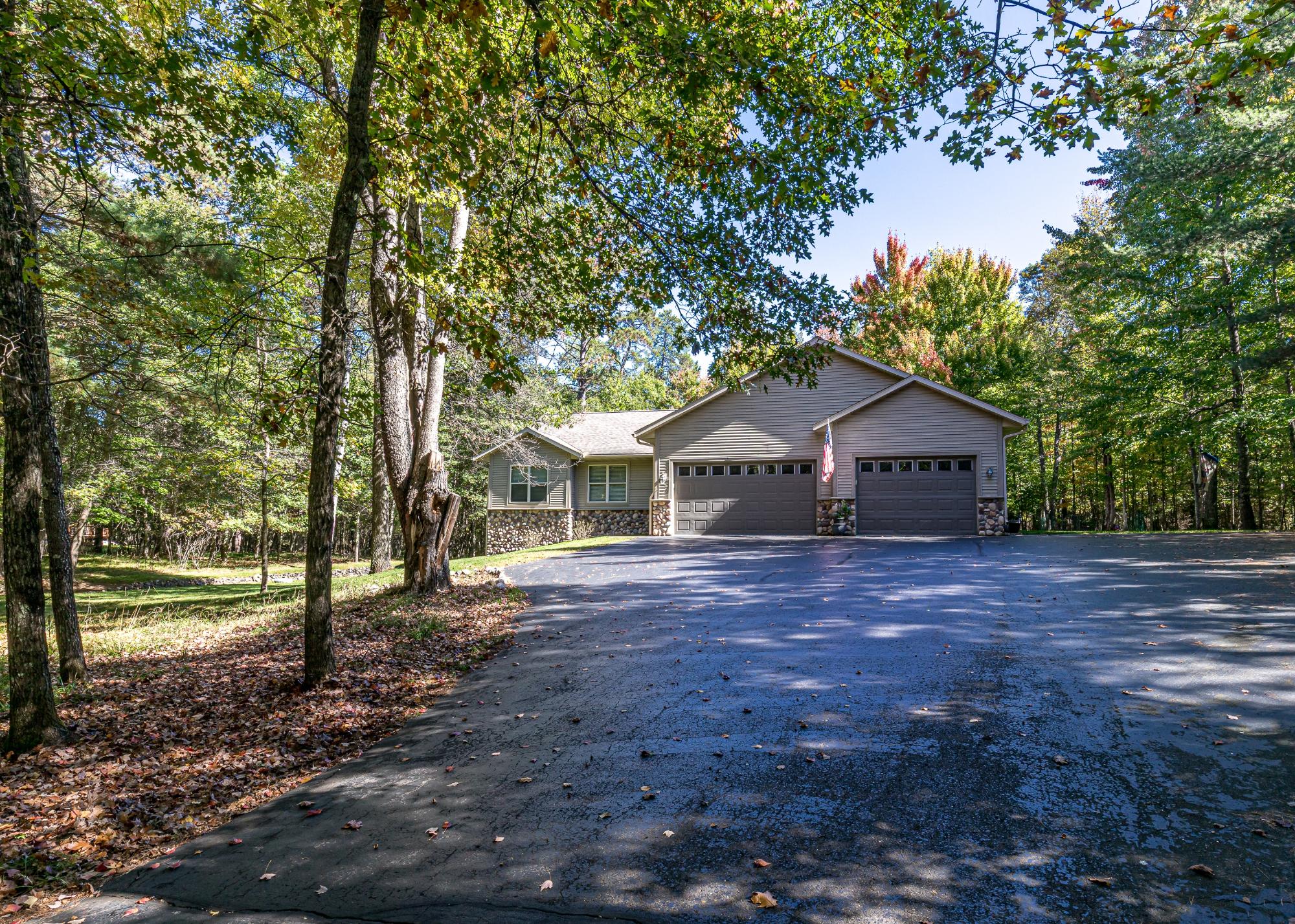 Beautiful 4 bed 3 bath ranch home built in 2007 on 1.7 acres! Located in a great location this property features main floor living, privacy, & a huge 3 car attached heated garage. Entering into the home you'll immediately notice the open concept floor plan with solid wood floors, vaulted wood ceilings & a fieldstone wood burning fireplace. The kitchen features hickory cabinets, stainless steel appliances & a dining room w/ a view. The primary bedroom on the main floor has a walk in closet & a huge bathroom with a jacuzzi tub. 2 other bedrooms and a bathroom complete the main floor before you head downstairs to the large rec room with a patio door to outside. A 4th bdrm and 3rd bath complete the basement. Head outside to enjoy the landscaped yard with a deck running the length of the home, perfect for entertaining or enjoying the peace & quiet of the woods. 3 car att heated garage with epoxy floor, mud room, blacktop driveway, deck, privacy,...this property has so much to offer!