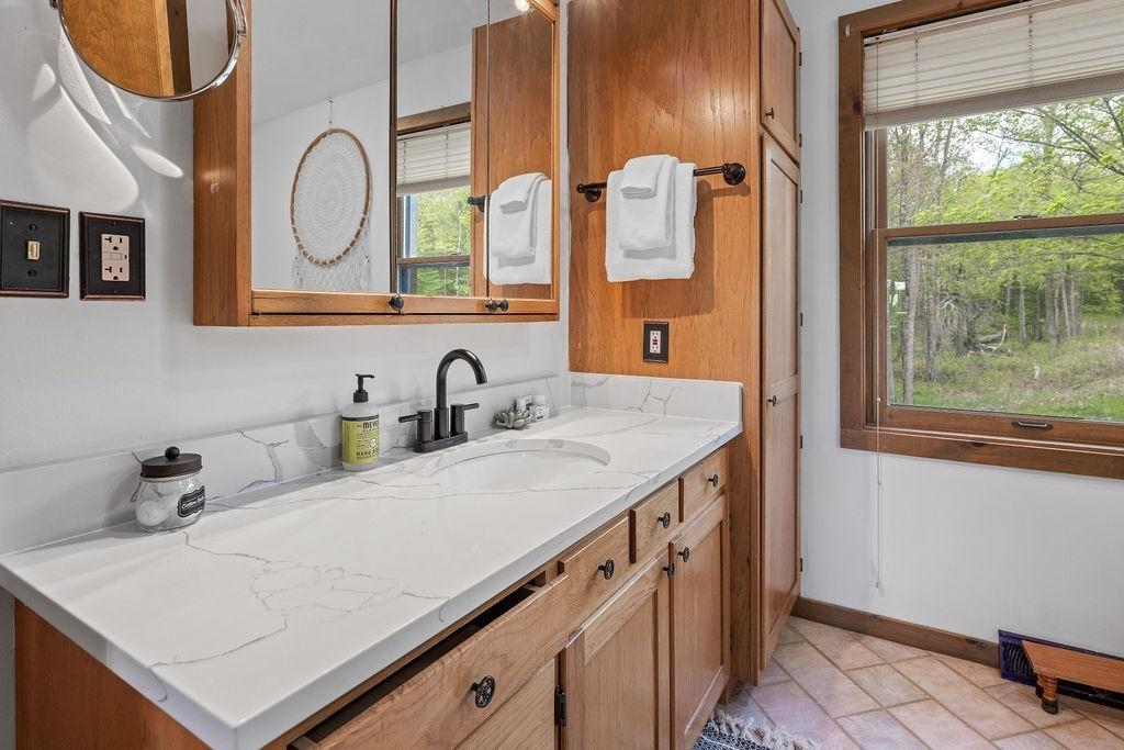 Beautiful Log Home on gorgeous Murphy Lake in Wisconsin’s Last Wilderness, Presque Isle is situated on 200 feet of frontage with 7.14 private acres! 3 bedroom, 3 bath plus bonus sleeping room offers 2,600+ square feet of living space. Main level includes Living Room with gorgeous fieldstone wood burning fireplace, log accent beams, cathedral ceiling and wood floors and access to the screen porch. LR is open to the lakeside dining room and to the kitchen with great cabinet space, breakfast bar and stainless and black appliances. Main level also includes a bedroom and full bath with whirlpool tub! Upper level has an open loft and primary suite with primary bath! Lower level walkout has full recreation room, bedroom, sleeping room, full bath, laundry room, utility room and storage. 3 car detached garage offers great storage! Murphy Lake is 81 acres with depths up to 52 feet and is known for great fishing and recreation! Time to head north!