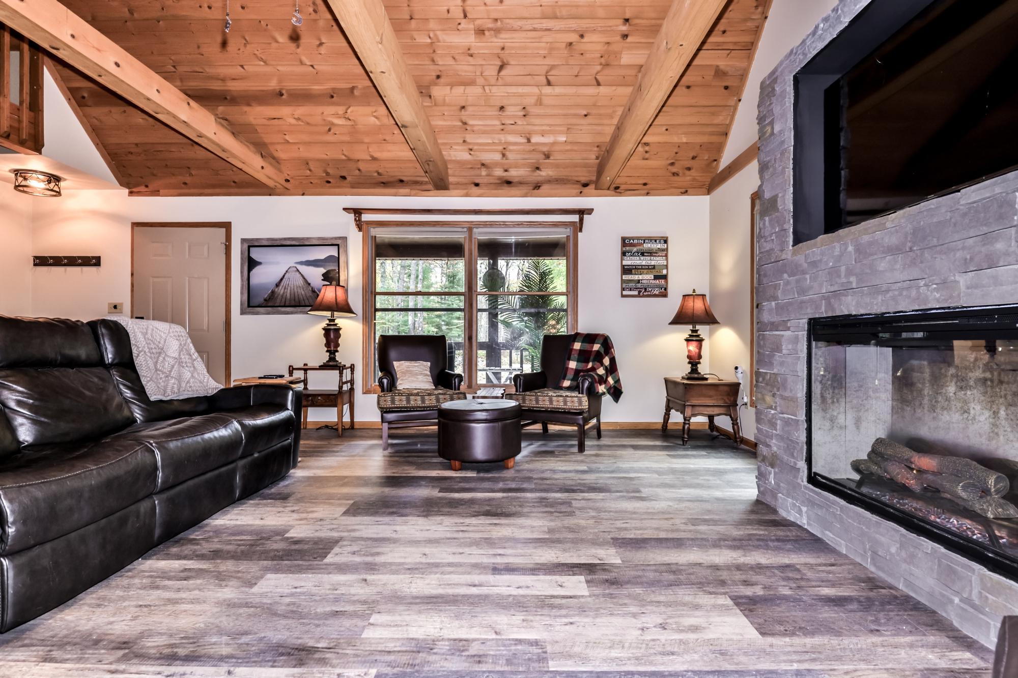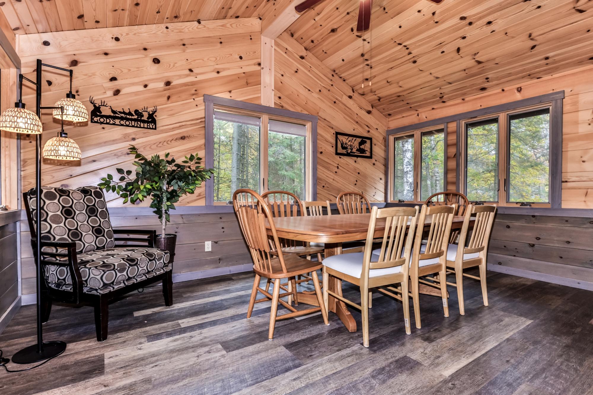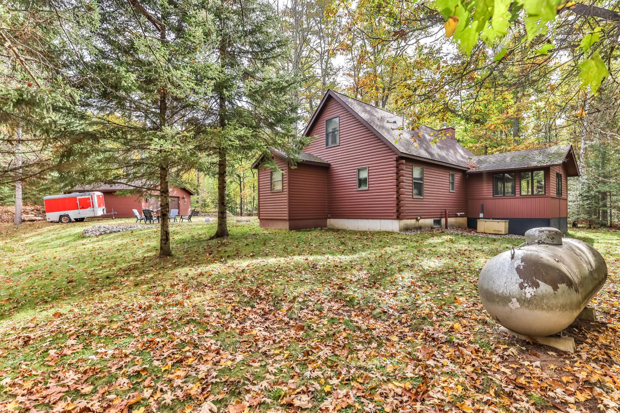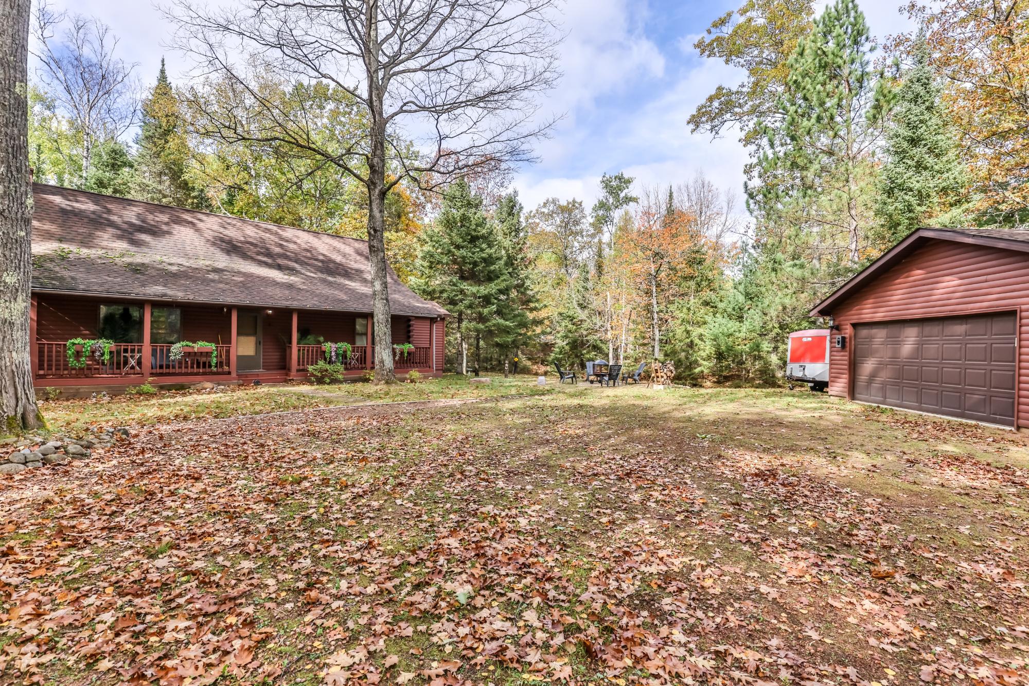 Plum/Star Lake super cute home on 1.97A. Great covered front porch. Step inside and enjoy a great Northwoods lodge feel and fantastic floor plan. Main floor features open living room, kitchen, dining room, primary bedroom has its own full bath, plus another bedroom and full bath. Upstairs offers another bedroom and full bath. Lower level has a huge family room, laundry room and plenty of storage!. Paver patio, firepit area, shed and oversized 2 car garage complete this package! Nicely wooded lot and minutes to the Lake Laura boat landing. Convenient to Sayner, Boulder Junction, St Germain and Eagle River. Home comes fully furnished and ready to move in!