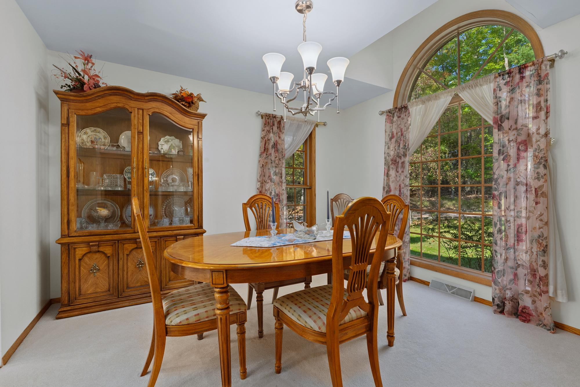 Private setting with 200 feet of swimming frontage on Island Lake of the Three Lakes/Eagle River Chain of 28 connecting lakes! Property faces south with stunning views of the small island that the lake was named for. The bright and airy living room features soaring ceilings and a cozy fireplace, creating an inviting space for relaxing or entertaining. Large primary suite, 2 additional bedrooms and 1.5 baths, main level laundry, kitchen w/ center island, breakfast nook and a formal dining area. There is an attached 2 car garage as well as a detached 1.5 car garage. This property is the perfect balance of privacy and convenience, offering a peaceful lakeside lifestyle with great access to local amenities. Enjoy everything "Northwoods", like boating, fishing, hunting and you can snowmobile and UTV from your back door!