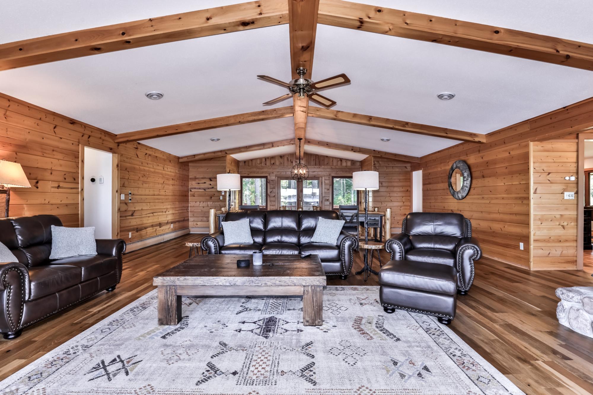 Exceptional opportunity on the Manitowish Waters 10 Lake Chain. This remodeled 6BR, 4BA home offers 5,160 sq ft of refined living on 1.20 acres, with 357 ft of prime frontage on Wild Rice Lake. The professionally designed kitchen is a true centerpiece, featuring Sub-Zero and Wolf appliances, granite countertops, a black walnut island, and stainless steel prep areas—ideal for both daily living and entertaining. Extensive renovations include new flooring, the addition of a new boiler and a/c, expansive wraparound decking, and updated exterior finishes that complement the natural setting. A 3-car attached garage plus a 2-car detached garage provide ample space for vehicles and lake toys. Offered fully furnished, with all high-end appliances and additional inclusions in the price. This is a turn-key opportunity to own a premier property in one of Wisconsin’s most sought-after lake chains. Luxury, comfort, and unmatched access to year-round recreation await.