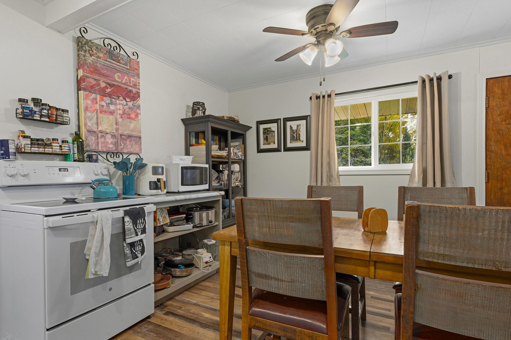 This charming 2 bedroom, 1 bathroom furnished home offers a perfect starting point for retirement or as a rental opportunity. Nestled on a city lot, it boasts beautiful privacy and is conveniently located near city amenities and recreational opportunities. The entryway leads to an open living, dining, and kitchen that features new appliances, ample cabinet space, and a large pantry area. The home receives plenty of natural light, and there’s a main-level laundry area. Outside, there’s a 1 car detached garage and a fenced-in yard for the fur babies of the family. Updates include new flooring, drywall, a new kitchen and bathroom, windows, lighting, front and back porches, and the crawl space has been enclosed. This cozy and inviting turnkey home is move in ready and just waiting for new owners!