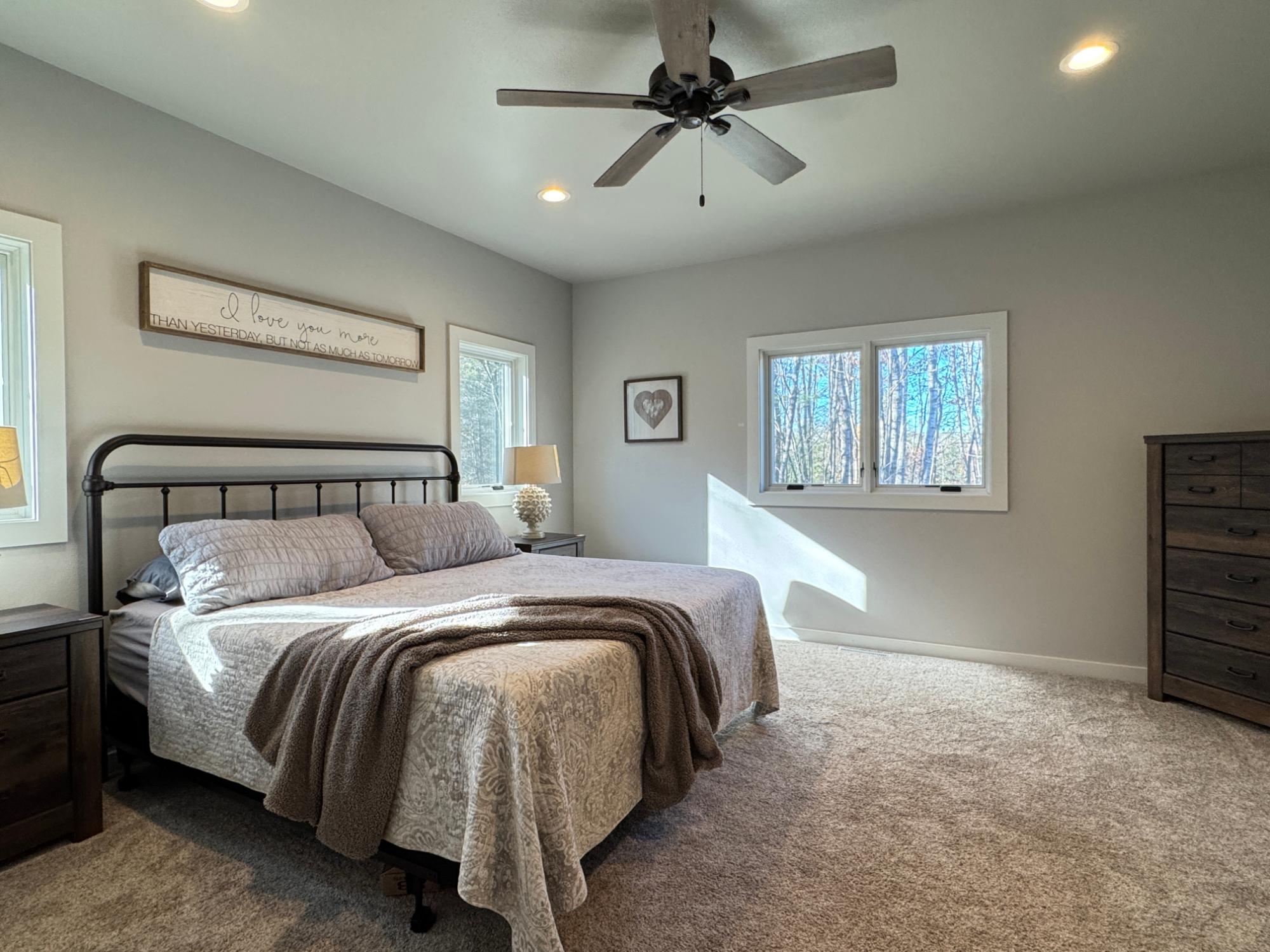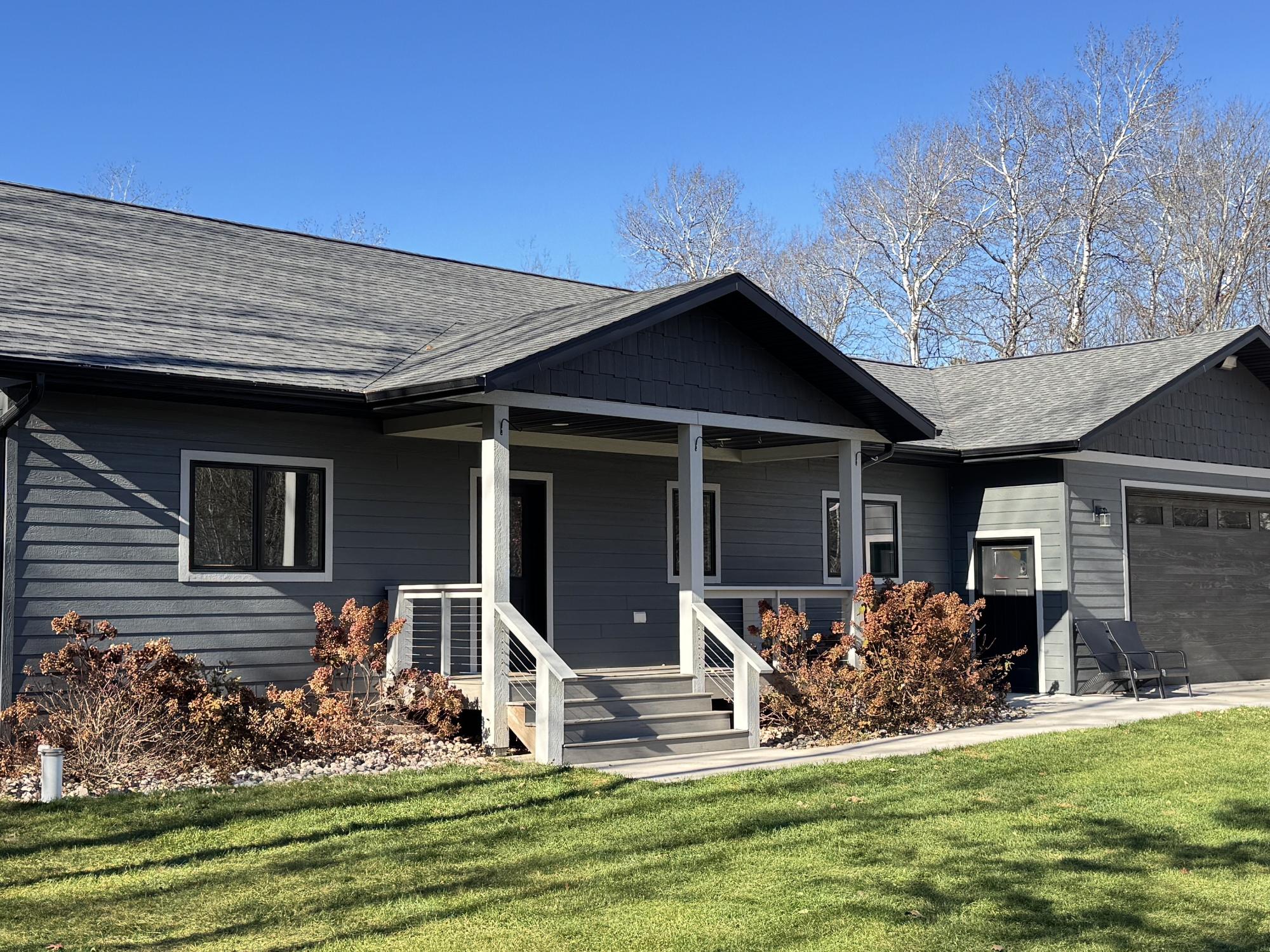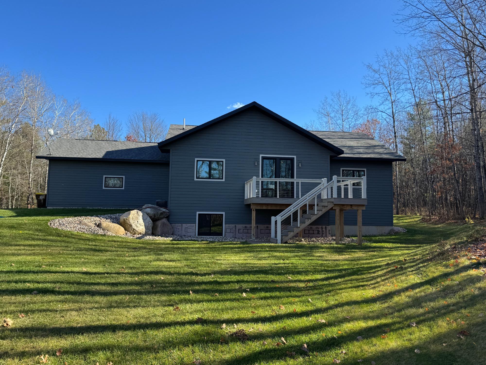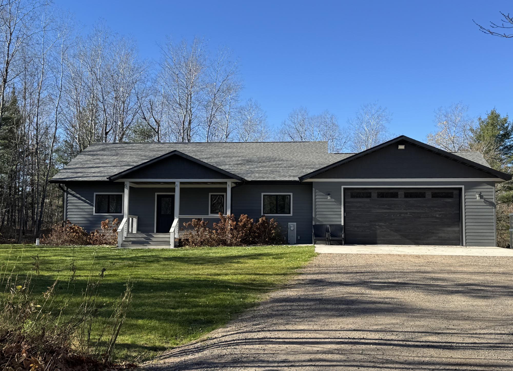 Custom built in 2020 this beautiful 5 BD/3.5 BA home offers a spacious open-concept design. The interior features neutral, calming tones, a cozy gas fireplace, granite & quartz countertops, LVP & ceramic flooring, walk in pantry & little touches everywhere that set it apart. The layout gives primary suite privacy from 2 adtl. main floor BD's, and access from the living room to a low maintenance composite deck that looks over 5.3 wooded acres-it's a peaceful surrounding & plenty of space to enjoy outdoor living. (If you're looking for even more land a separate listing of 6.82 AC, MLS #213785 of adjoining land is available) In the lower level 2 more BD's, BA, family room & rec room-there is room for everyone, family & guests. In addition to the 2 stall attached garage you will find a 40 x 30 pole building equipped with electric to give you plenty of space for all of the seasonal toys or to create a workshop if desired. Move in ready, meticulously maintained & only minutes from town!