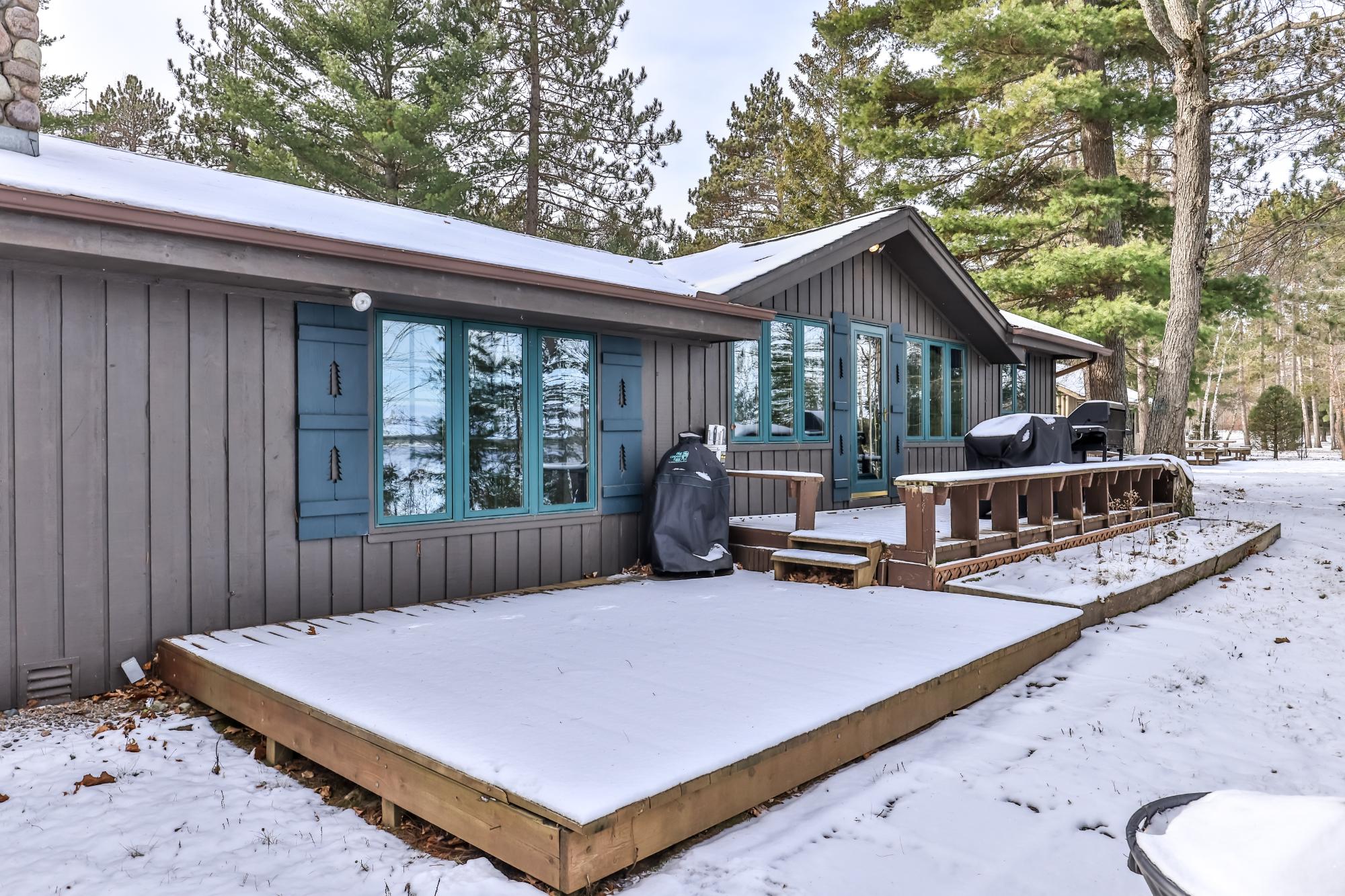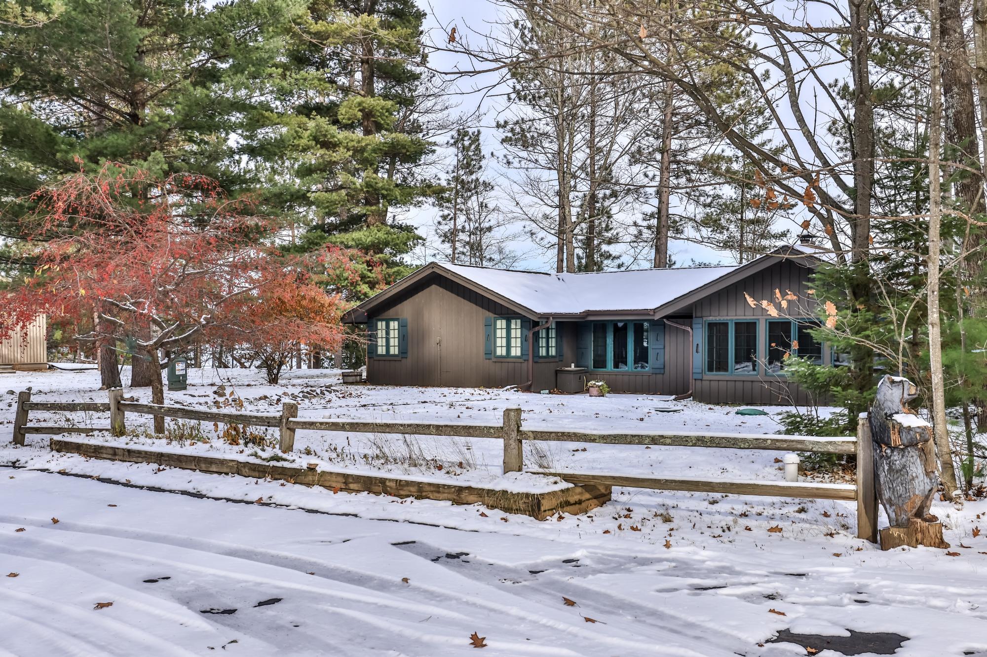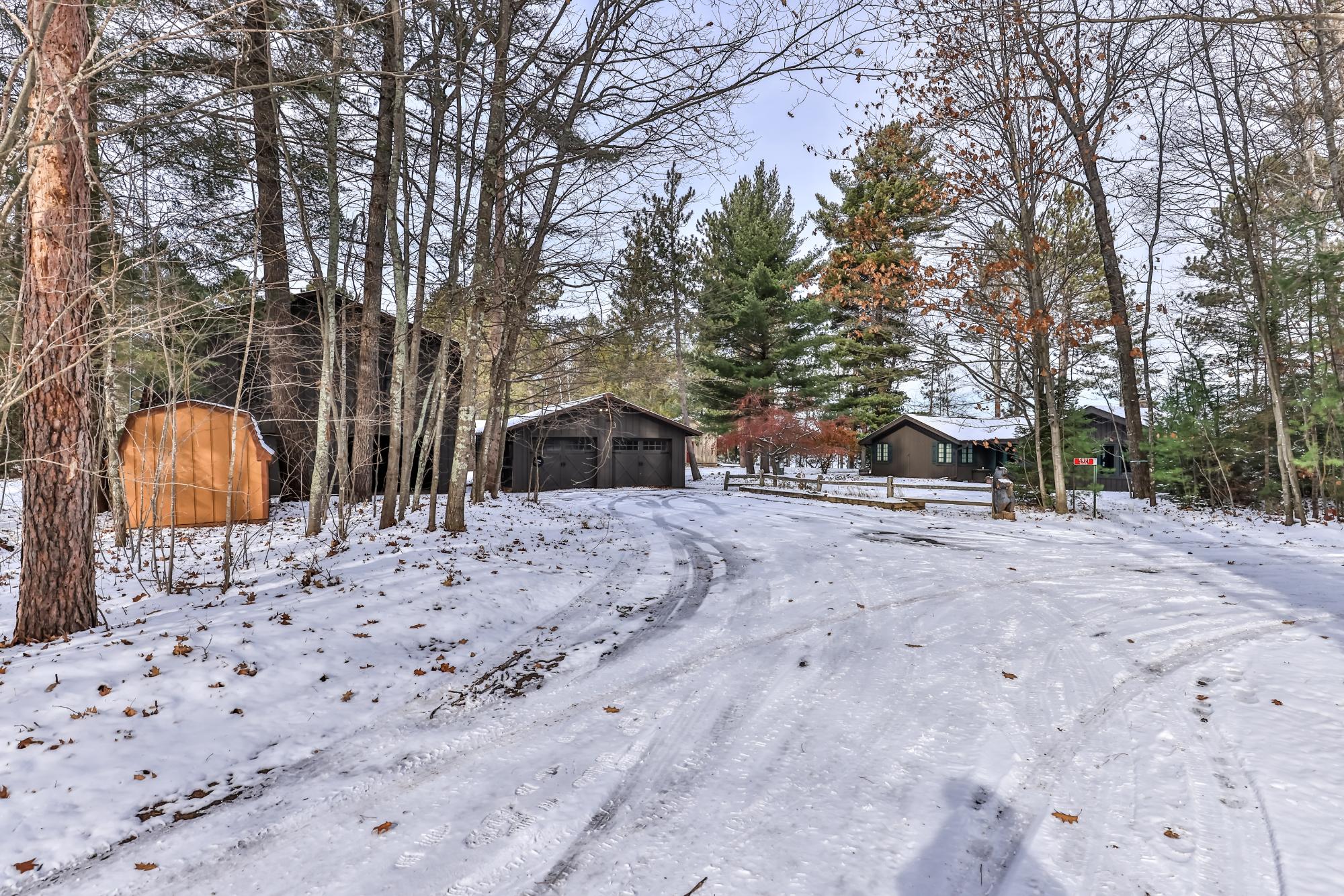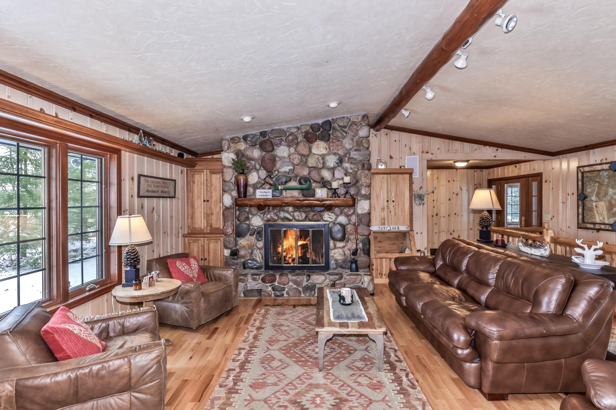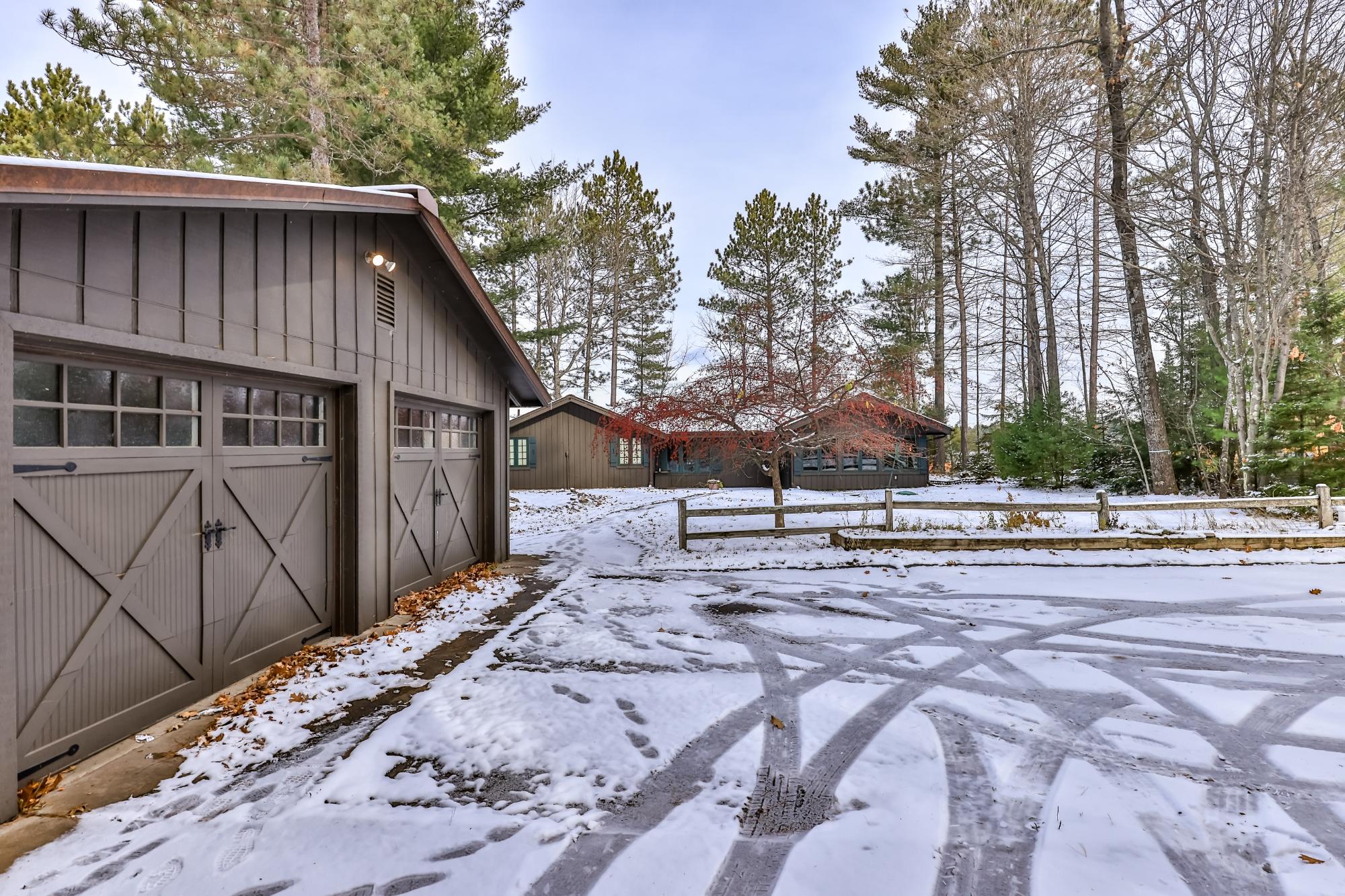 Stunning Lakefront Retreat on the Manitowish Chain of Lakes! This exceptional 3BR, 2BA home combines classic Northwoods charm with modern luxury. Renovated in 2022 w/high-end finishes, the cabin retains its original warmth & character while offering every contemporary comfort. Enjoy 102 feet of perfect sand frontage & a custom-built pier in 2022 that stretches into the crystal-clear waters of Rest Lake, the ideal spot to swim, boat or watch breathtaking sunsets. Nestled at the end of a quiet road, this property provides outstanding privacy yet is less than a 5 min drive to downtown Manitowish Waters for dining, shops & local attractions. Grounds feature a 2 car garage & matching barn, offering abundant storage for boats & all your toys. The upper level of the barn provides endless possibilities. A guest suite, bunkhouse or artist studio? Meticulously maintained and loved, this lakefront gem is ready for its next owner to relax, entertain, and create lasting memories.