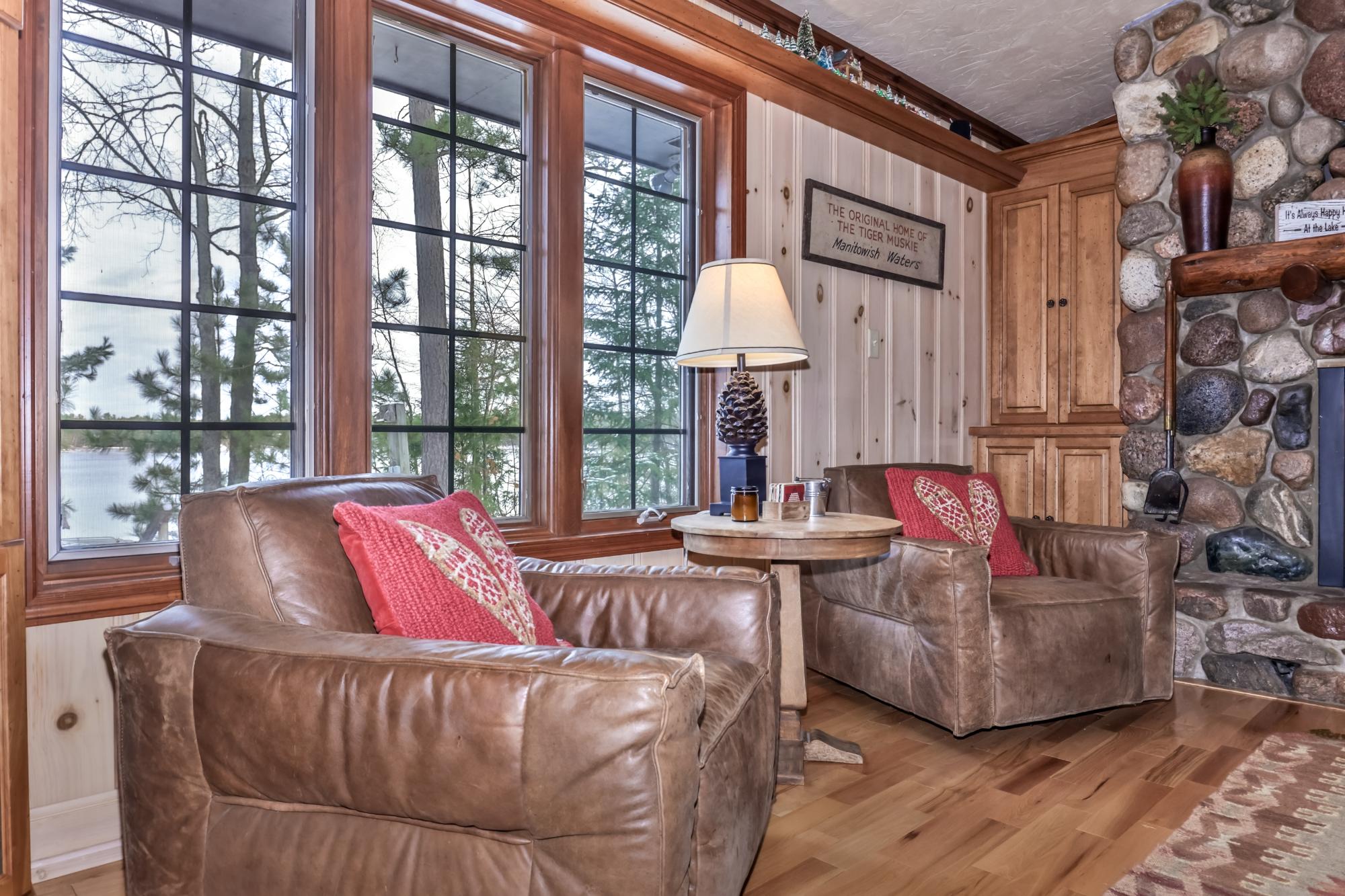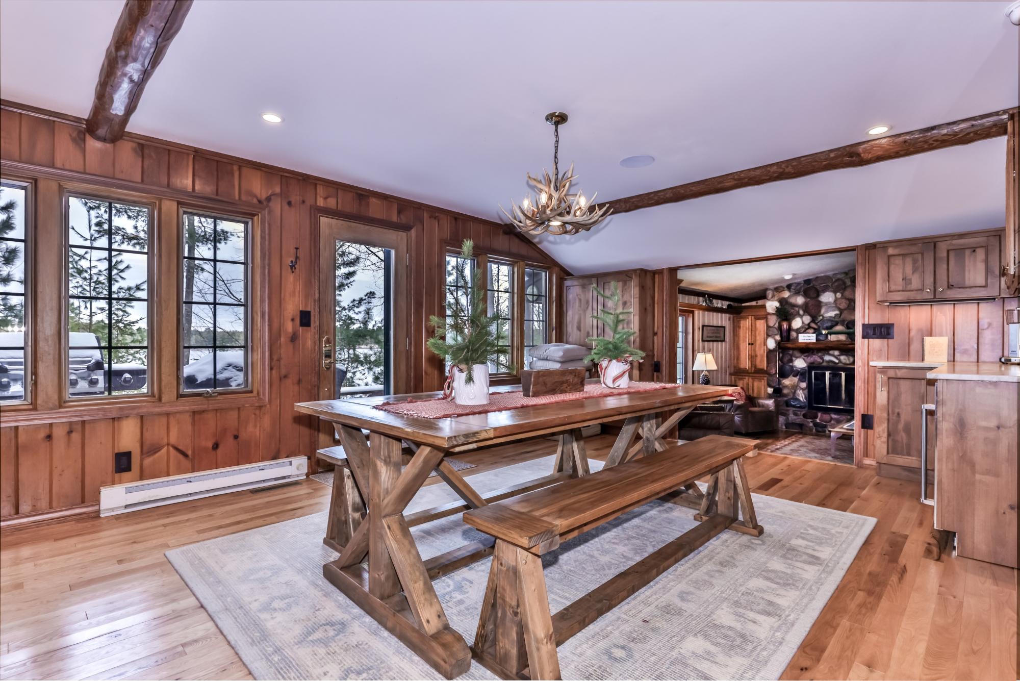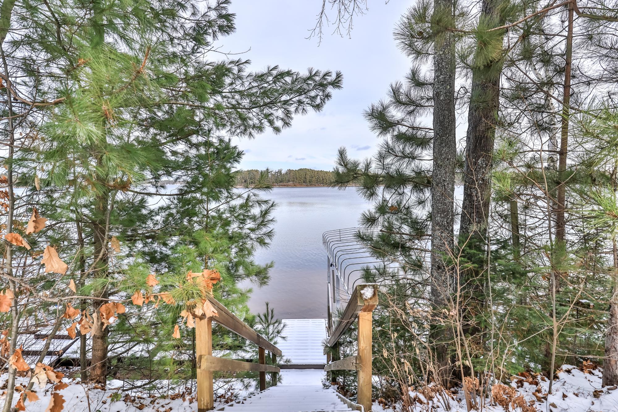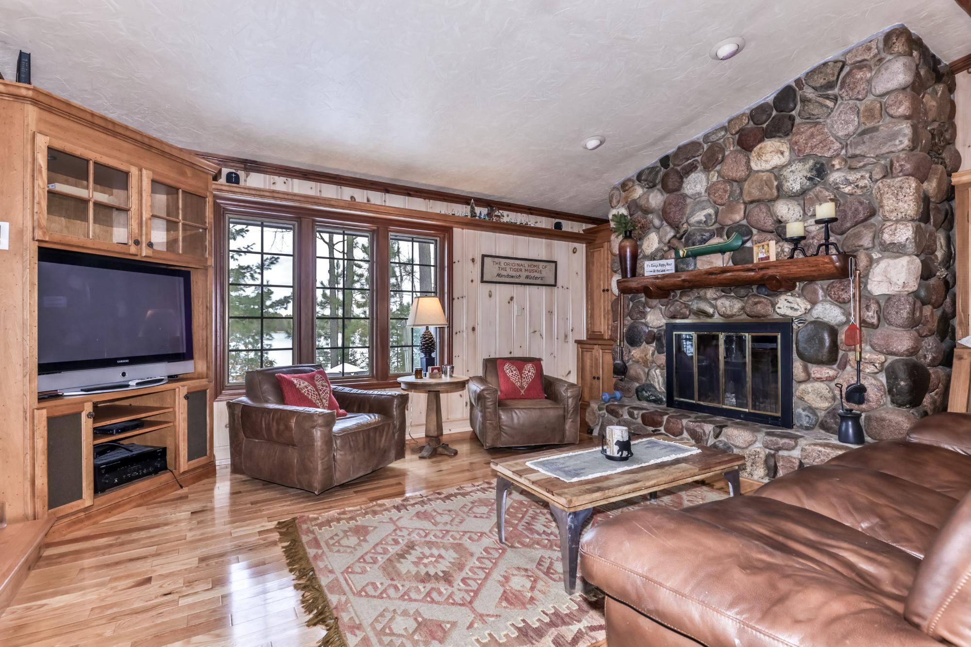 Stunning Lakefront Retreat on the Manitowish Chain of Lakes! This exceptional 3BR, 2BA home combines classic Northwoods charm with modern luxury. Renovated in 2022 w/high-end finishes, the cabin retains its original warmth & character while offering every contemporary comfort. Enjoy 102 feet of perfect sand frontage & a custom-built pier in 2022 that stretches into the crystal-clear waters of Rest Lake, the ideal spot to swim, boat or watch breathtaking sunsets. Nestled at the end of a quiet road, this property provides outstanding privacy yet is less than a 5 min drive to downtown Manitowish Waters for dining, shops & local attractions. Grounds feature a 2 car garage & matching barn, offering abundant storage for boats & all your toys. The upper level of the barn provides endless possibilities. A guest suite, bunkhouse or artist studio? Meticulously maintained and loved, this lakefront gem is ready for its next owner to relax, entertain, and create lasting memories.