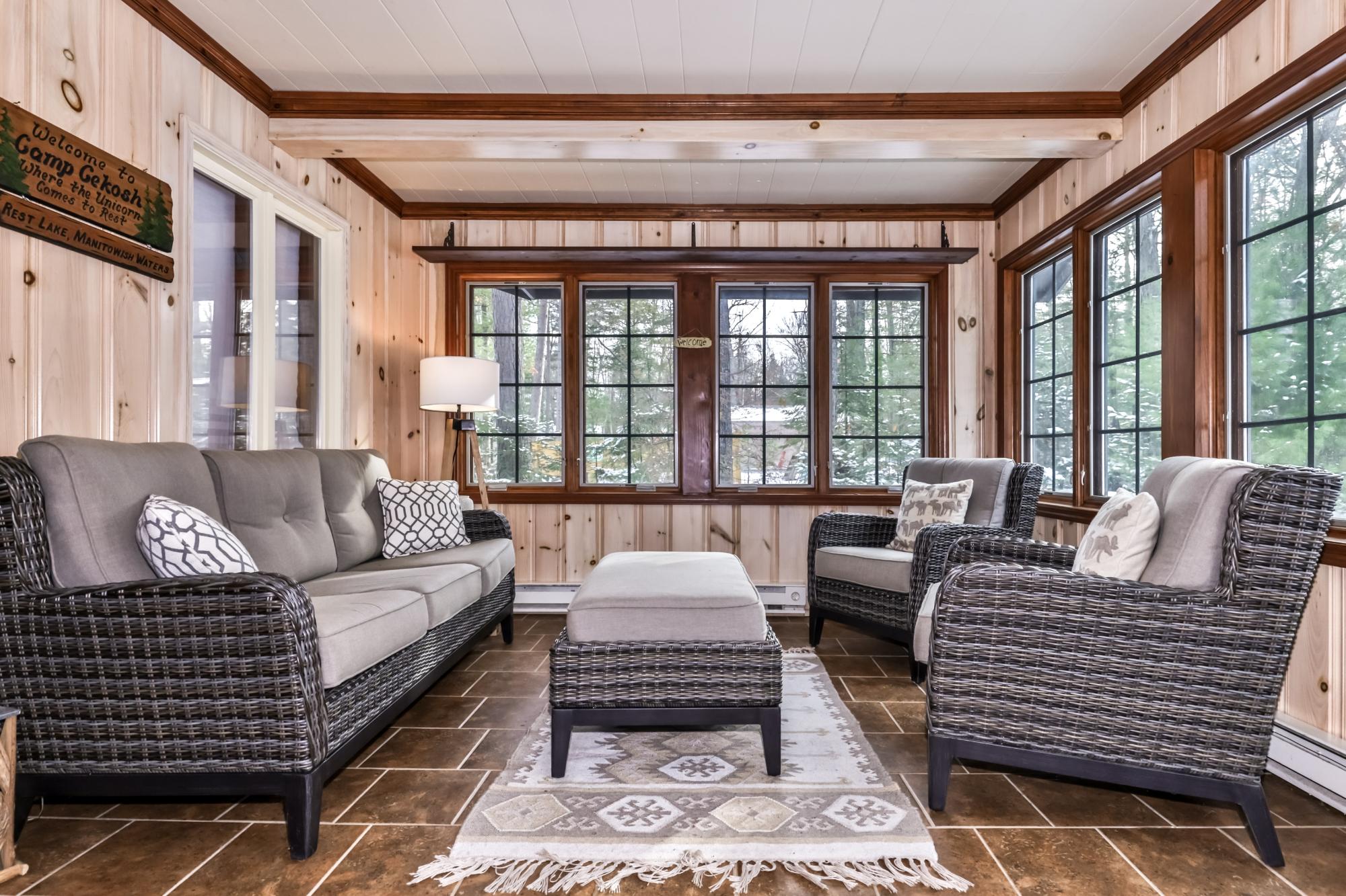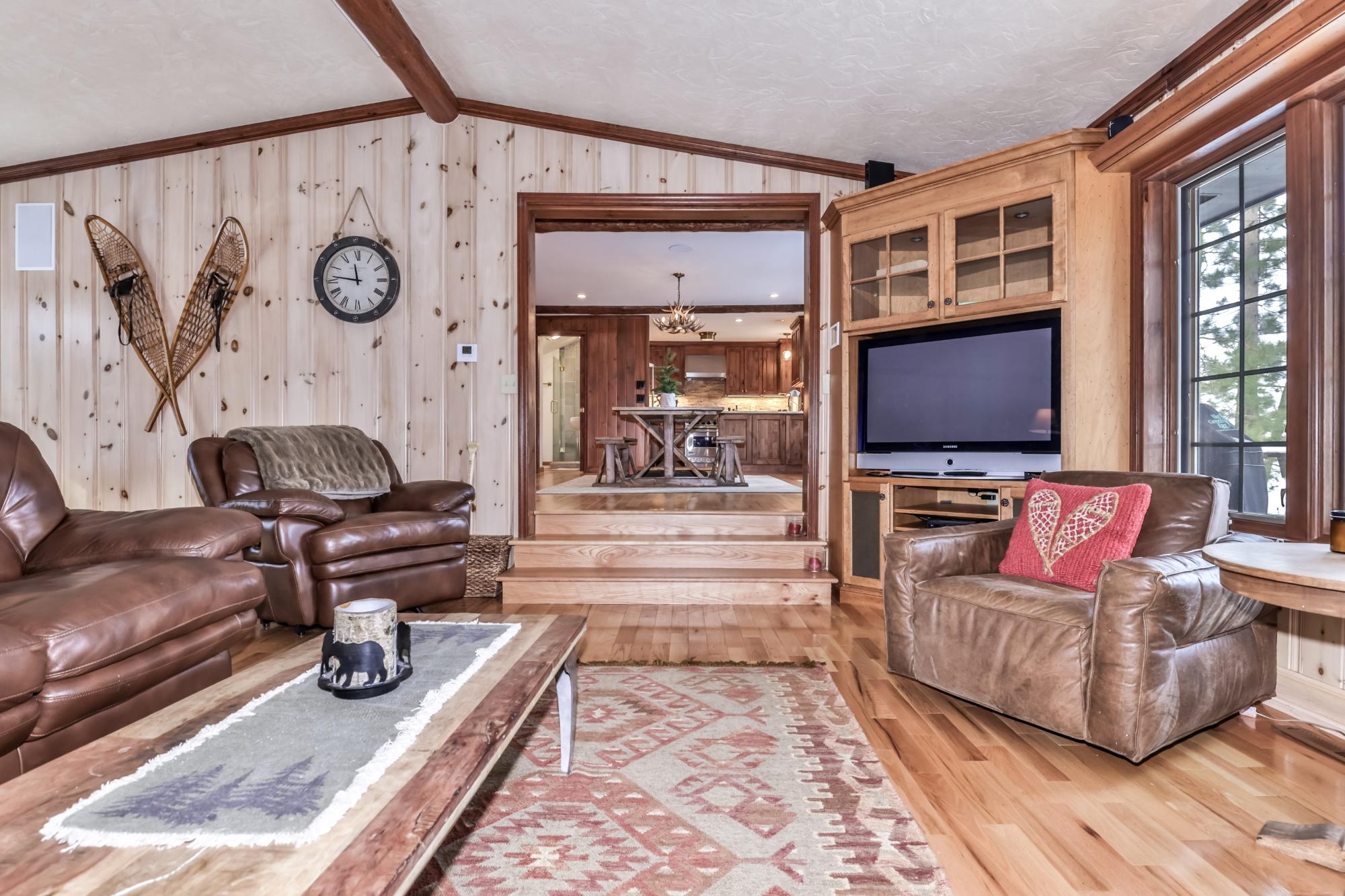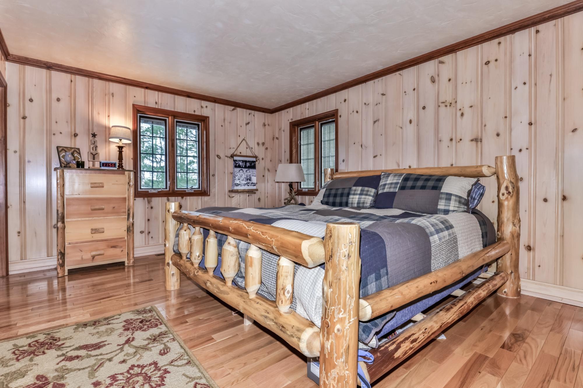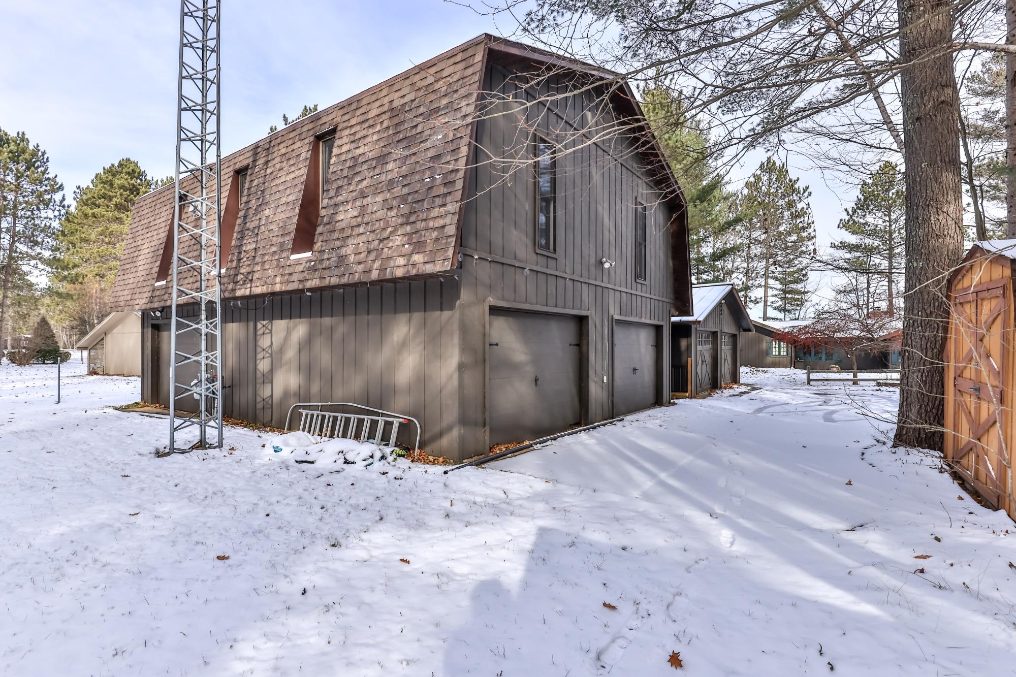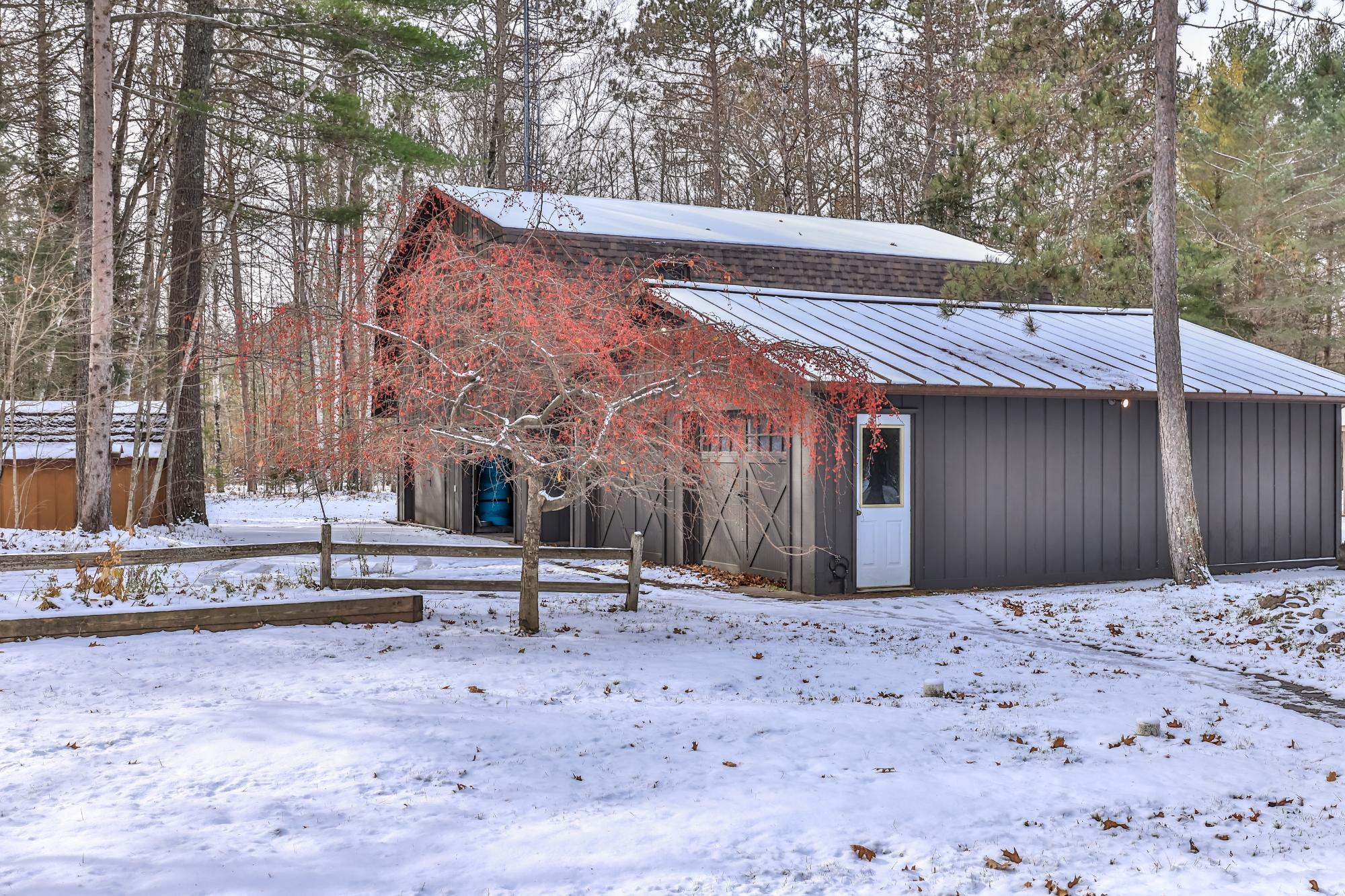 Stunning Lakefront Retreat on the Manitowish Chain of Lakes! This exceptional 3BR, 2BA home combines classic Northwoods charm with modern luxury. Renovated in 2022 w/high-end finishes, the cabin retains its original warmth & character while offering every contemporary comfort. Enjoy 102 feet of perfect sand frontage & a custom-built pier in 2022 that stretches into the crystal-clear waters of Rest Lake, the ideal spot to swim, boat or watch breathtaking sunsets. Nestled at the end of a quiet road, this property provides outstanding privacy yet is less than a 5 min drive to downtown Manitowish Waters for dining, shops & local attractions. Grounds feature a 2 car garage & matching barn, offering abundant storage for boats & all your toys. The upper level of the barn provides endless possibilities. A guest suite, bunkhouse or artist studio? Meticulously maintained and loved, this lakefront gem is ready for its next owner to relax, entertain, and create lasting memories.
