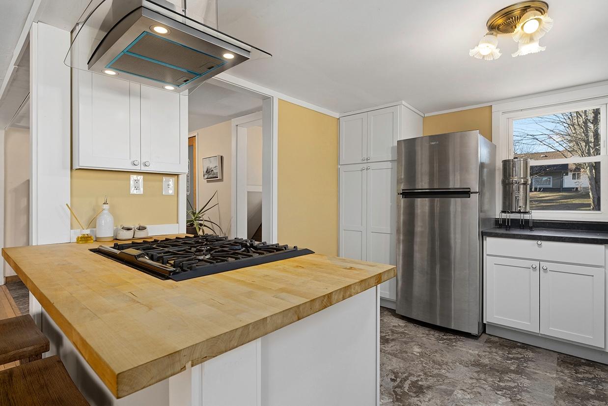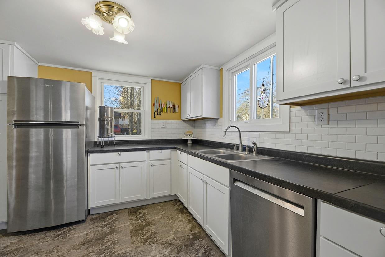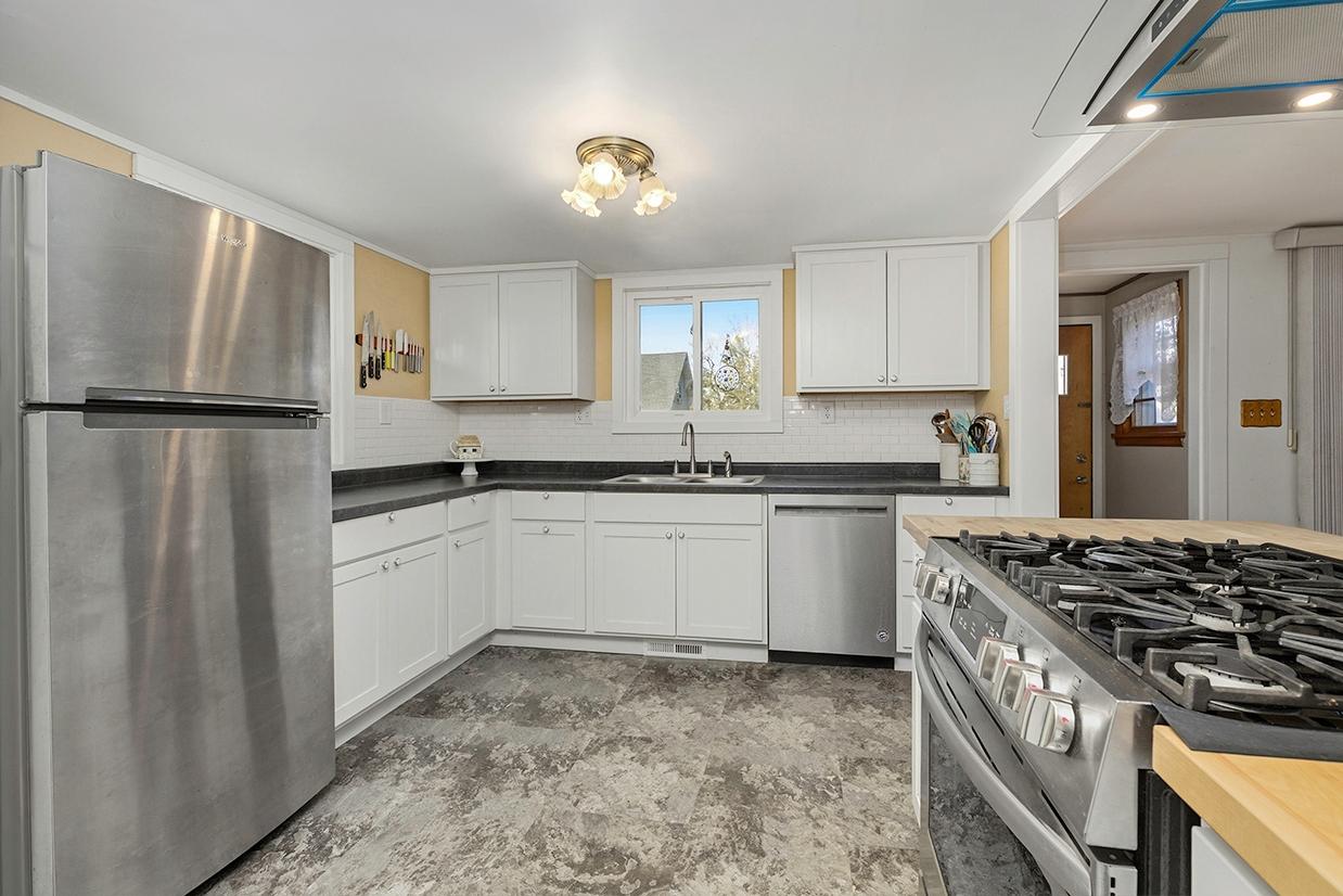 This charming & comfortable, remodeled 4-bedroom, 2-bath home is located on the west side of Rhinelander, offering a worry-free path to homeownership! The main level features an open-concept kitchen with pantry & newer appliances, adjoining dining area, & living room with hardwood flooring & a fireplace. One bedroom has direct access to a new deck & a doggy door. A new drop-down stairway leads to a spacious open attic with hardwood flooring, providing plenty of options for use. Lower level offers a finished recreation room with a new pellet stove, furnace, water heater, air conditioner, a utility workshop room, & two bedrooms with egress windows, full bathroom & laundry room. The exterior of the home boasts a paved driveway, a 2+ car garage, & a backyard where you can relax. The fully fenced yard has a black chain-link fence for added security. Situated in an established residential neighborhood, close to parks, shopping, dining, & recreational activities.