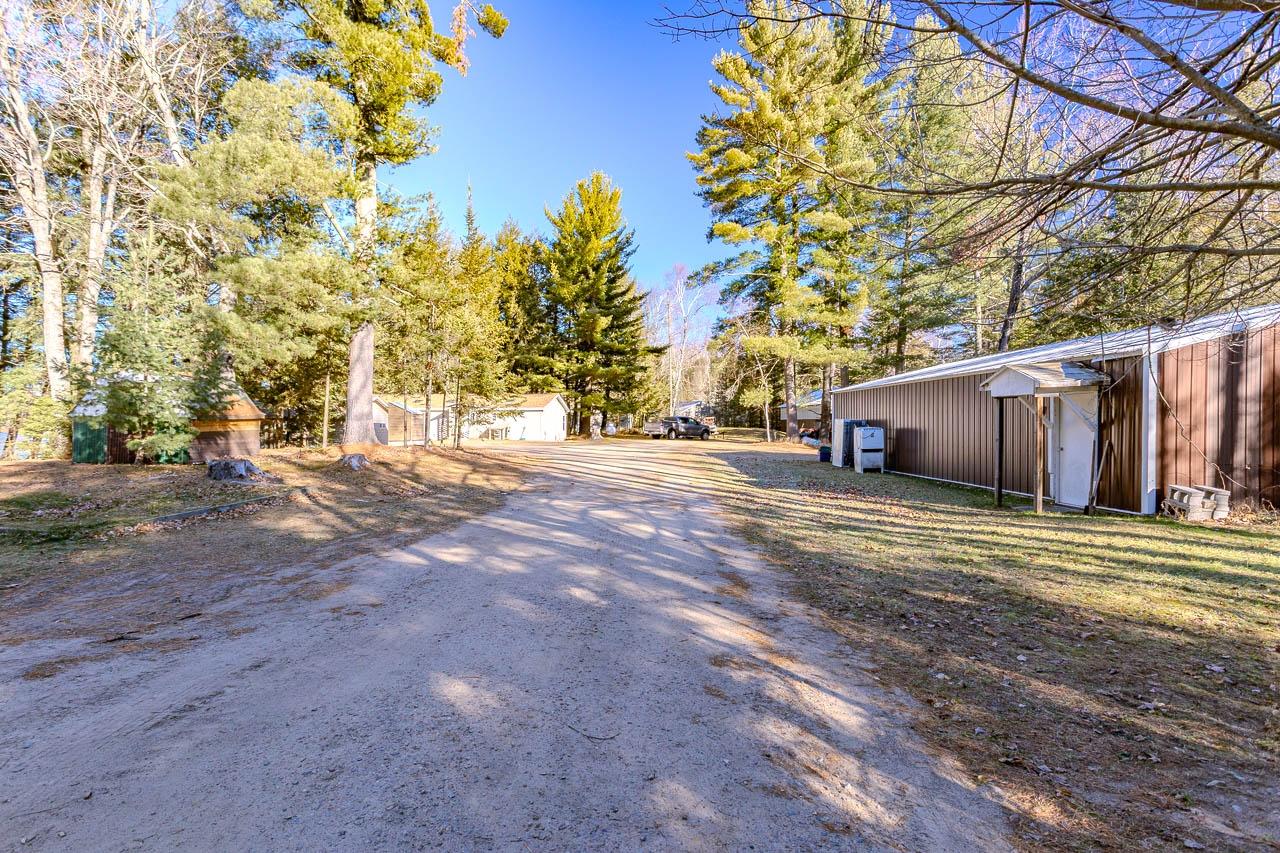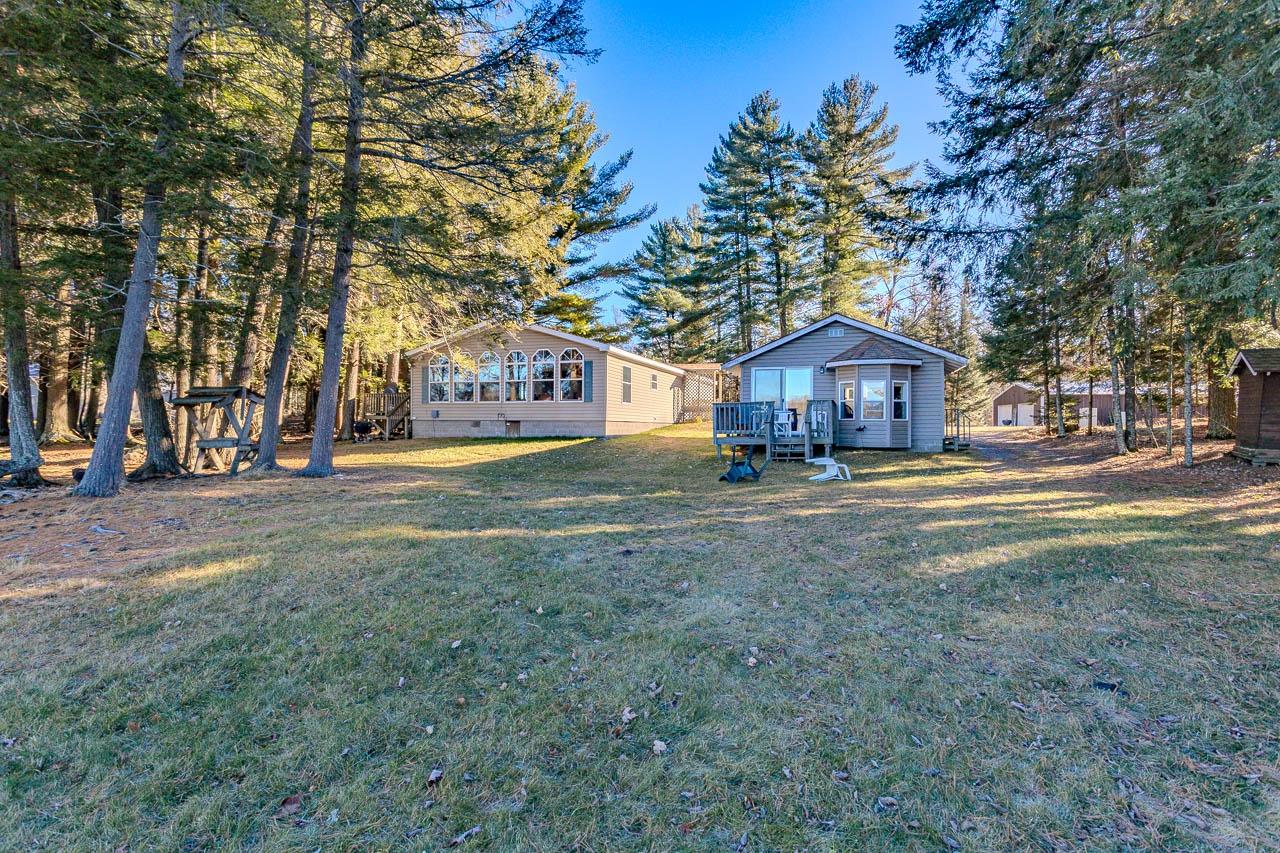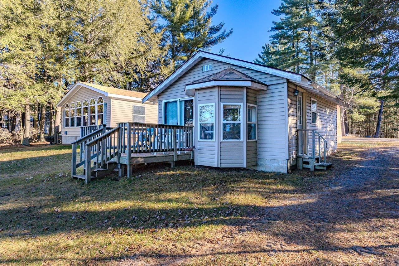 Discover this incredible waterfront property w/331 feet of private frontage on Long Lake, Sugar Camp. This unique listing includes 2 separate lots, offering abundant opportunities. The entrance lot features a Northwoods cottage complete w/full bath, kitchenette, and lofted bedroom space, located close to the water's edge for year-round enjoyment. A log-sided storage shed and a fenced garden w/raised beds add to the appeal. You'll find a spacious pole building for all your storage needs. The primary modular home offers 3BR, 2BA, and stunning views, perfect for gatherings. Additionally, there's an open-concept guest cottage w/kitchenette and beautiful views just feet away from the main home. The property includes several outbuildings, such as an open-concept pole building with a lean-to and an enclosed double-doored pole garage, suitable for various uses. Conveniently located near Eagle River, Sugar Camp, Three Lakes, and Rhinelander, this unzoned property is ready for new adventures!