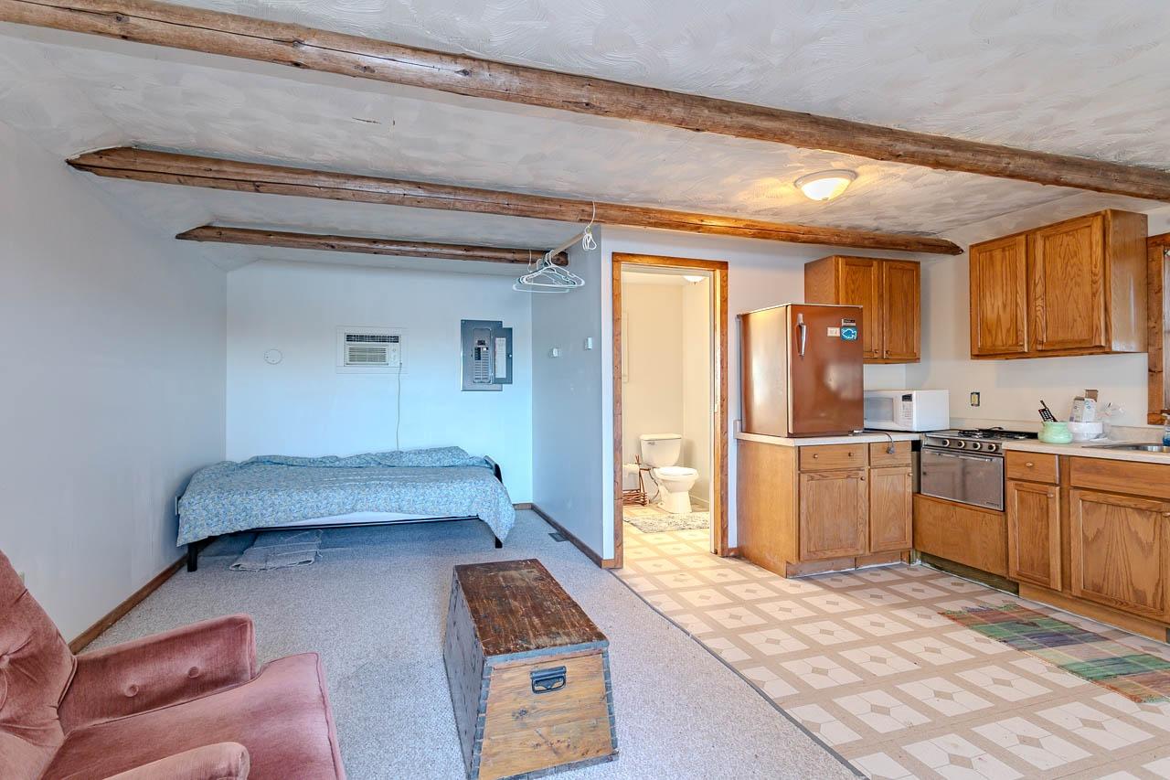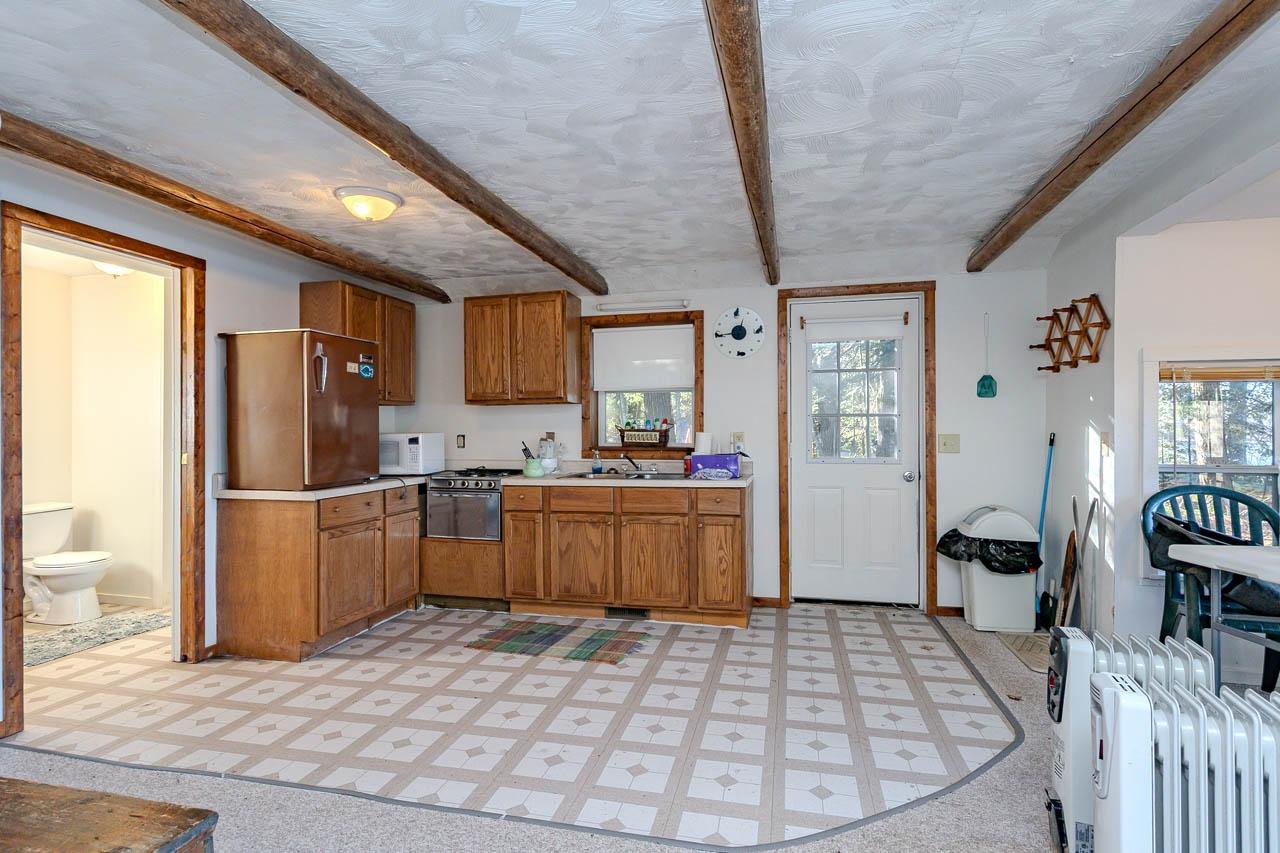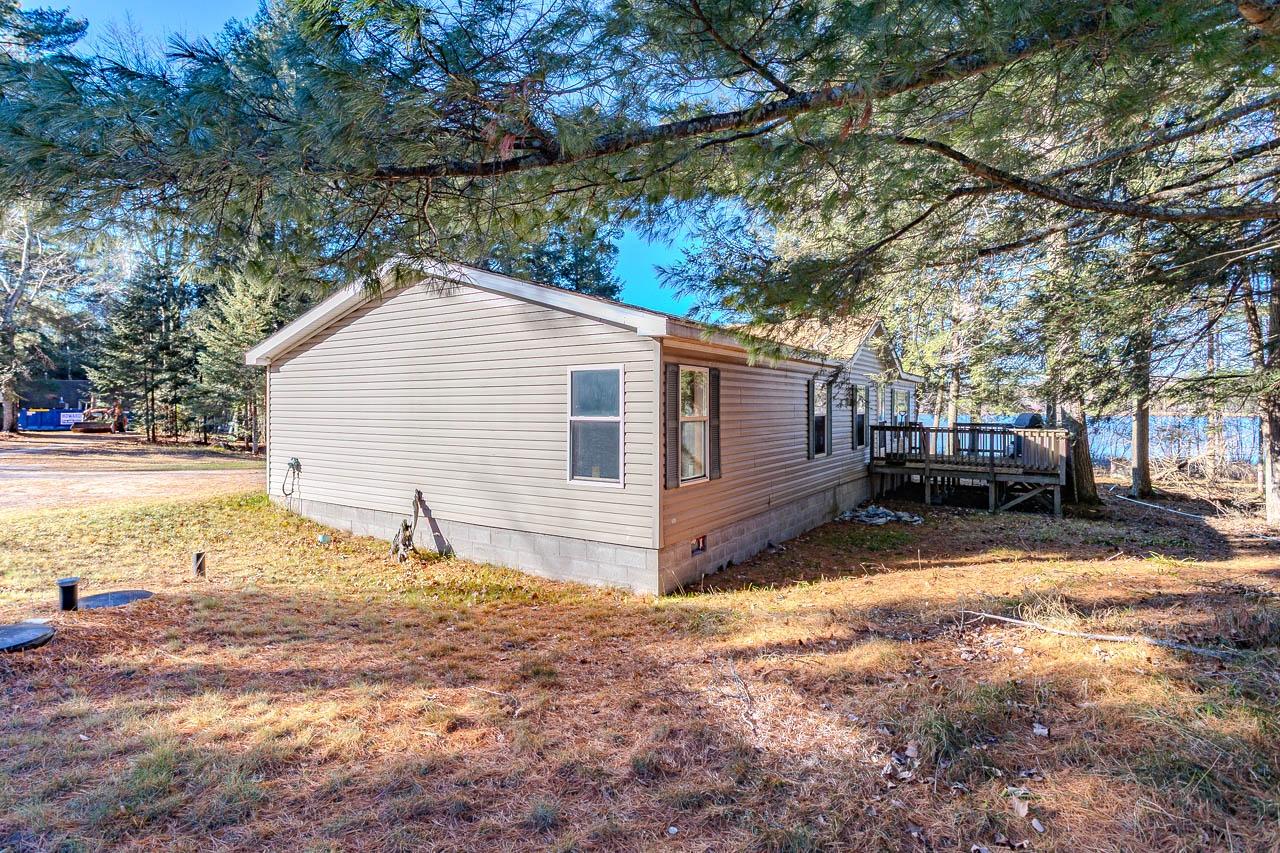 Discover this incredible waterfront property w/331 feet of private frontage on Long Lake, Sugar Camp. This unique listing includes 2 separate lots, offering abundant opportunities. The entrance lot features a Northwoods cottage complete w/full bath, kitchenette, and lofted bedroom space, located close to the water's edge for year-round enjoyment. A log-sided storage shed and a fenced garden w/raised beds add to the appeal. You'll find a spacious pole building for all your storage needs. The primary modular home offers 3BR, 2BA, and stunning views, perfect for gatherings. Additionally, there's an open-concept guest cottage w/kitchenette and beautiful views just feet away from the main home. The property includes several outbuildings, such as an open-concept pole building with a lean-to and an enclosed double-doored pole garage, suitable for various uses. Conveniently located near Eagle River, Sugar Camp, Three Lakes, and Rhinelander, this unzoned property is ready for new adventures!