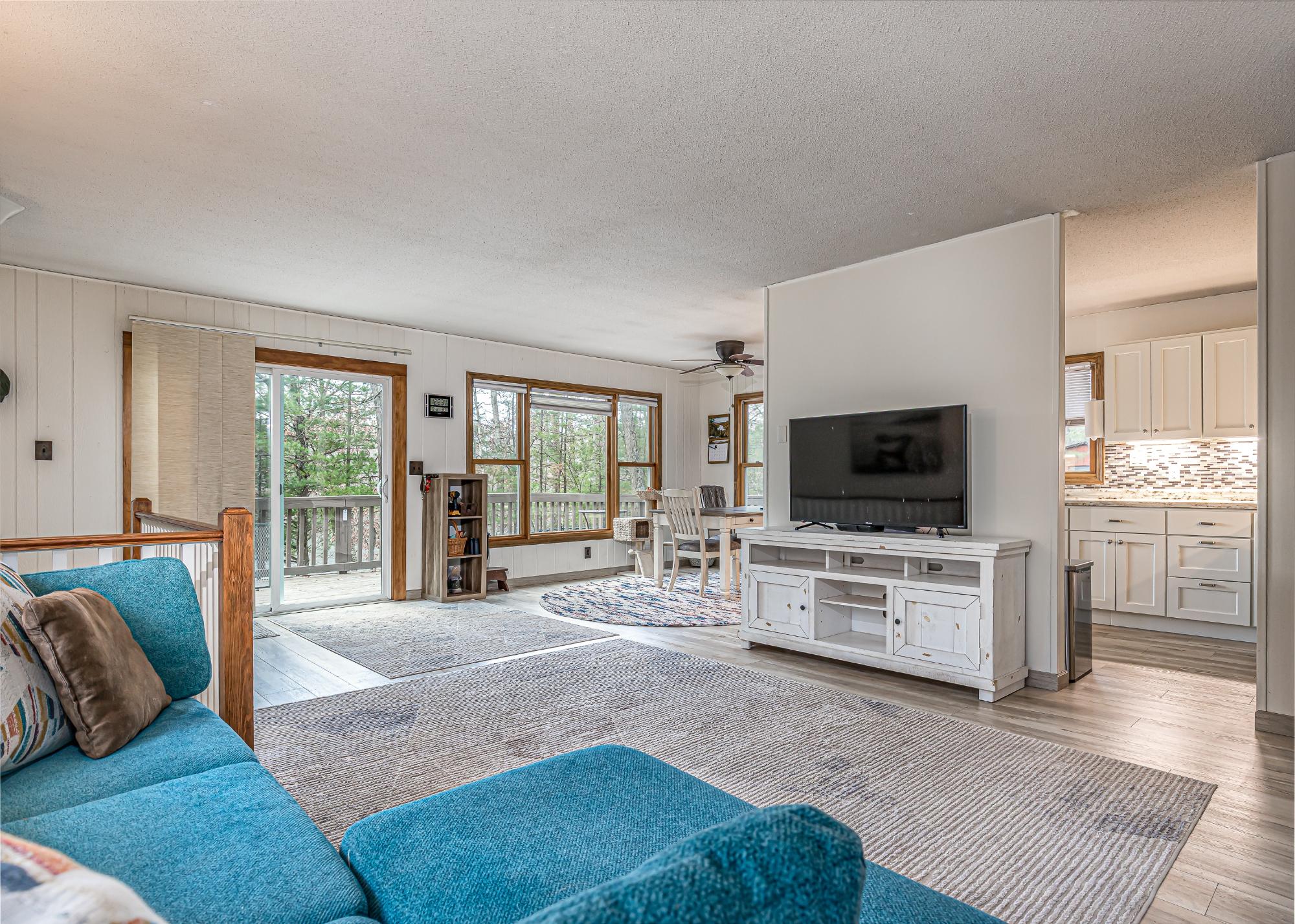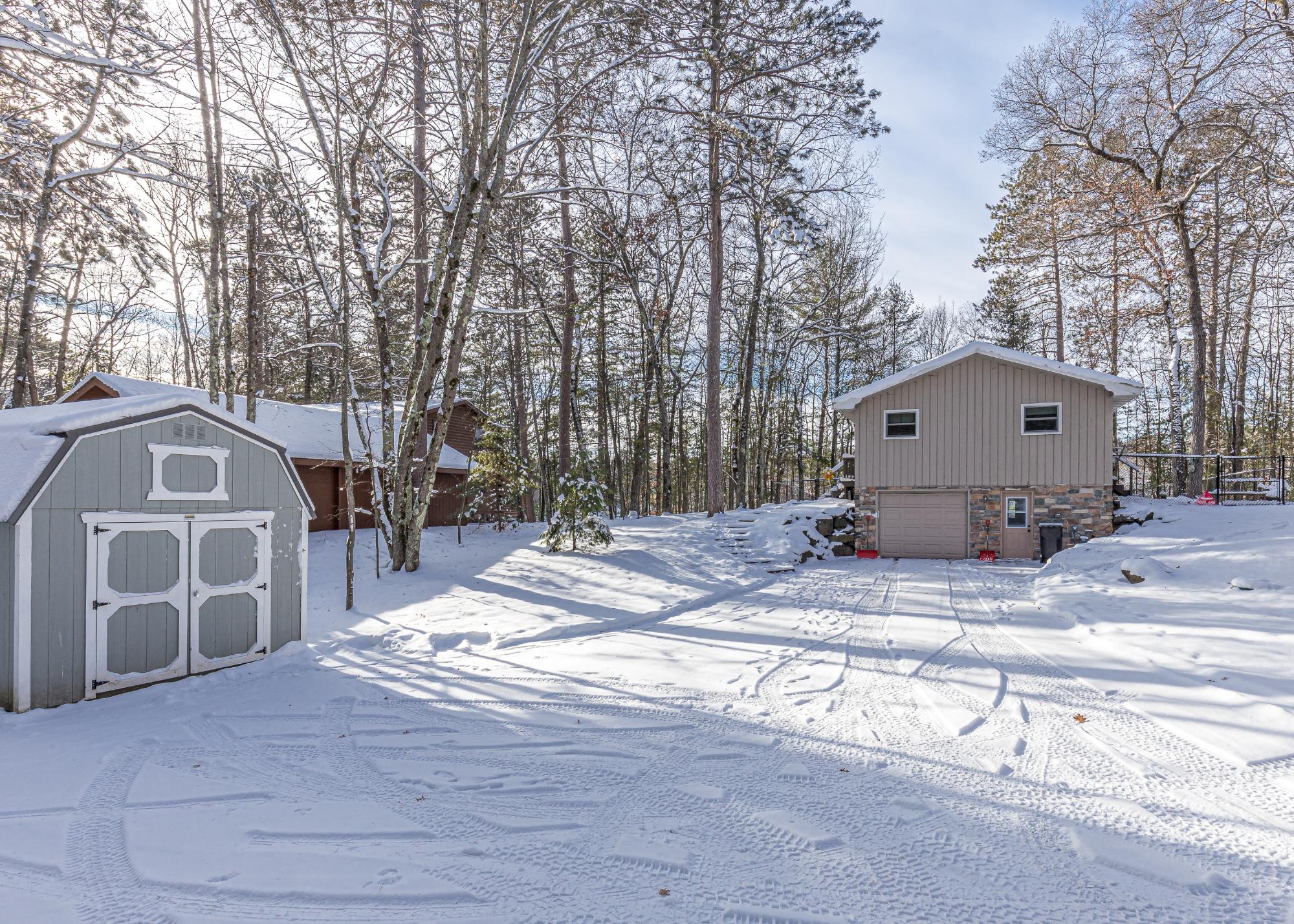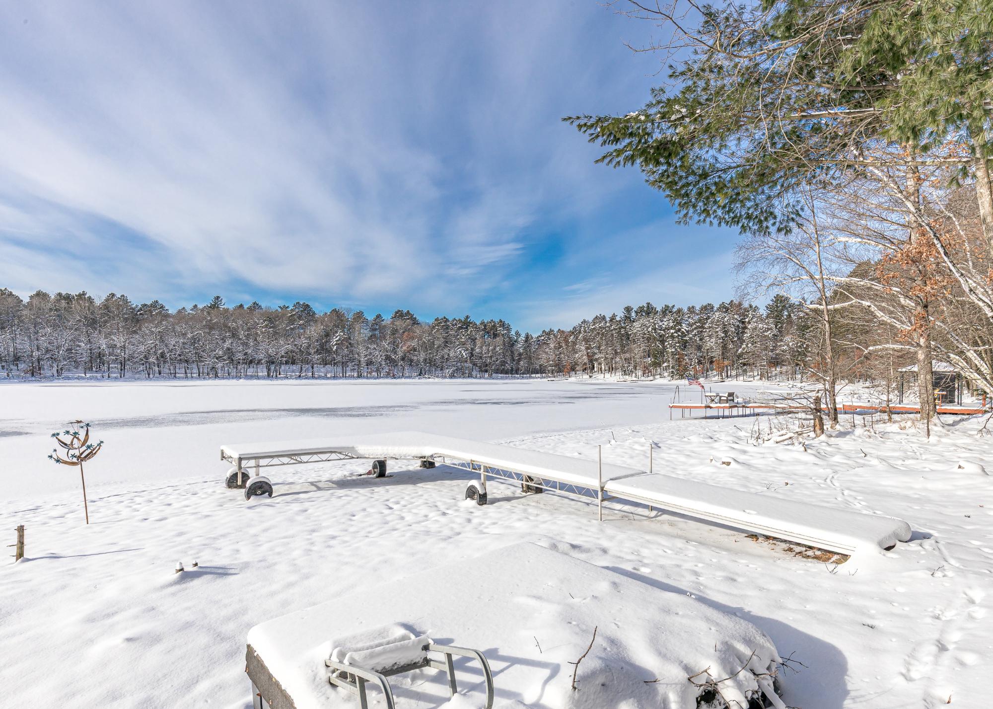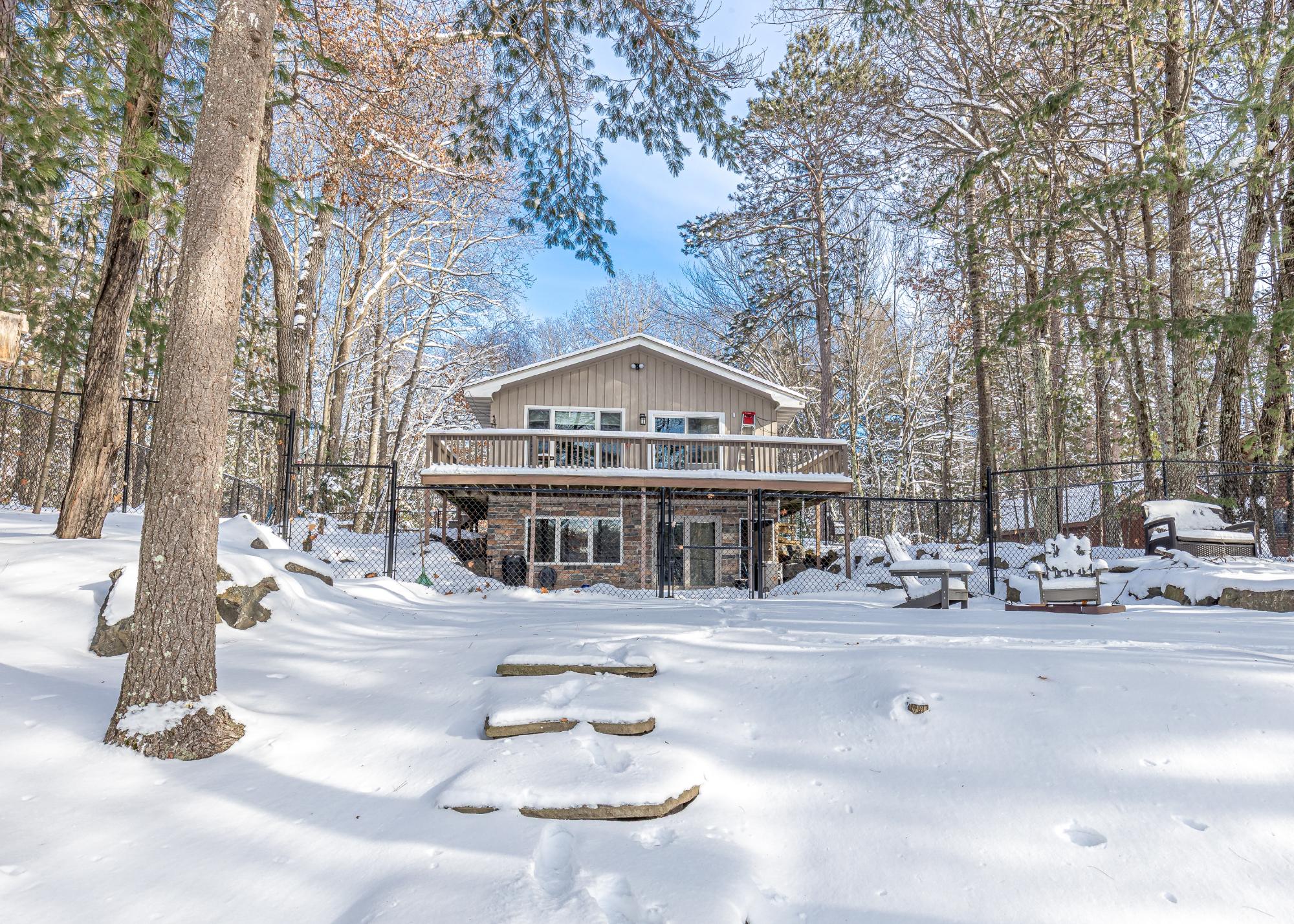 Slip into the quiet side of lake life just minutes from town on a peaceful no-motor lake. This 2bd/2ba home works as a cozy year-round nest or easy escape, w/ great swimming, fishing, & plenty of space to unwind around the fire. The south-facing, lot gives you sun-splashed afternoons & postcard sunsets right from the deck or lakeshore. The exposed, finished lower-level walks out to landscaped boulder walls & a fenced in stone patio & campfire area for evenings listening to nature. High-speed internet keeps you connected, & the attached 1-car garage keeps life convenient. Recent updates include 3-bedroom septic, forced-air furnace, kitchen, 2nd bath, blacktop driveway, flooring, & a storage shed. If you crave calm, paddle-friendly water yet refuse to give up quick access to town amenities this spot delivers exactly what you’re after.
