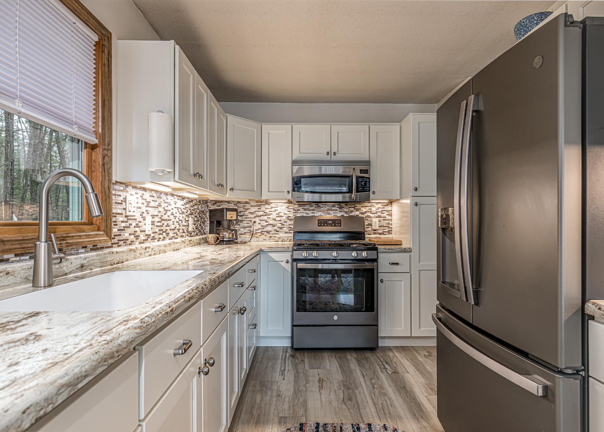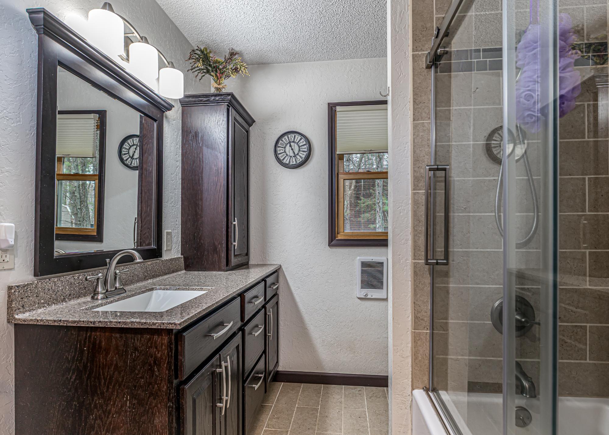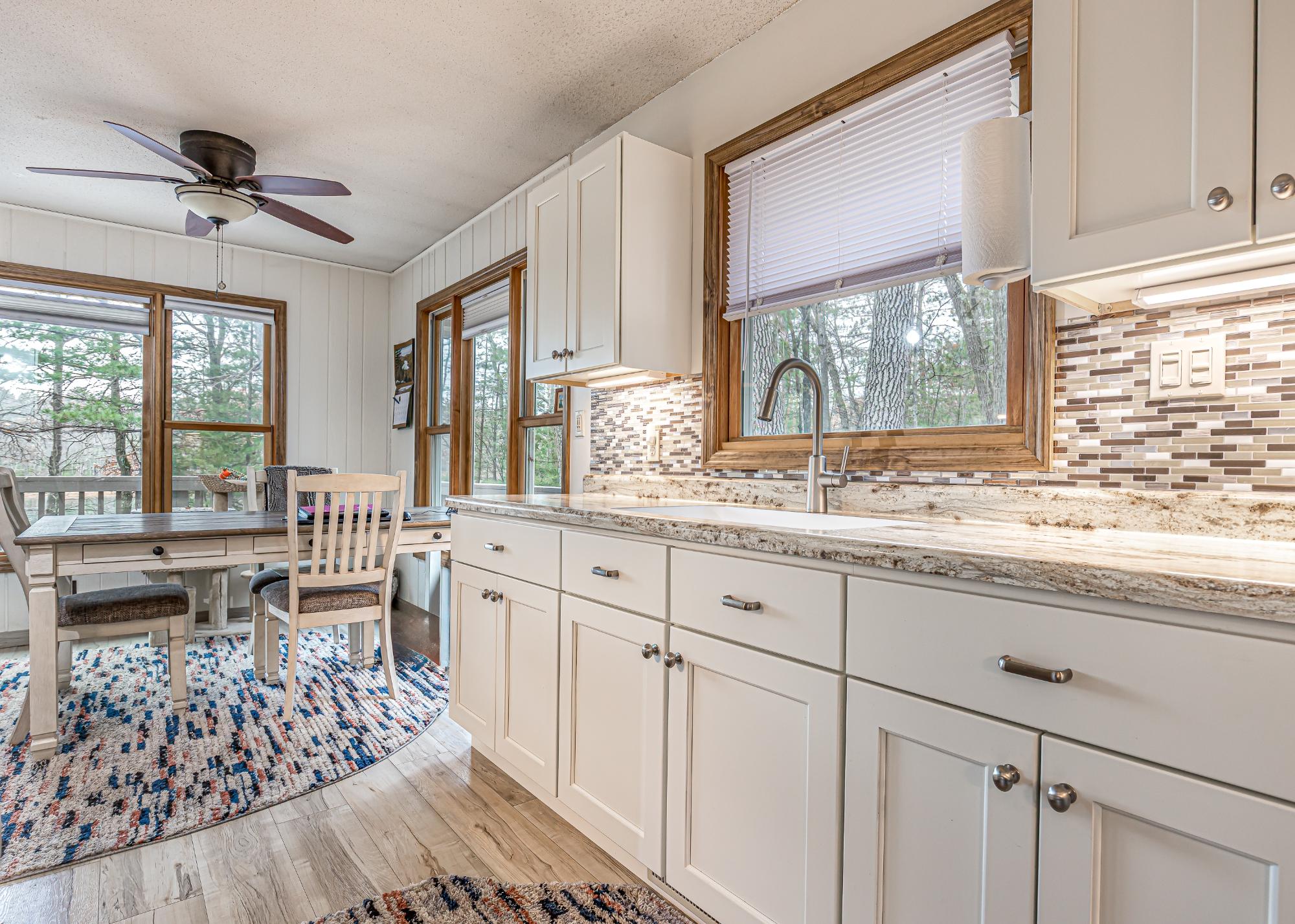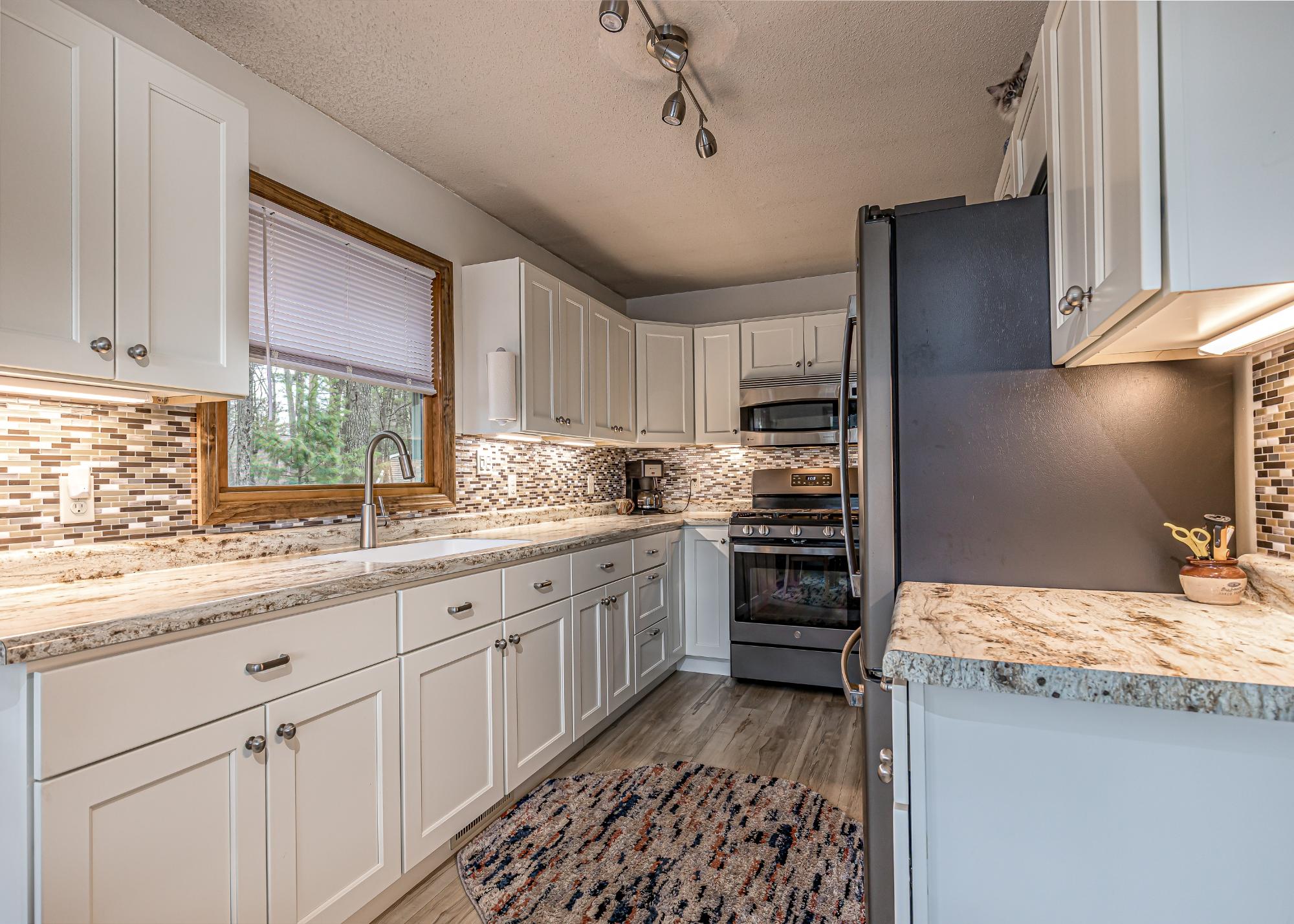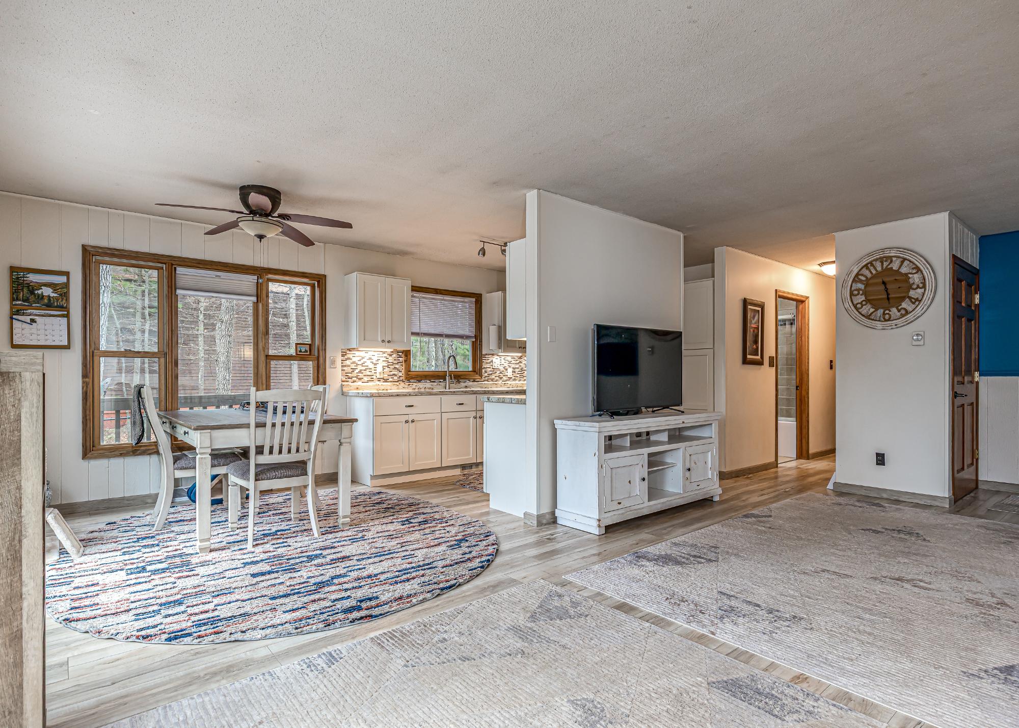 Slip into the quiet side of lake life just minutes from town on a peaceful no-motor lake. This 2bd/2ba home works as a cozy year-round nest or easy escape, w/ great swimming, fishing, & plenty of space to unwind around the fire. The south-facing, lot gives you sun-splashed afternoons & postcard sunsets right from the deck or lakeshore. The exposed, finished lower-level walks out to landscaped boulder walls & a fenced in stone patio & campfire area for evenings listening to nature. High-speed internet keeps you connected, & the attached 1-car garage keeps life convenient. Recent updates include 3-bedroom septic, forced-air furnace, kitchen, 2nd bath, blacktop driveway, flooring, & a storage shed. If you crave calm, paddle-friendly water yet refuse to give up quick access to town amenities this spot delivers exactly what you’re after.