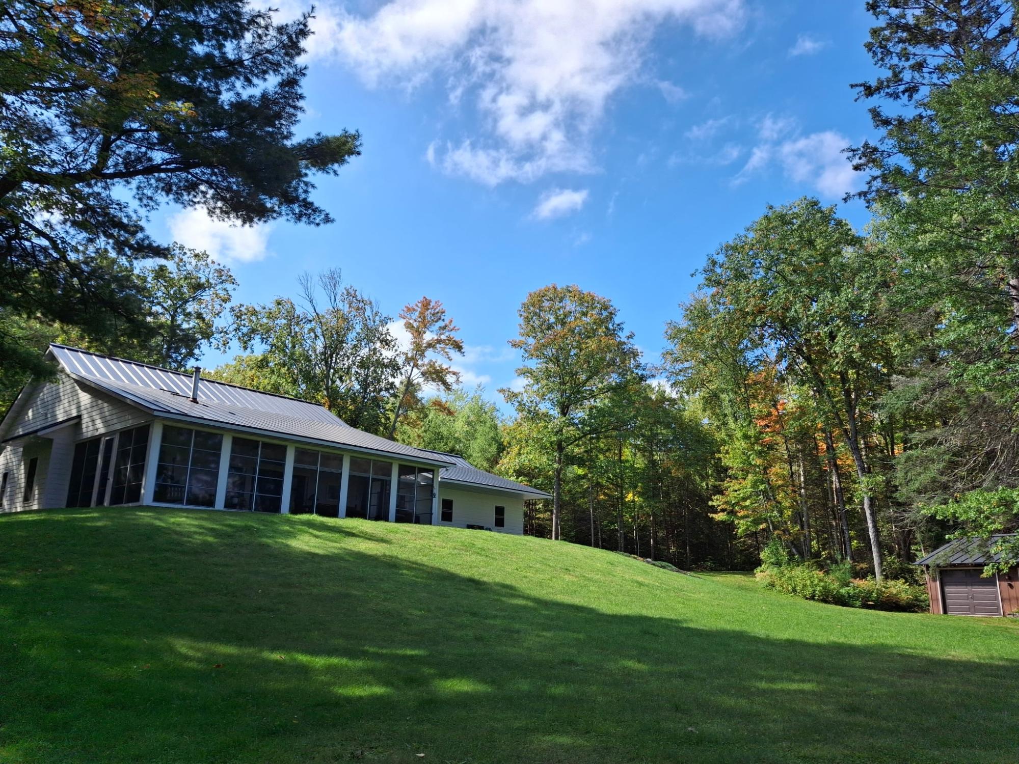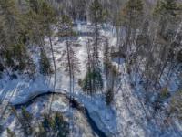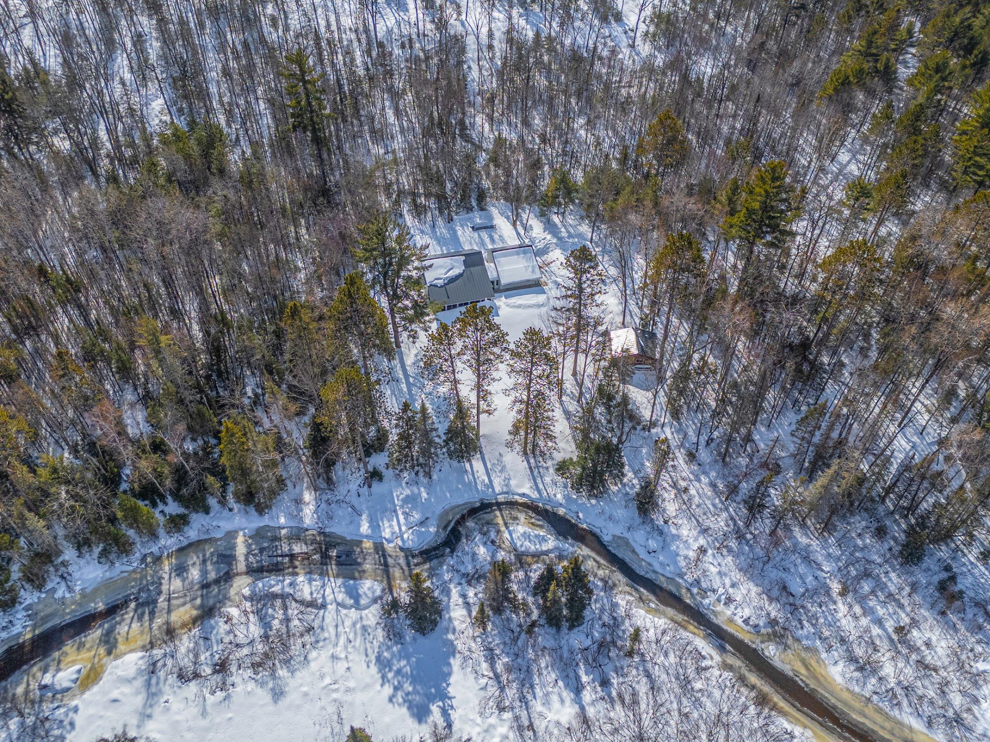 Seeking privacy? This is it! Escape to your own private retreat on this wooded 5-acre lot with 575 feet of frontage on Ninemile Creek. Kayak or canoe into Long Lake thoroughfare which is part of the famous Three Lakes Chain! Tucked away for ultimate privacy is this stunning 3BD, 3.5BA contemporary style home. The chef of the home will swoon over this beautiful kitchen. Ideal open concept for entertaining. Large creek side three seasons room with a wall of telescoping windows that bring in the sight and sound of nature but keep out the unwanted pests. Primary suite with its own bath, walk in closet and laundry. Second ensuite also with walk in closet and its own bath. Partially finished lower level with family room, bedroom, full bath and large utility/storage area. Sellers went the extra mile when designing this home. High end materials, zero entry, wide doorframes, generator, AC and so much more! Attached 3 car garage and 1 car detached with shop/storage area. Your serenity awaits!