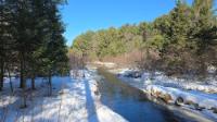 Seeking privacy? This is it! Escape to your own private retreat on this wooded 5-acre lot with 575 feet of frontage on Ninemile Creek. Kayak or canoe into Long Lake thoroughfare which is part of the famous Three Lakes Chain! Tucked away for ultimate privacy is this stunning 3BD, 3.5BA contemporary style home. The chef of the home will swoon over this beautiful kitchen. Ideal open concept for entertaining. Large creek side three seasons room with a wall of telescoping windows that bring in the sight and sound of nature but keep out the unwanted pests. Primary suite with its own bath, walk in closet and laundry. Second ensuite also with walk in closet and its own bath. Partially finished lower level with family room, bedroom, full bath and large utility/storage area. Sellers went the extra mile when designing this home. High end materials, zero entry, wide doorframes, generator, AC and so much more! Attached 3 car garage and 1 car detached with shop/storage area. Your serenity awaits!
