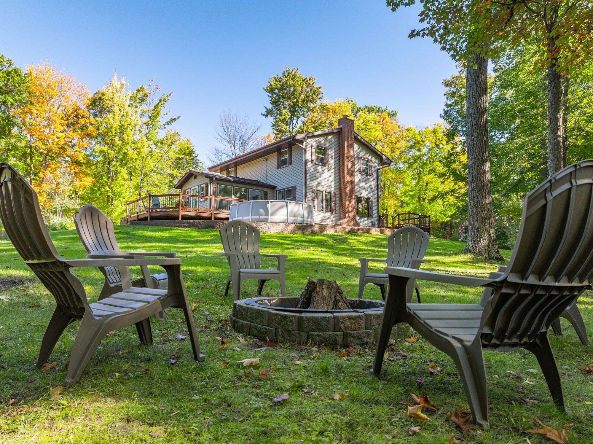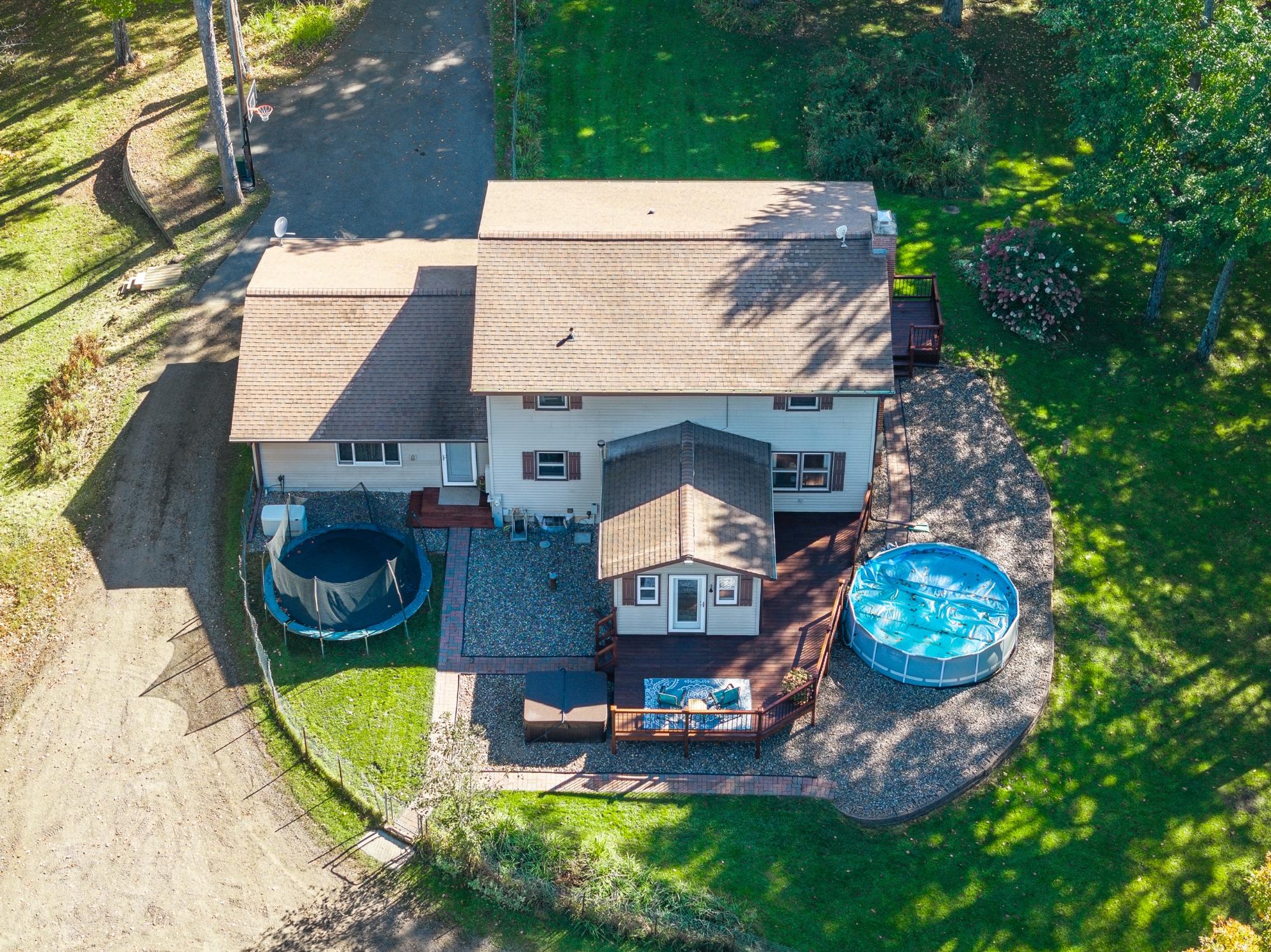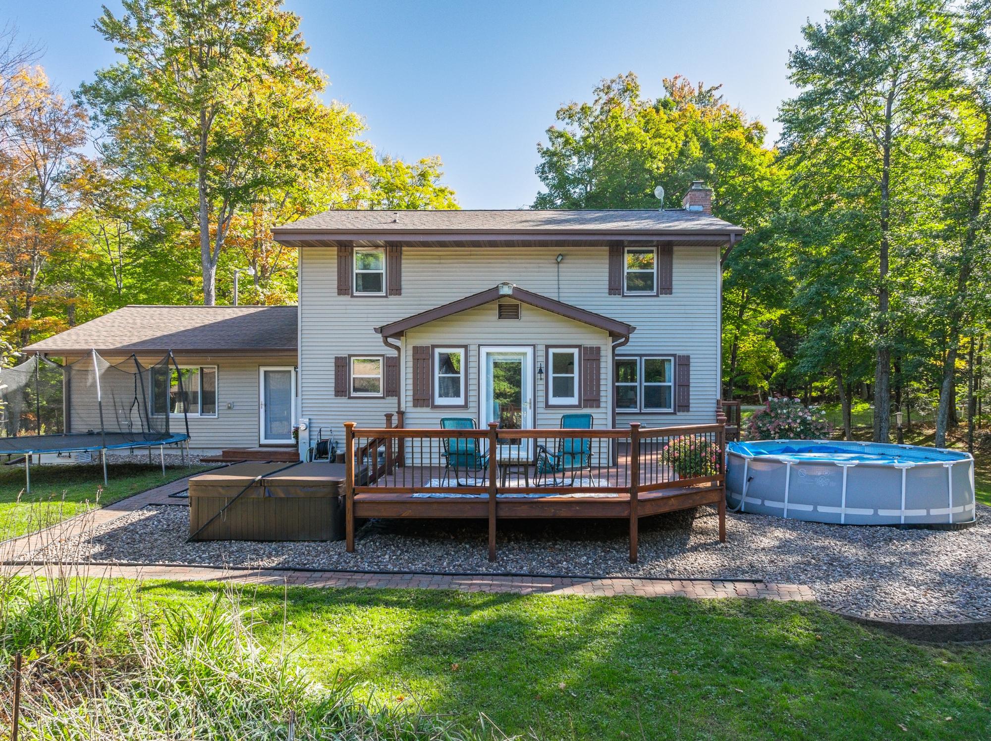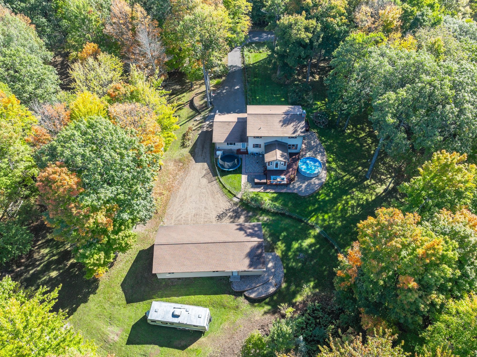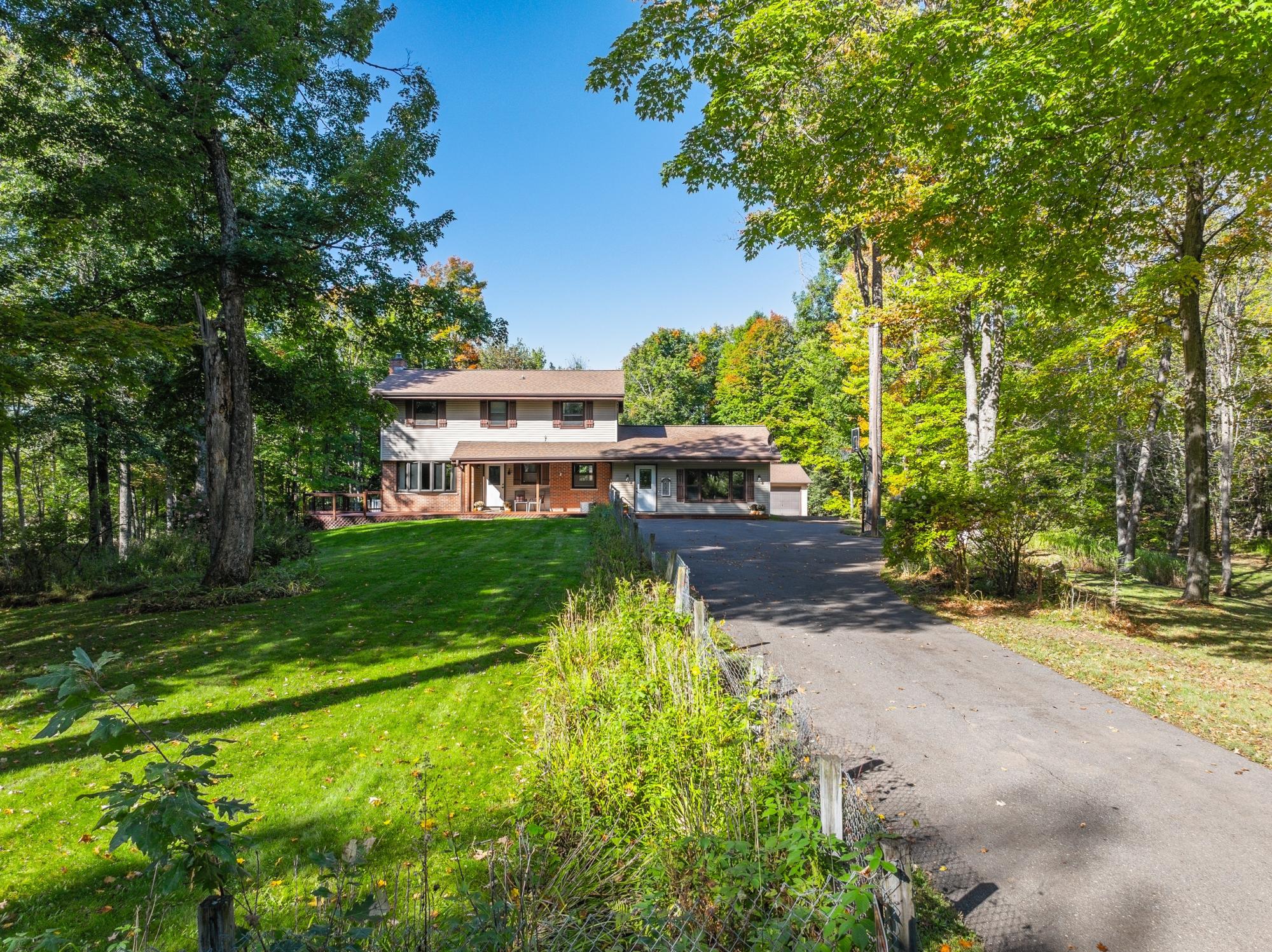 This well cared for home has room to roam – both inside and outside. Sitting on 5 acres, this home offers 4 bedrooms, including a primary suite, and 3.5 bathrooms. The main floor has an eat in kitchen with a large island, dining room, living room plus a 22x24 bonus room with a wet bar – transform this space into whatever fits your needs. The bedrooms are located on the 2nd floor and the basement offers a family room with a gas fireplace, a full bath and utility/storage/laundry area. There is a large covered front porch and a large deck in the backyard with a hot tub and an above ground pool w/ heater. Attractive landscaping, a 4 car garage with one of the stalls being insulated, a fenced area for pets or garden and a black top driveway. Conveniently located between Rhinelander and Minocqua on a quiet, black top country road. Fiber optic internet available.