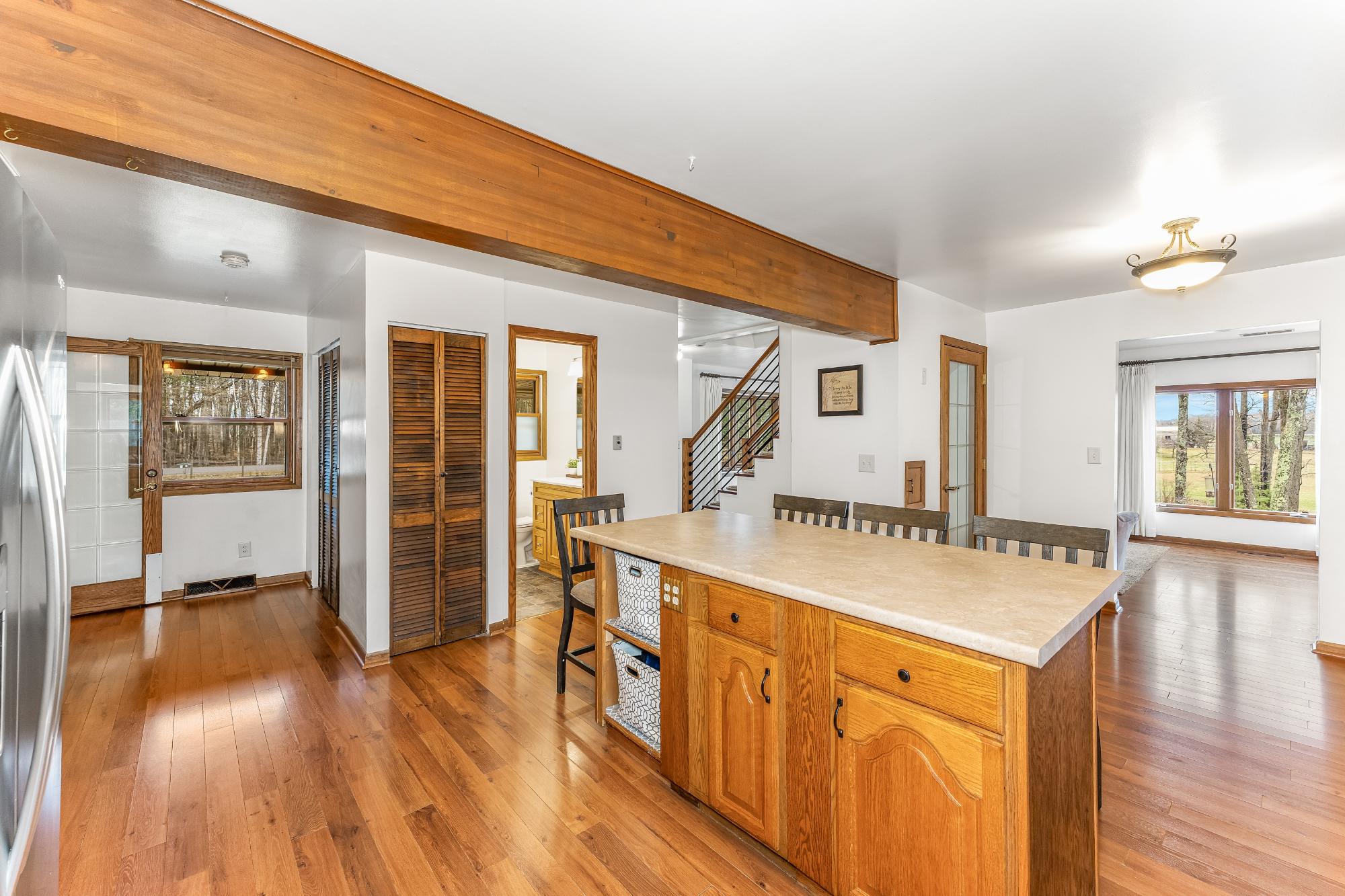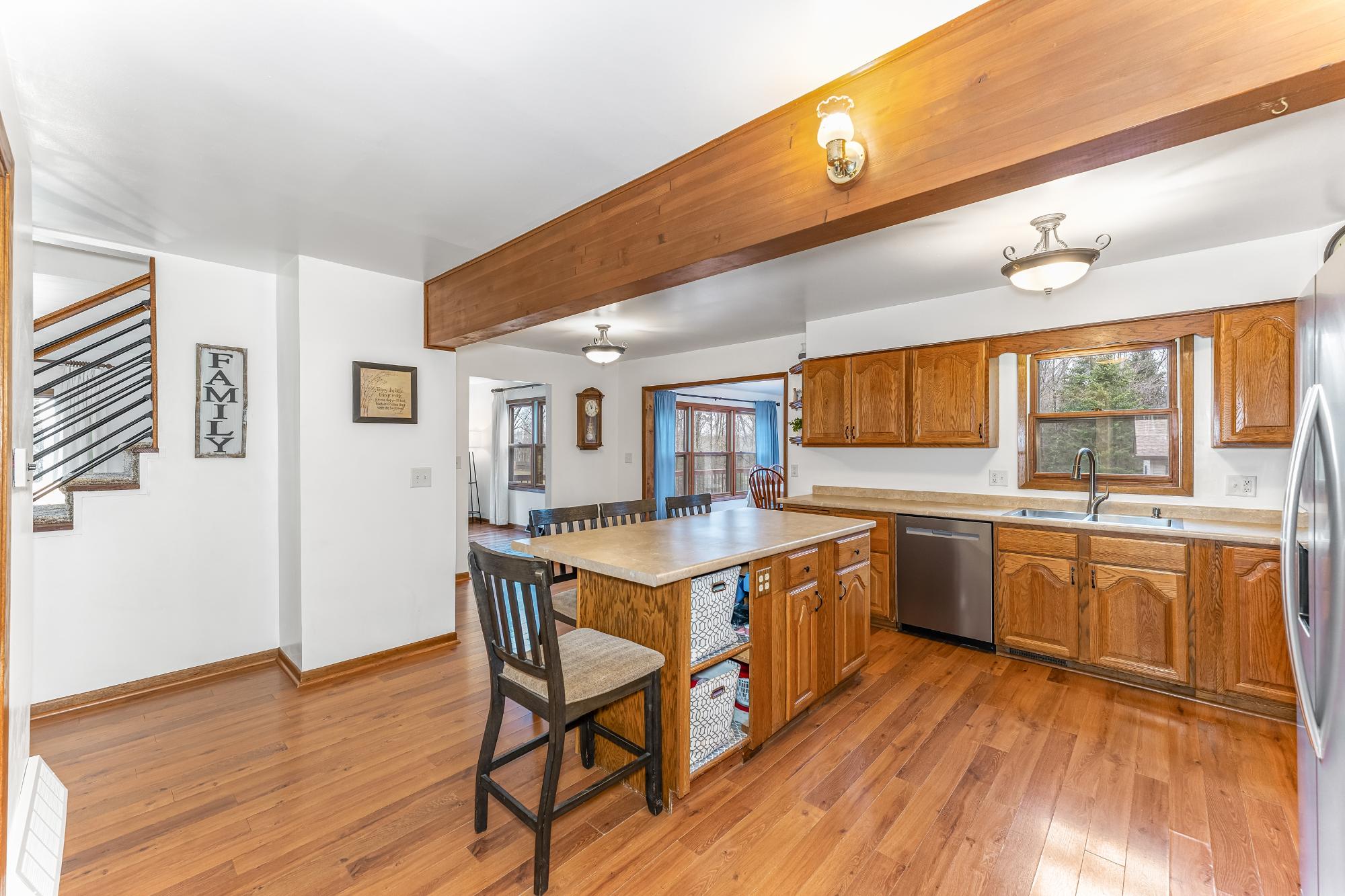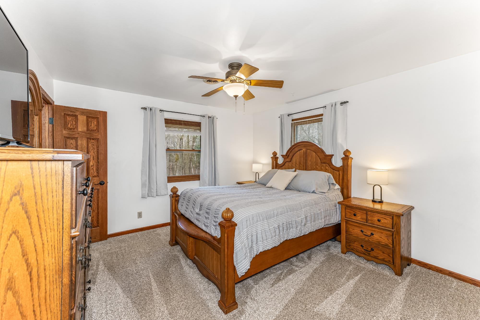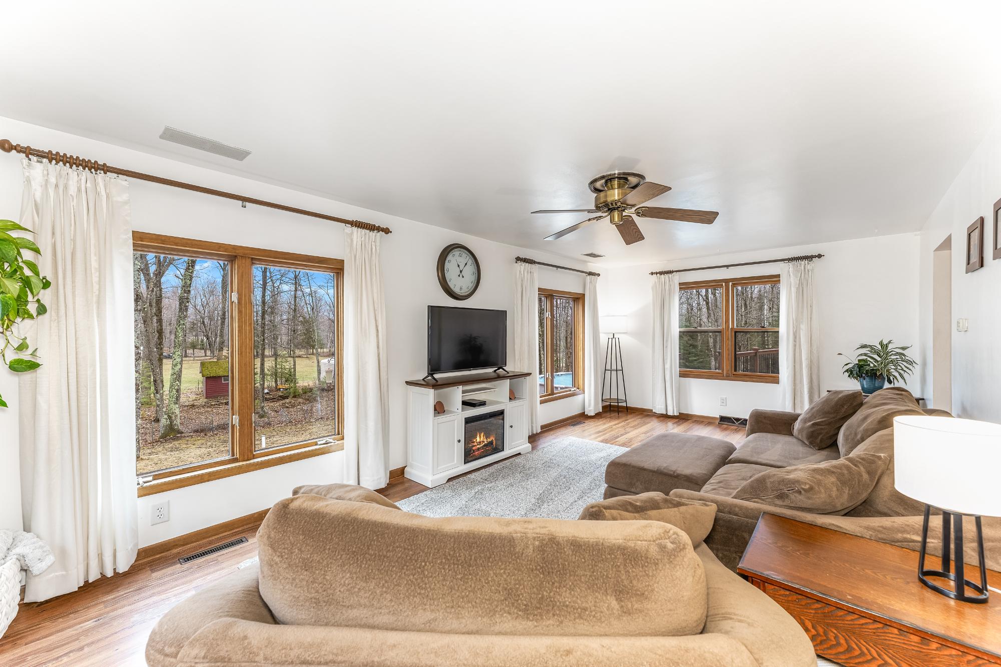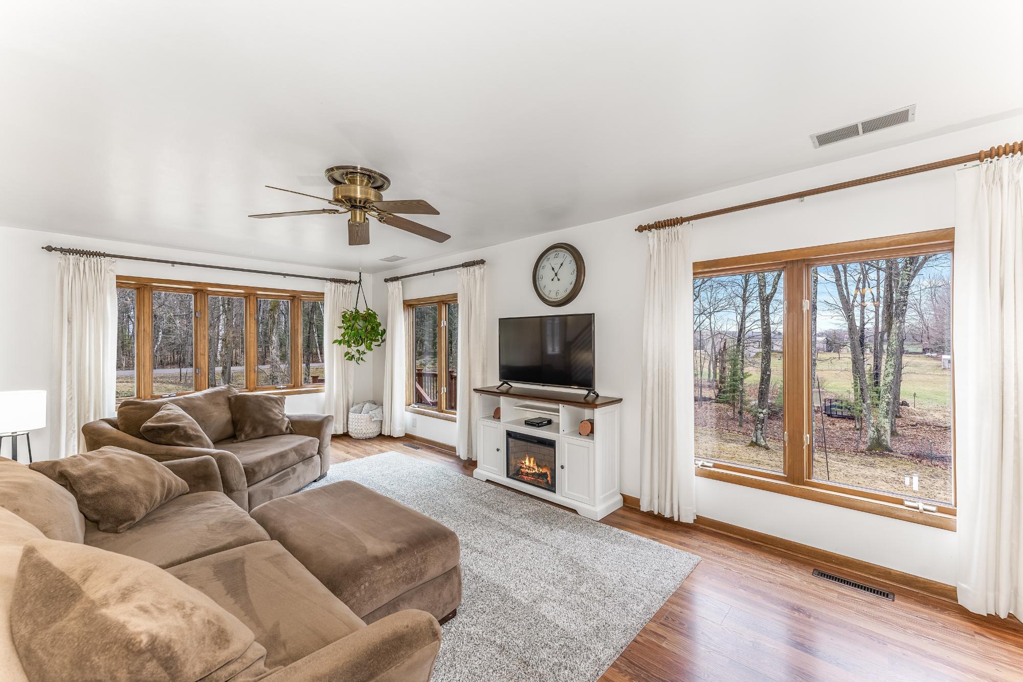 This well cared for home has room to roam – both inside and outside. Sitting on 5 acres, this home offers 4 bedrooms, including a primary suite, and 3.5 bathrooms. The main floor has an eat in kitchen with a large island, dining room, living room plus a 22x24 bonus room with a wet bar – transform this space into whatever fits your needs. The bedrooms are located on the 2nd floor and the basement offers a family room with a gas fireplace, a full bath and utility/storage/laundry area. There is a large covered front porch and a large deck in the backyard with a hot tub and an above ground pool w/ heater. Attractive landscaping, a 4 car garage with one of the stalls being insulated, a fenced area for pets or garden and a black top driveway. Conveniently located between Rhinelander and Minocqua on a quiet, black top country road. Fiber optic internet available.