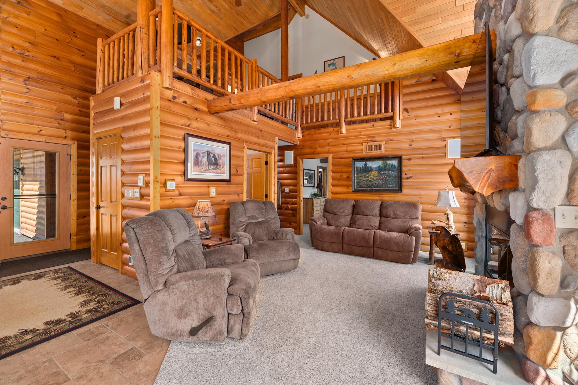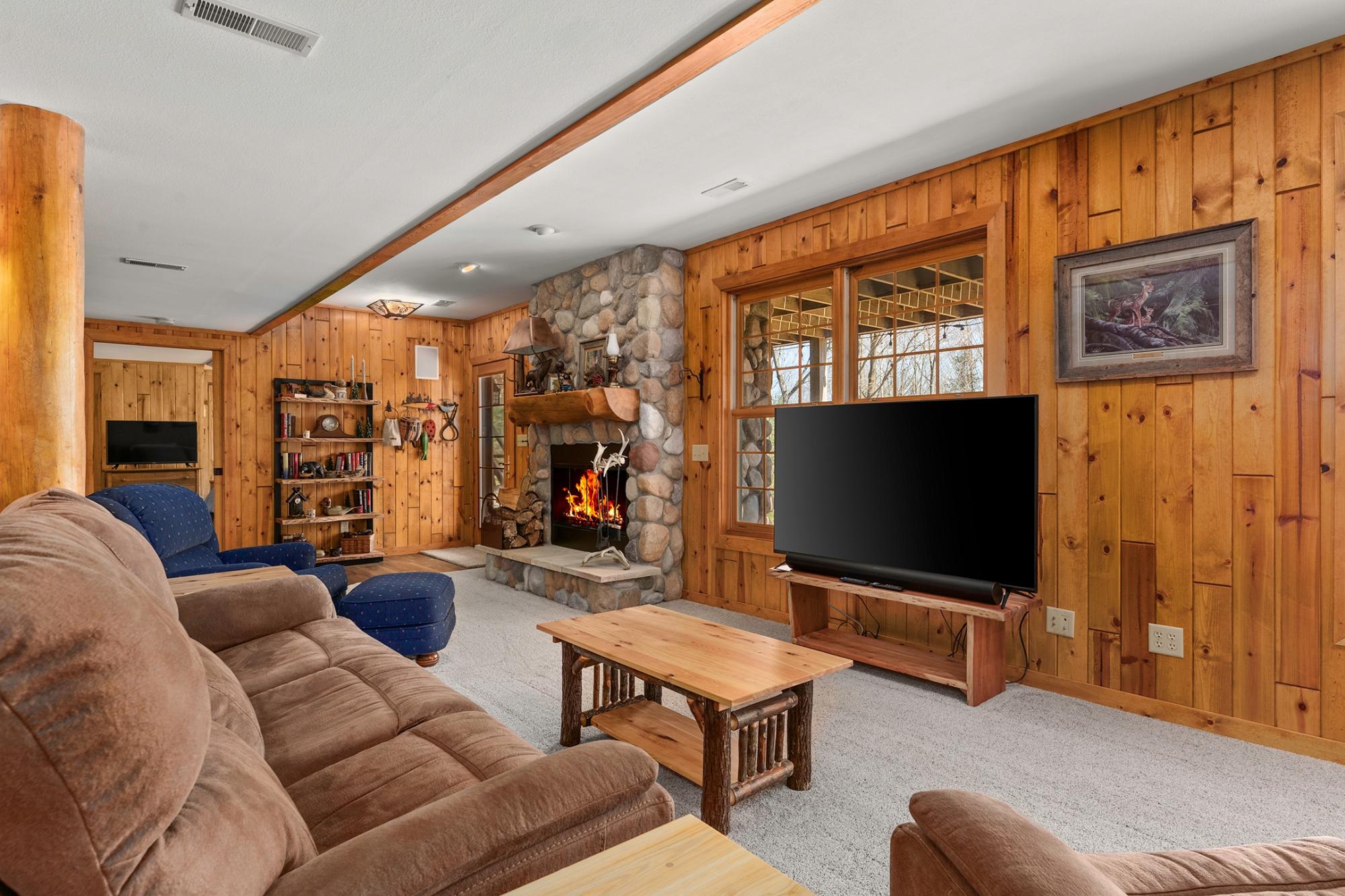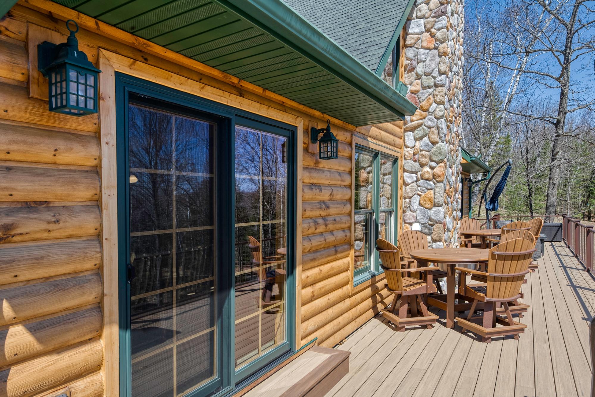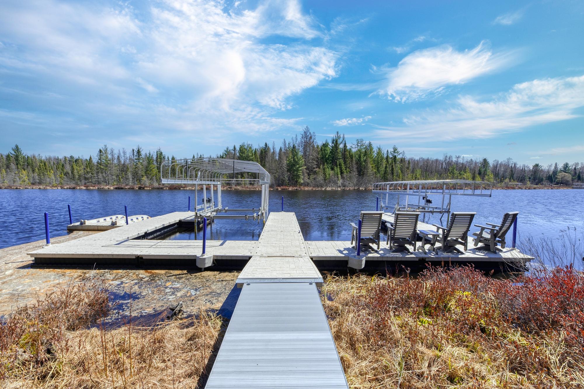 Nestled on the Sugar Camp is this stunning, Northwoods lakeside home offering 201’ of frontage on beautiful Chain Lake. It boasts year-round memorable relaxation & expansive lakeviews that are showcased throughout the home. 3+ bedroom, 3.5 bath chalet has undergone an extensive redesigned & renovation, incorporating modern amenities with a distinctive Northwoods aesthetic. Large windows flood the interior with natural light, seamless access to a spacious lakeside deck(composite), tastefully landscaped grounds & stone patio area. Every aspect of the property has been meticulously planned; premium kitchen w/ Wolf, Viking & sub-zero appliances, granite countertops, stone backsplashes, tongue & groove cathedral ceilings, log beams, 2 floor to ceiling wood burning fireplaces, walk-in tiled showers with stone flooring, finished walk-out lower level with rec room, wet bar w/ beverage cooler, Italian heated ceramic tile, hickory hardwood flooring, exercise room, loft and home theatre system. The exterior is enhanced with extensive lightening, 2.5 car insulated garage, new pier system, stained & resealed exterior, & new electrical and mechanicals. The property also includes the adjacent lot allowing for the blacktopped circular drive that provides convenient access to the home & lake while accommodating large gatherings. Situated in an ideal location between Eagle River, St. Germain & Rhinelander & easy access to snowmobile & ATV trails. Every detail both inside & out has been thoughtfully designed & planned to provide the quintessential lakefront style sought by many!