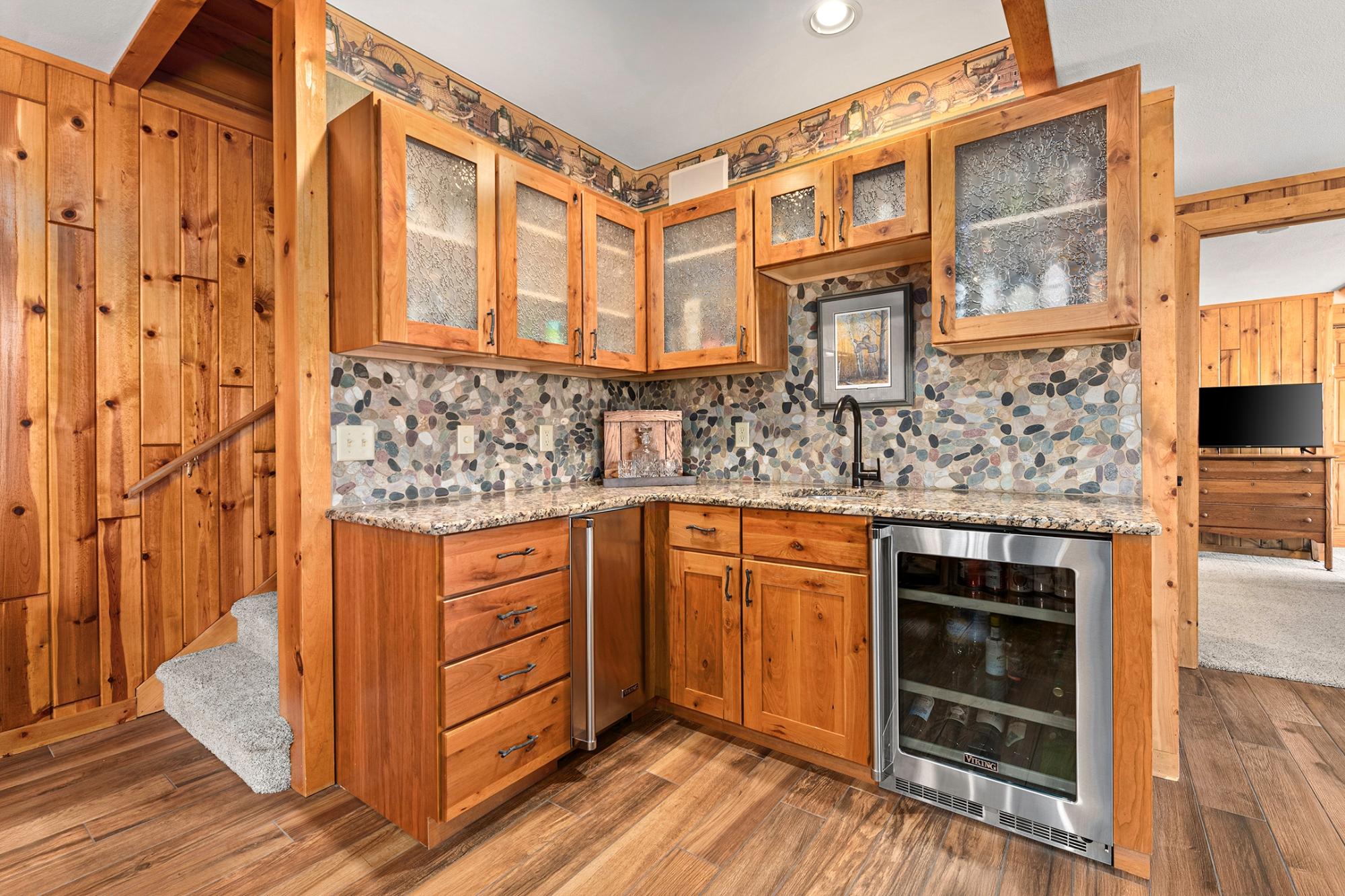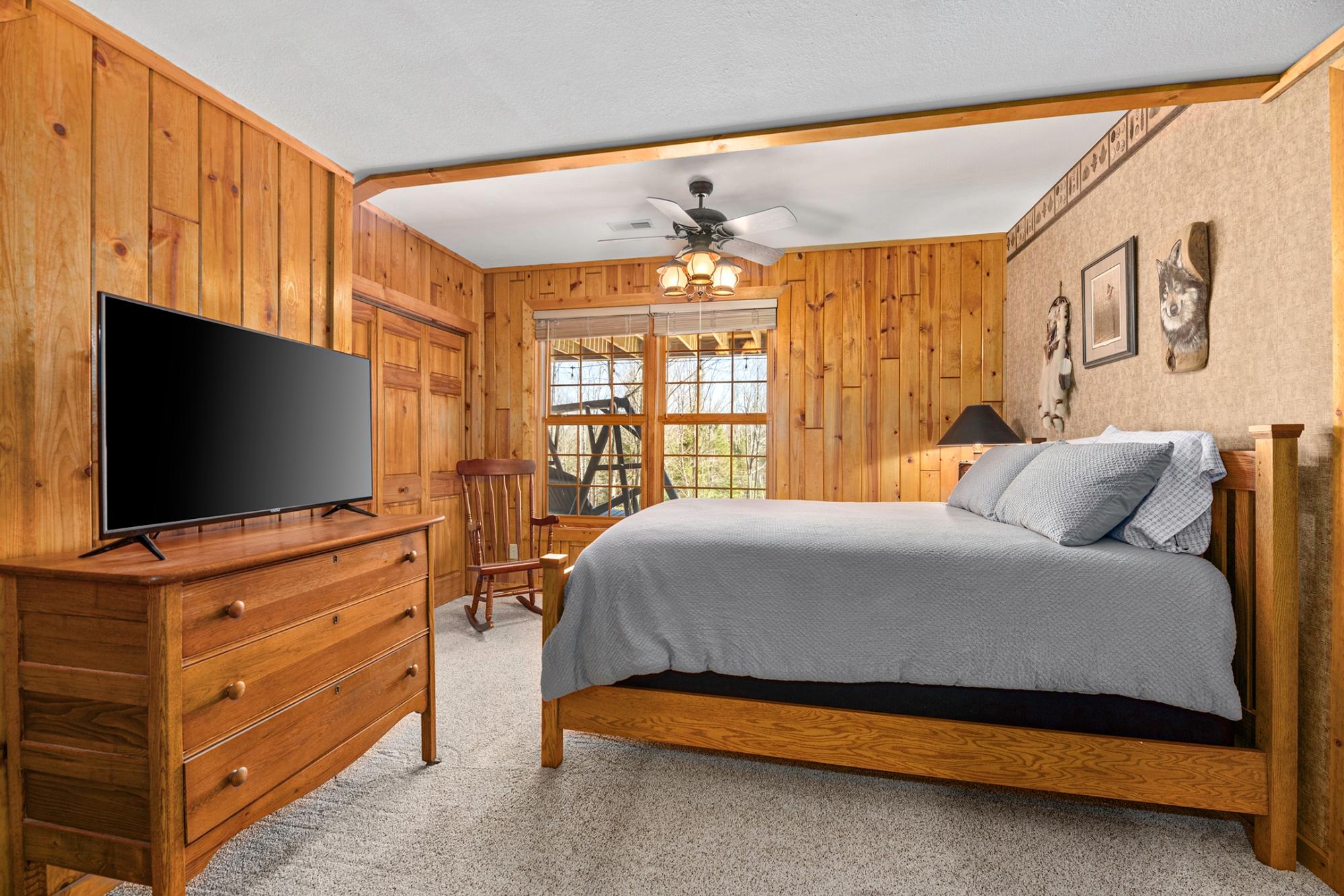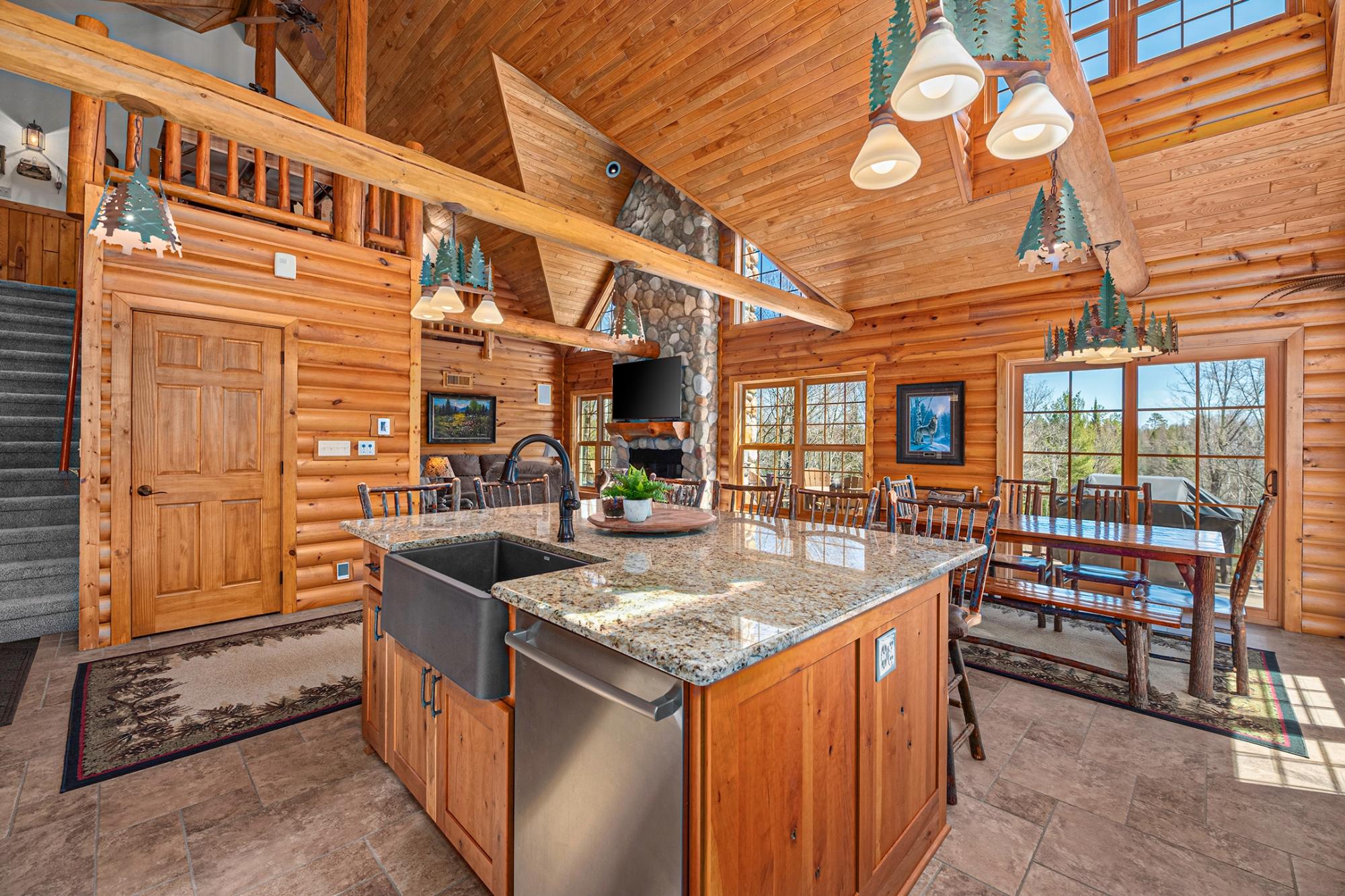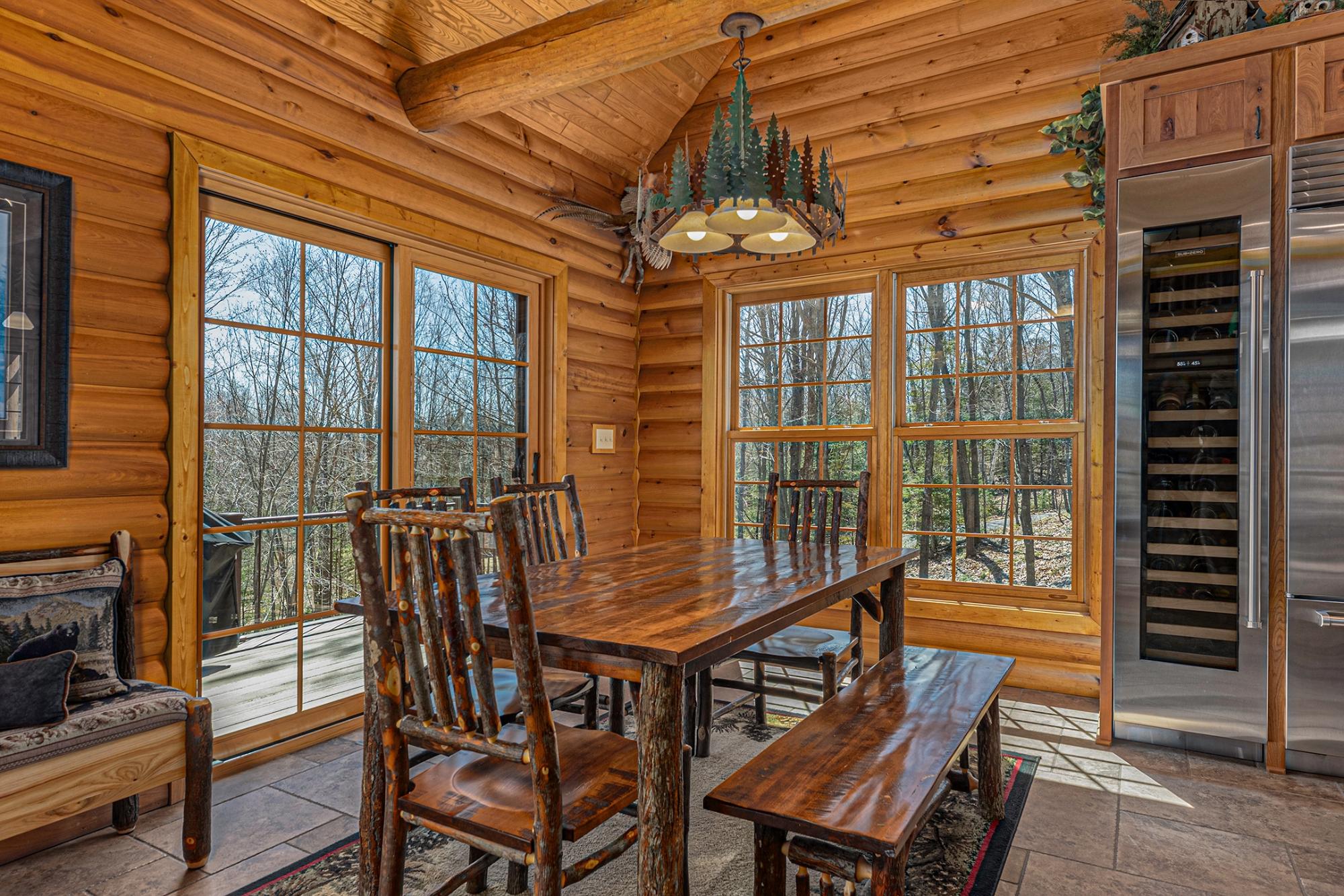 Nestled on the Sugar Camp is this stunning, Northwoods lakeside home offering 201’ of frontage on beautiful Chain Lake. It boasts year-round memorable relaxation & expansive lakeviews that are showcased throughout the home. 3+ bedroom, 3.5 bath chalet has undergone an extensive redesigned & renovation, incorporating modern amenities with a distinctive Northwoods aesthetic. Large windows flood the interior with natural light, seamless access to a spacious lakeside deck(composite), tastefully landscaped grounds & stone patio area. Every aspect of the property has been meticulously planned; premium kitchen w/ Wolf, Viking & sub-zero appliances, granite countertops, stone backsplashes, tongue & groove cathedral ceilings, log beams, 2 floor to ceiling wood burning fireplaces, walk-in tiled showers with stone flooring, finished walk-out lower level with rec room, wet bar w/ beverage cooler, Italian heated ceramic tile, hickory hardwood flooring, exercise room, loft and home theatre system. The exterior is enhanced with extensive lightening, 2.5 car insulated garage, new pier system, stained & resealed exterior, & new electrical and mechanicals. The property also includes the adjacent lot allowing for the blacktopped circular drive that provides convenient access to the home & lake while accommodating large gatherings. Situated in an ideal location between Eagle River, St. Germain & Rhinelander & easy access to snowmobile & ATV trails. Every detail both inside & out has been thoughtfully designed & planned to provide the quintessential lakefront style sought by many!