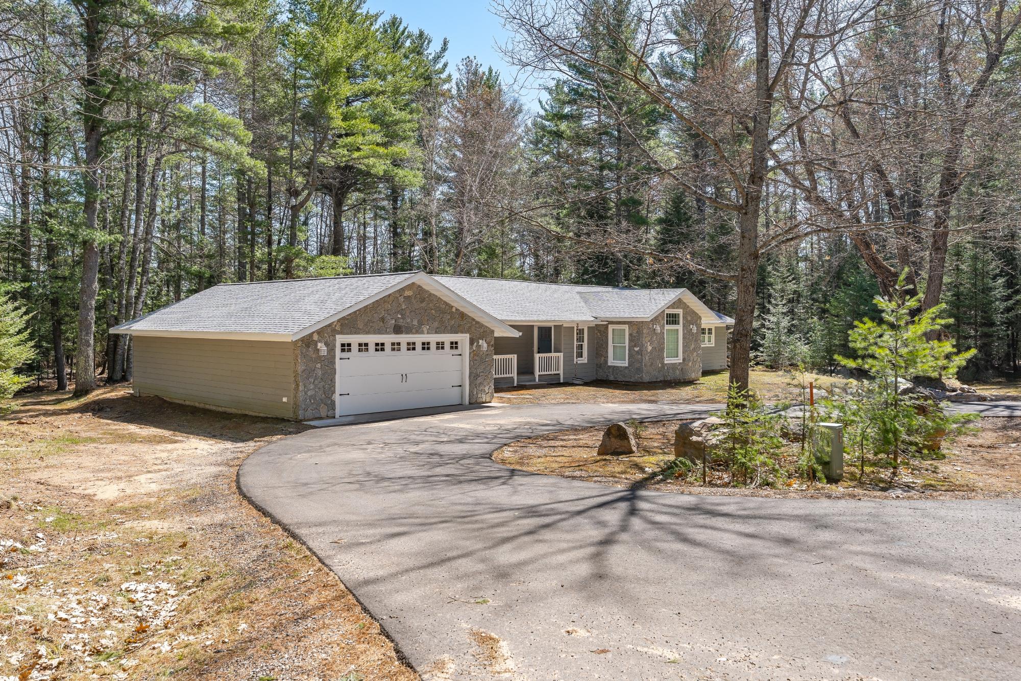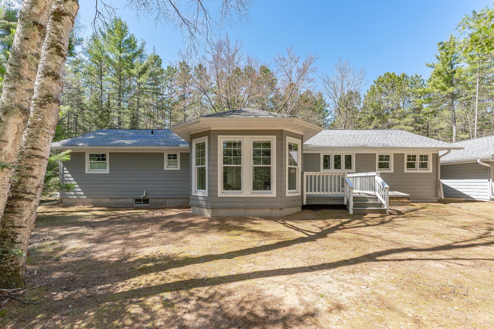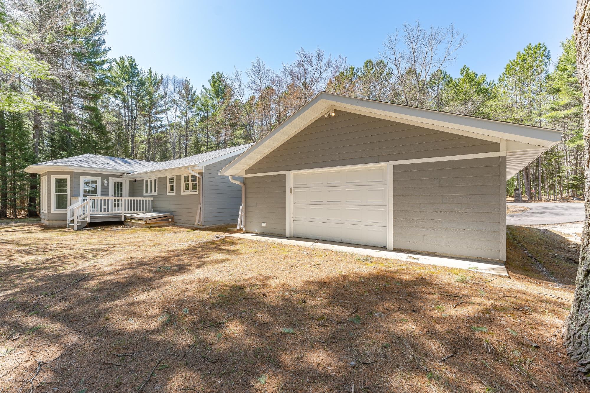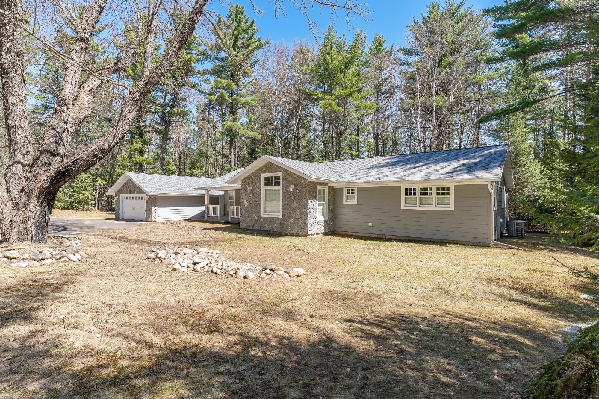 The perfect blend of luxury and natural beauty awaits at this recently renovated 1895 sq. ft. 2BR/2.5BA ranch home, just minutes from Eagle River. You will certainly appreciate all of the high end finishes, from flooring to the doors to the built in cabinets in this ranch style space. A nicely appointed kitchen with newer appliances(and a walk in pantry!), anchors the open-concept main floor, providing great nature views on this 1.57 acre lot. There is a private primary suite with attached full bathroom, and one additional main-level bedroom, living room, sunroom, office, a full bath, 1/2 bath, and laundry to complete this level. Entertain or simply relax in the sunroom, with glass all around, so you can watch the deer come in to the yard. Powered blinds and ambient recessed uplighting in this sunroom create the perfect mood for any occasion. The basement is a blank canvas, ready for you to finish, as there is an egress window to potentially build another bedroom, or have an additional family room down in that lower level. A detached, oversized, 2-car garage, are just steps from the house and can store all of your outdoor toys. Ready to see it in person? Schedule a tour today to experience this Northwoods sanctuary!