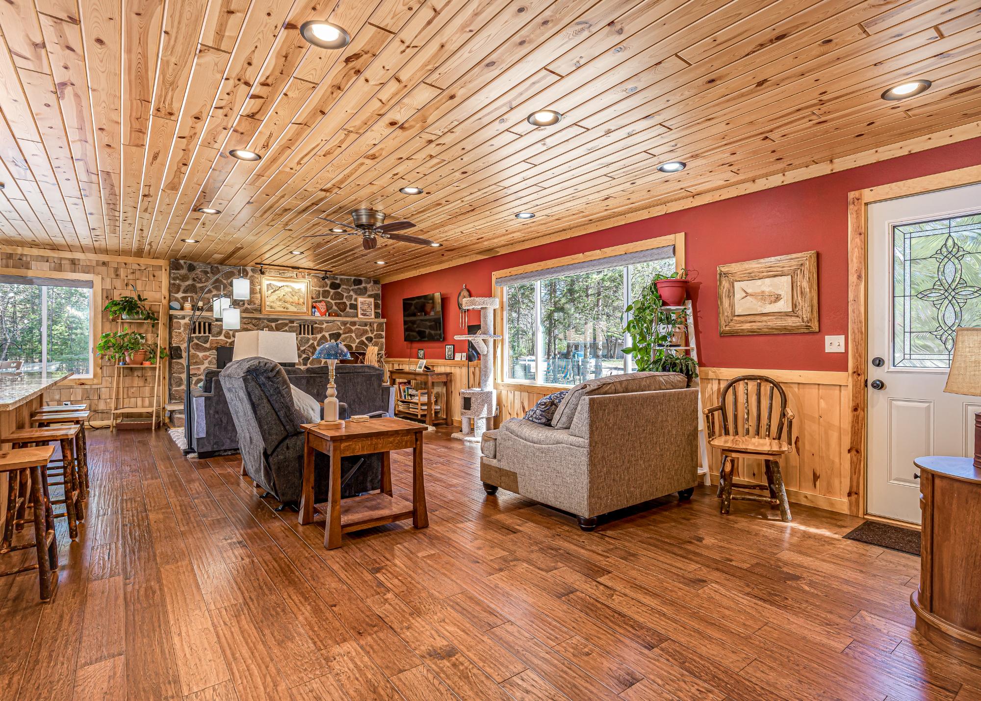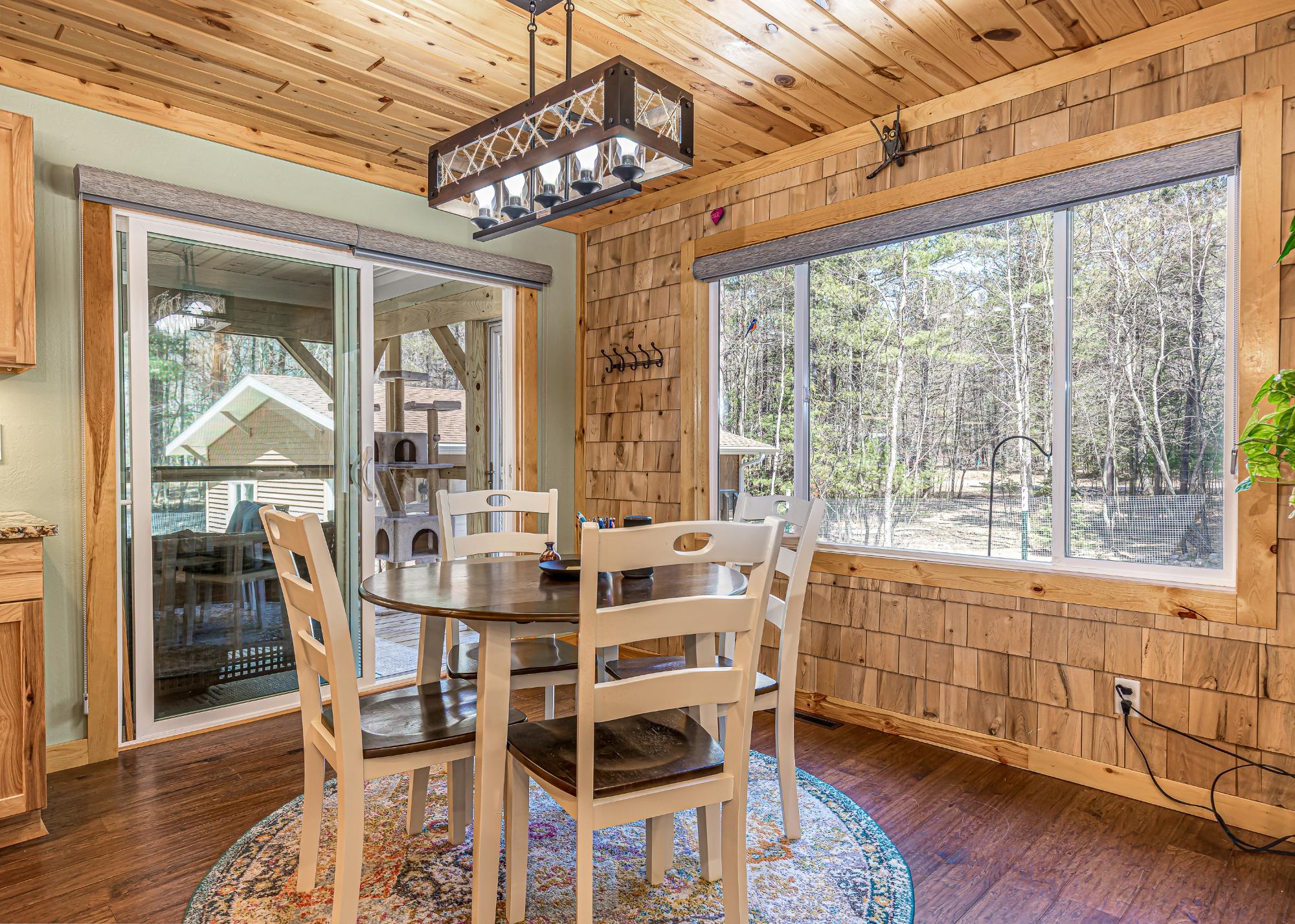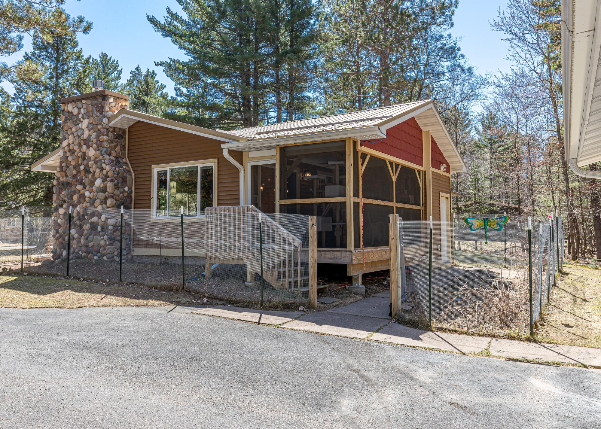 Here's a house with total Northwoods charm and is move in ready! In the past 6 years the interior has been completely remodeled and the exterior has new siding and a metal roof. In addition, the furnace, A/C unit and water heater were also replaced. This home offers one floor living, other than a few steps in the mudroom. The open concept living area is spacious and features a newer floor to ceiling gas fireplace in the living room and the kitchen has abundant granite countertops, ash cabinets and stainless steel appliances. There is also a dining area and a 16x9 screened porch to enjoy 3 seasons! Down the hallway you will find the laundry and three bedrooms, one of them being the primary with a private bathroom. There is a crawl space with exterior access. Step outside to a fenced area of fruit trees and bushes, a concrete walk way to the front door, blacktop driveway, oversized 2 car garage and a 1+ acre lot offering privacy. All of this is only minutes from town. It has been well cared for and is waiting for a new owner!