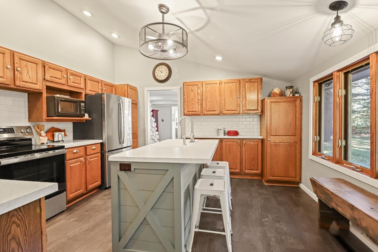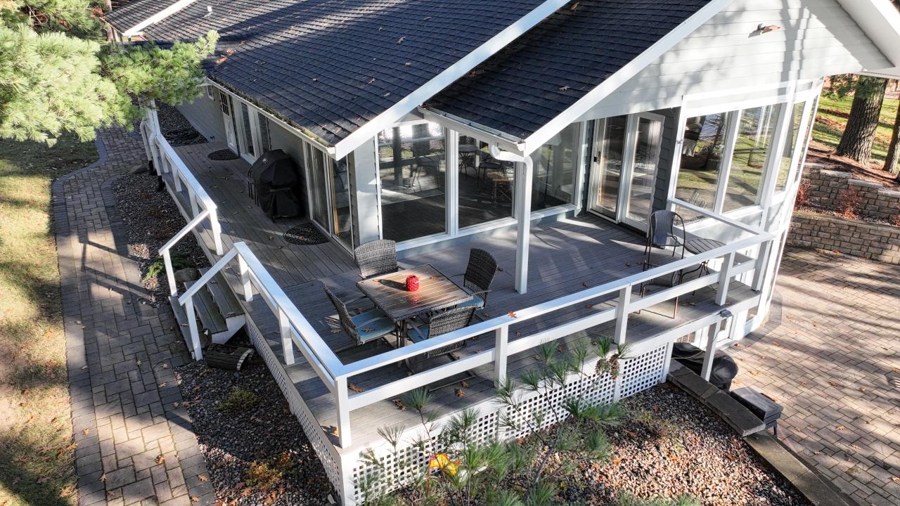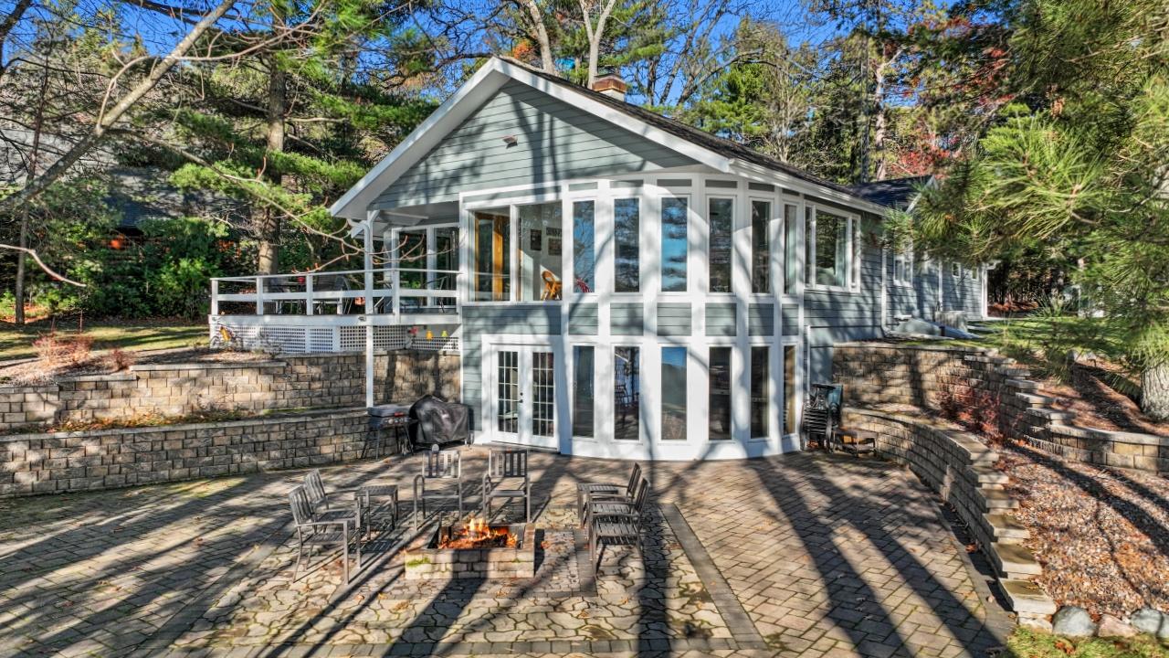 Superb property on premier Medicine Lake of the TL Chain. Excellent views of historic Denby Island, this home has a gradual walk to the sandy shoreline. Meticulously maintained and extensively remodeled, with newer custom landscaping of paver walkways and lakeside patio. The home is 3192 sq. ft finished with a wraparound composite deck, includes 2 detached garages and paved driveway. Interior offers numerous gathering spaces and tremendous water views. Three bedrooms, 2 baths, updated kitchen and wet bar in dining area. Lower level is a walkout with an awesome game room, perfect for entertaining. This property is a true gem.