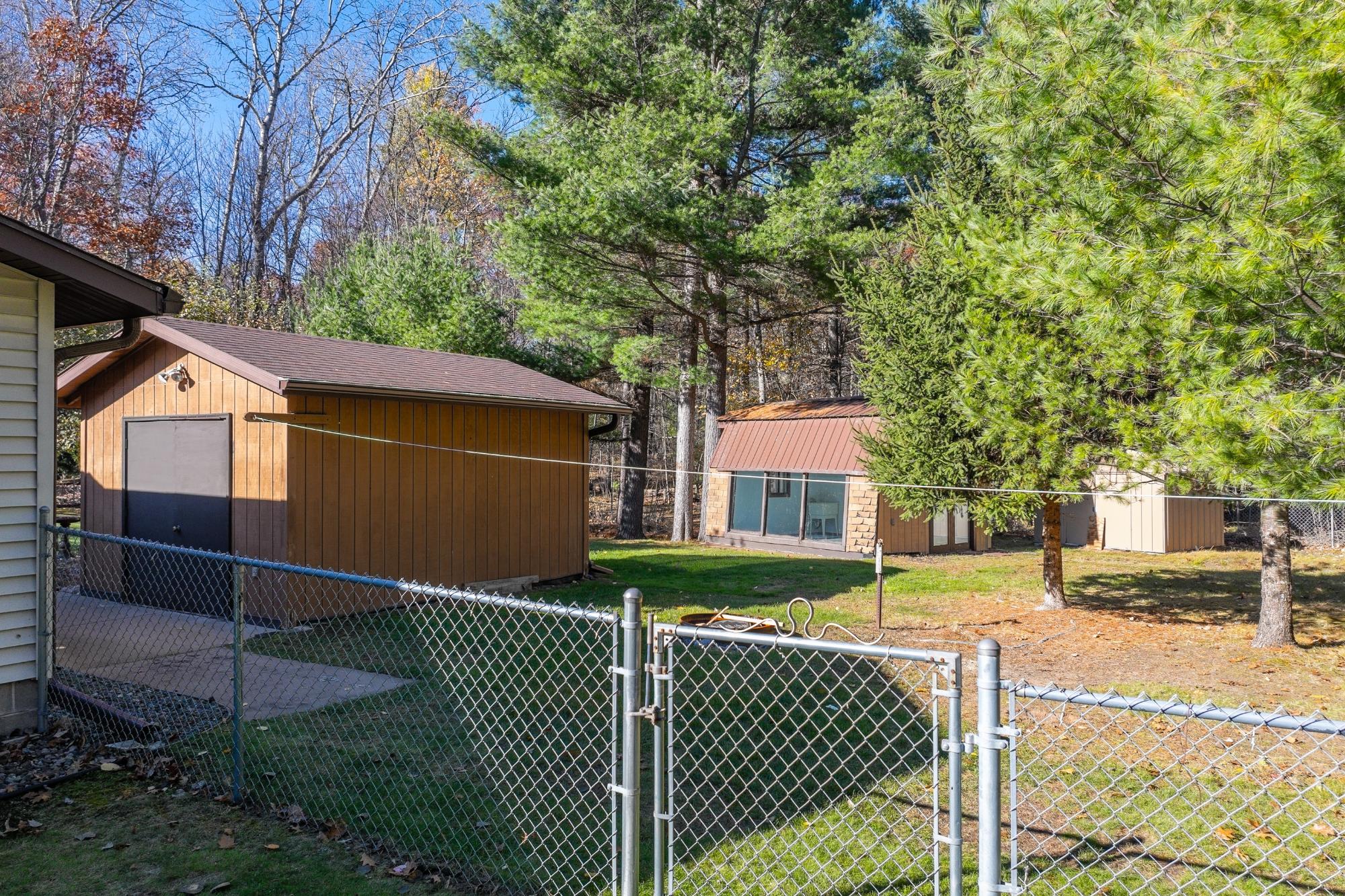 Mint condition 2-bedroom, 2-bath ranch with 2 car attached garage nestled in the heart of the Northwoods. This well-maintained home offers comfortable single-level living with an open concept floor plan, gas fireplace, functional kitchen with an island and dining area. Both bedrooms are generously sized, and the primary bedroom includes a private bath for added convenience. Lower level rec area provides for additional living space. The fenced in back yard features a outdoor deck, greenhouse/sun room and additional storage sheds. Recent updates include new dishwasher and refrigerator, newer roof and new Anderson patio door in 2025. Whether you're looking for a year round home or Northwoods retreat, this home is ready to welcome you.
