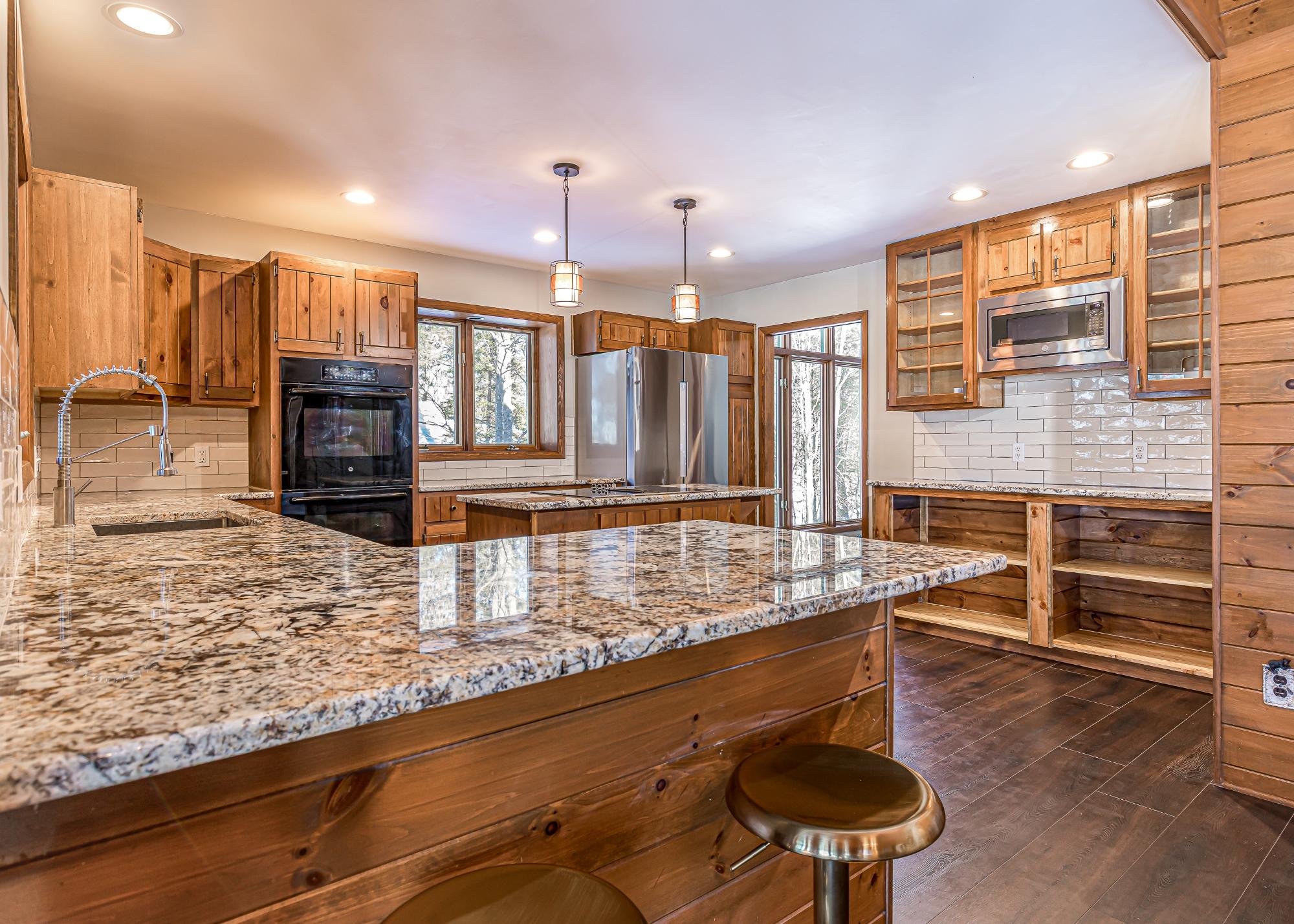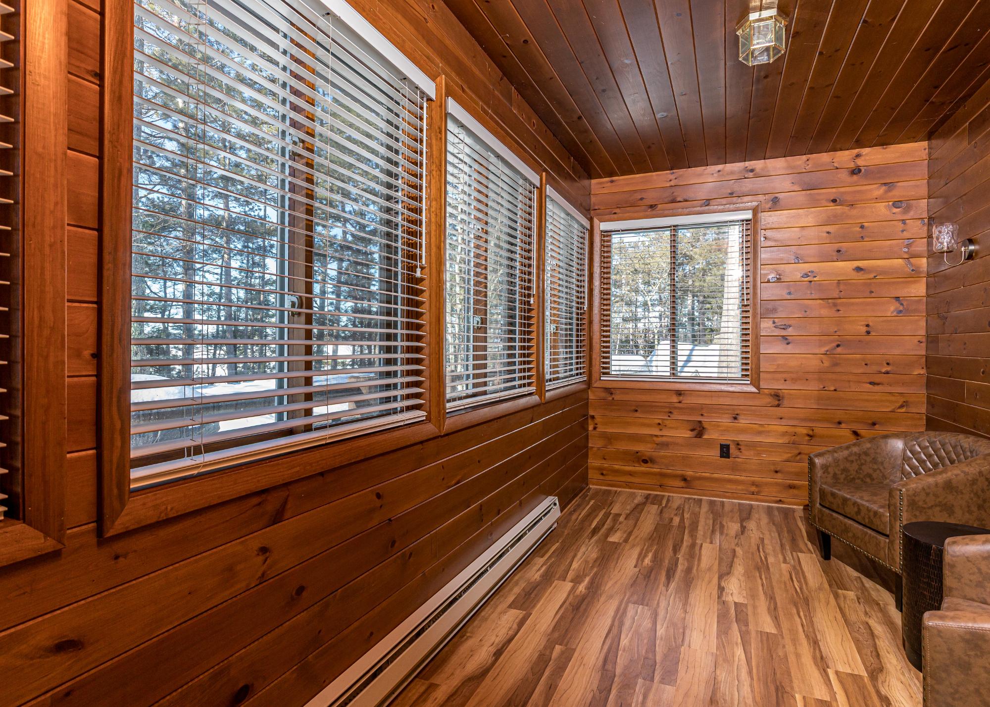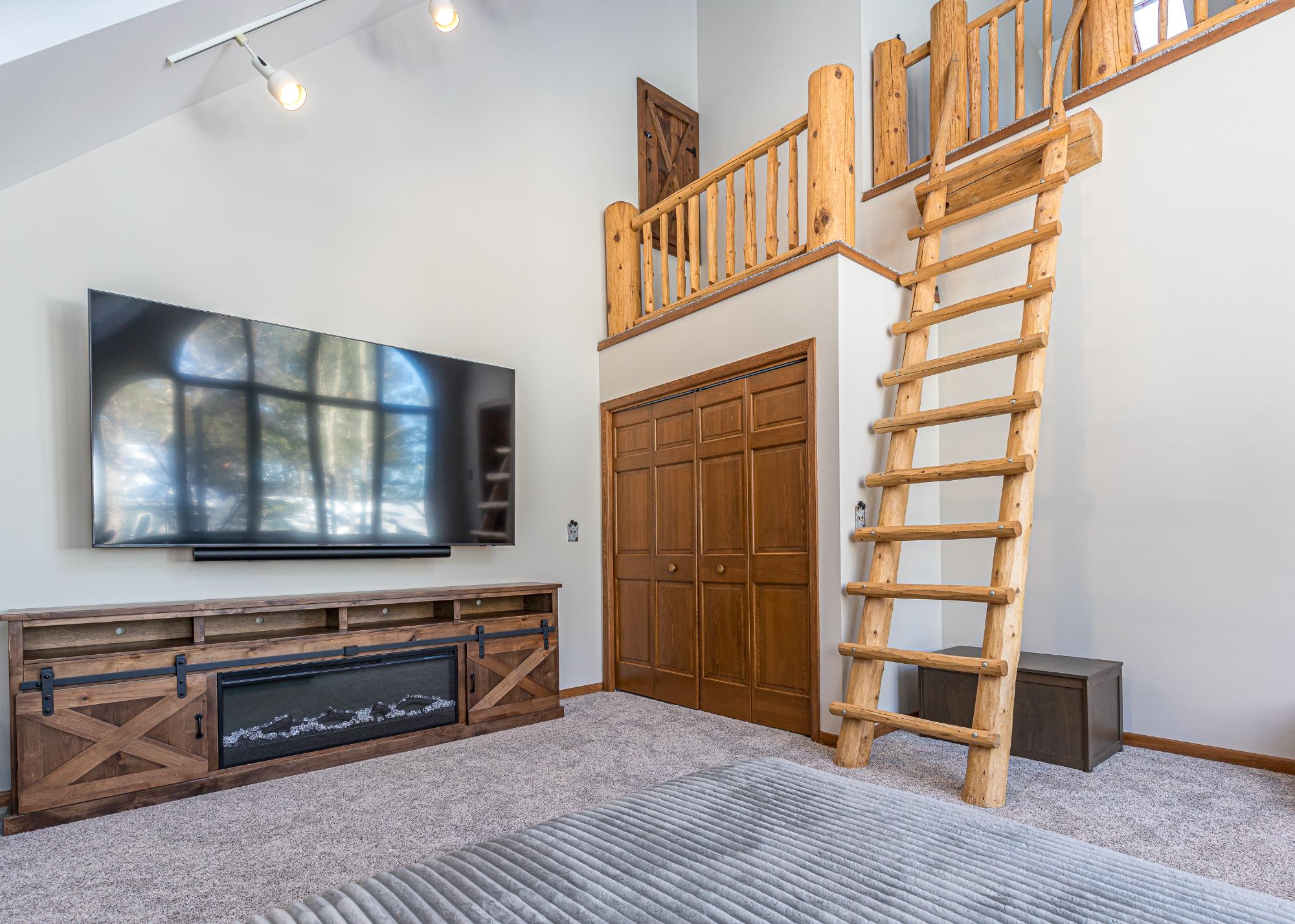 If you’re looking for big space, & big water, this home delivers. Set on 2 AC w/ 150’ of frtg on the 10-lake chain, it offers room for the whole family. The two-story living room features dramatic picture windows & a stunning fieldstone gas fireplace, creating the perfect gathering space. Log stairs lead to a loft ideal for an office or an extra sleeping area. The updated kitchen flows into the dining & living areas, ideal for entertaining, w/ an elevator for easy access between levels. A cozy media room sits just off the kitchen, w/ laundry tucked away & an additional loft for kids or guests. The lakeside 4-season sun porch is perfect for morning coffee. The main level includes a private guest bedroom and bath, plus a primary suite with fireplace, lakeside deck, luxury bath, and walk-in closet. The lower level offers a family room with wood-burning fireplace, wet bar, 3 bedrooms, and a full bath. Located on a quiet dead-end road, this extensively remodeled home is move in ready!