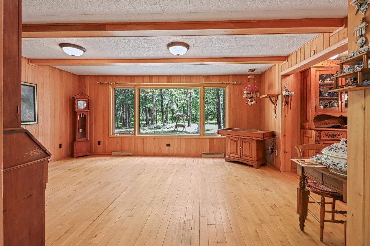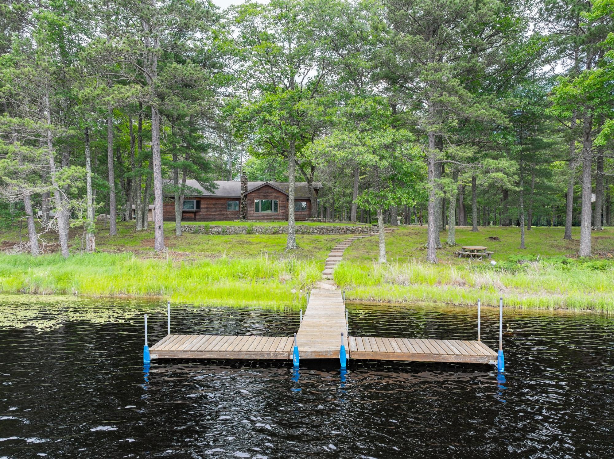 Welcome to Chickaree Lake, same family owned for 80 years. Conveniently located between Eagle River and St. Germain this 2 BR 2 BA year round home is nestled on 5.32 acres with Southern exposure and 295' of water frontage. The setting is private and the home exemplifies what Northwood living is all about. Open concept floor plan with plenty of natural light and great waterfront views via the numerous windows. Hardwood floors and detailed woodwork highlighted by the stunning living room ceiling. All the rooms are generously sized and a new forced air furnace is among the recent updates. The 30 x 28 detached garage provides extra storage space. Take a walk outside and enjoy the peacefulness and privacy this offering provides. Whether listening to the loons or strolling along the sand shoreline Chickaree Lake in magical. 31 acres of surface area with no public access make this the ideal Northwoods retreat. Additional acreage/options available. See Attachment A in document tab.