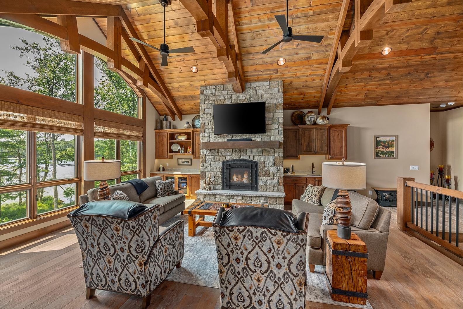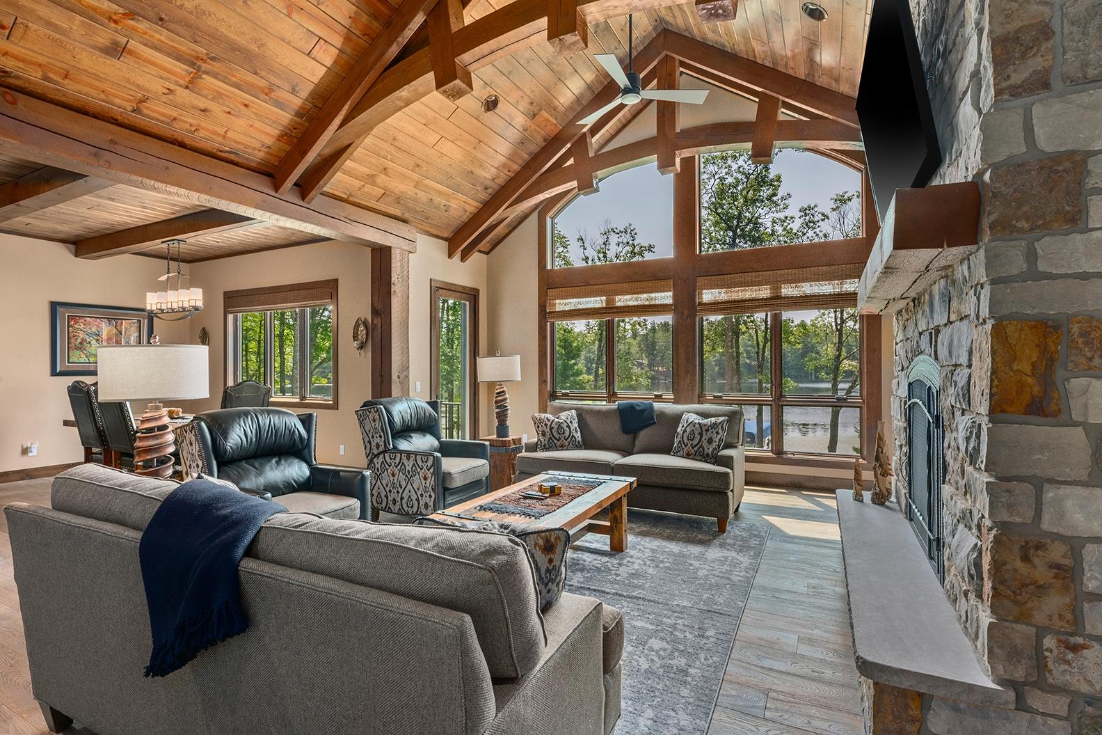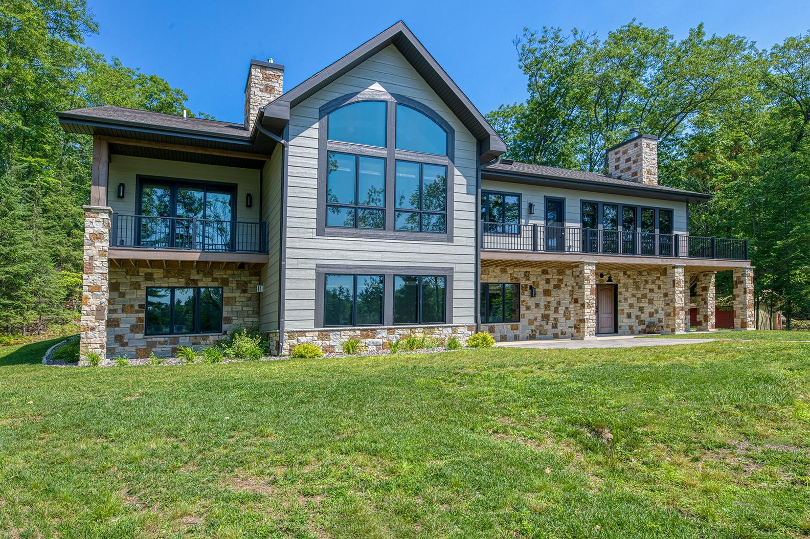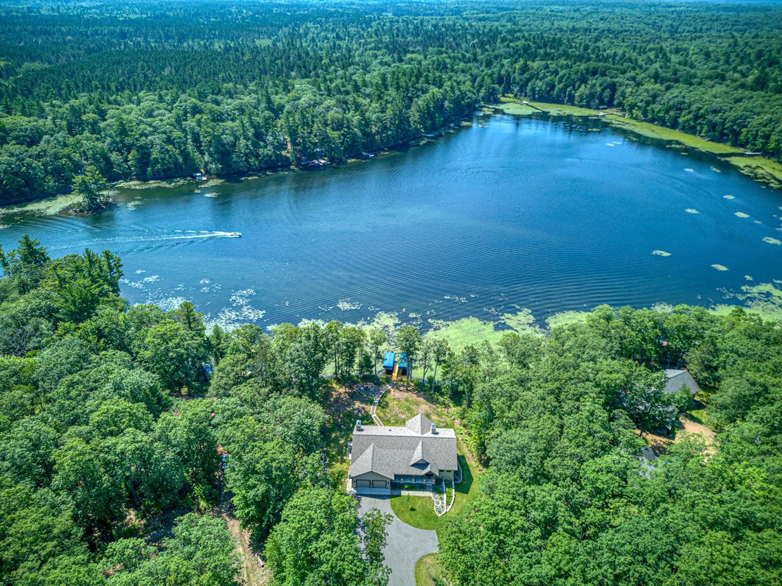 Experience luxury lakeside living with this exceptional estate on 2.7 acres! The 4-bedroom, 3.5 bath home offers 150 ft of level frontage on highly sought after Black Oak Lake (clearest lake in Wisconsin). Enjoy the spacious kitchen w/commercial range, living room w/fireplace & wet bar, and the large 4-season sunroom overlooking the gin clear waters of Black Oak. The main level is finished off with a beautiful primary suite w/walk-in closet & attached bath. This lavish home is turn-key with all high-end furnishings included in the price. The lower level offers 3 more large bedrooms, 2 baths, and a great room w/fireplace & dry bar. In-floor heating, central air, backup generator, smart siding, and composite decking offer low maintenance with a modern appeal. The 4-car attached garage (28’ x 35’) has in-floor heating, extra storage, and metal cabinets throughout. The attention to detail, quality of materials used, and craftsmanship of the construction put this home in a place by itself!